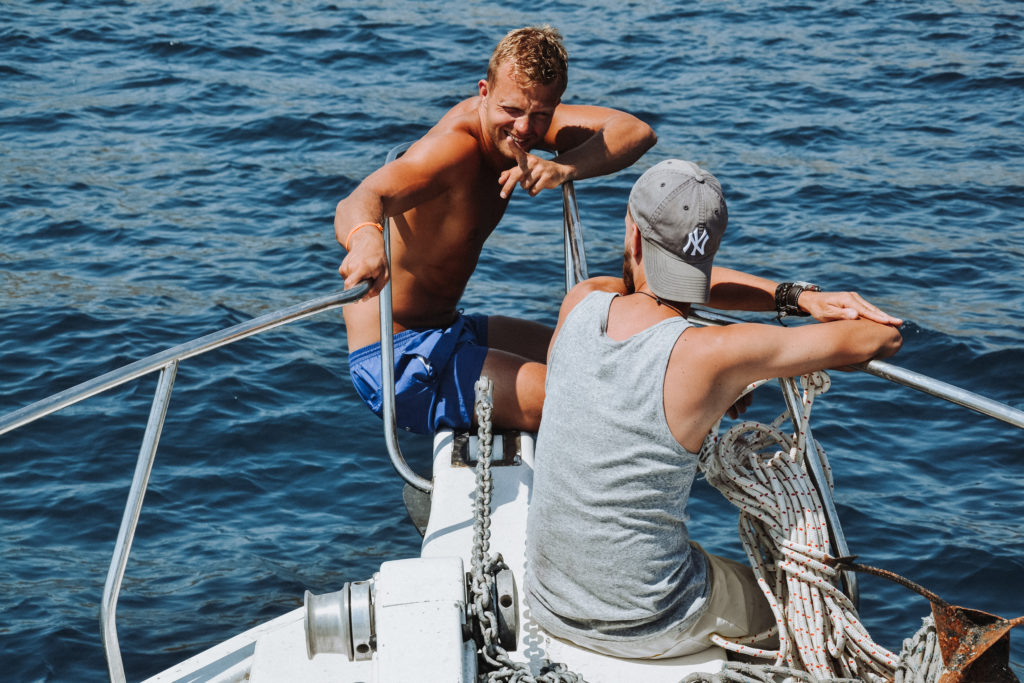 Pewnego dnia zdecydowaliśmy się na wynajęcie jachtu, choć to zdecydowanie zbyt szumne określenie. Kiedy dotarliśmy na „statek” okazało się, że dalece odbiegał on od tego prezentowanego nam w broszurze. Nie tracąc jednak czasu zdecydowaliśmy się popłynąć w rejs naszym morskim Lamborghini. Poza nami na pokładzie znalazł się sternik, jego kilkunastoletni pomocnik i przewodnik w gratisie. Nie trzeba nam było dużo czasu, aby zapoznać się z nowymi towarzyszami podróży. Cały dzień pływaliśmy od wyspy do wyspy, piliśmy wino i skakaliśmy z dachu do przezroczystej wody. Poprawka, skakali najodważniejsi, ci mniej odważni… Pili wino by dodać sobie odwagi:)