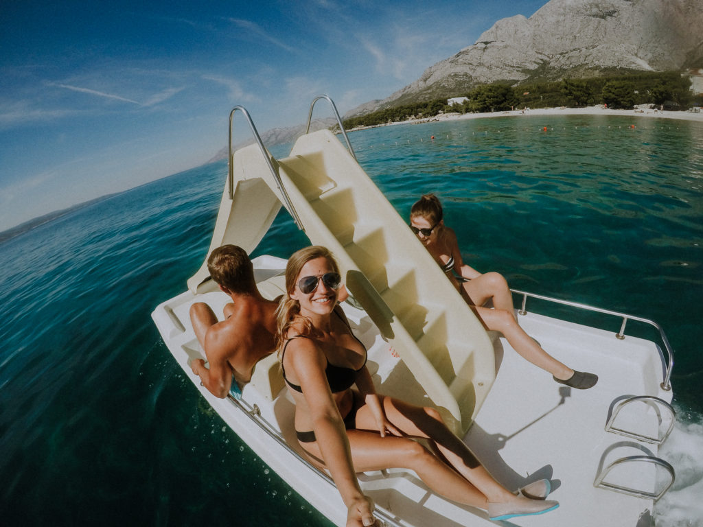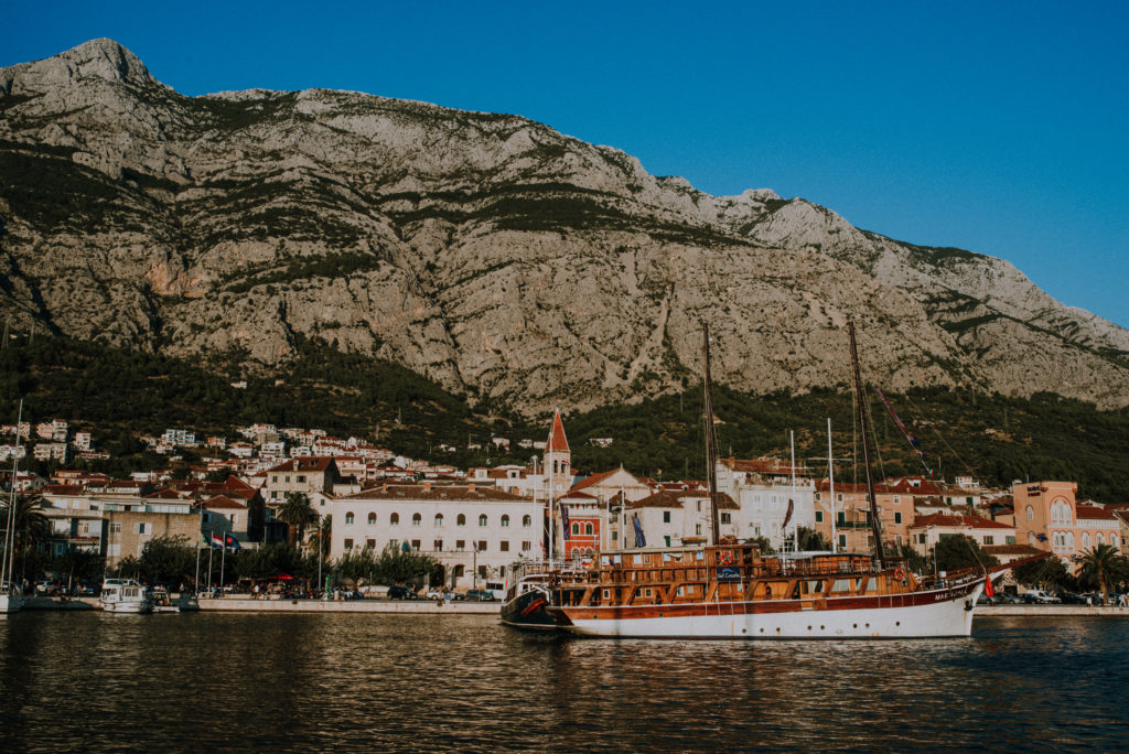 Mknęliśmy autostradą, a niebo wcale nie zwiastowało poprawy warunków atmosferycznych. My, łowcy słońca i pięknej pogody nie traciliśmy jednak nadziei i cały czas powtarzaliśmy sobie, że im dalej na południe tym będzie cieplej. Nagle stał się cud! Tuż przed wjazdem do ostatniego z tuneli pogoda pozbawiała nadziei na cokolwiek dobrego, a po wyjechaniu z niego naszym oczom ukazało się soczyście błękitne niebo i morze! Temperatura skoczyła, a my już w aucie zamienialiśmy długie rękawy na krótkie. Jesteśmy w Makarskiej!