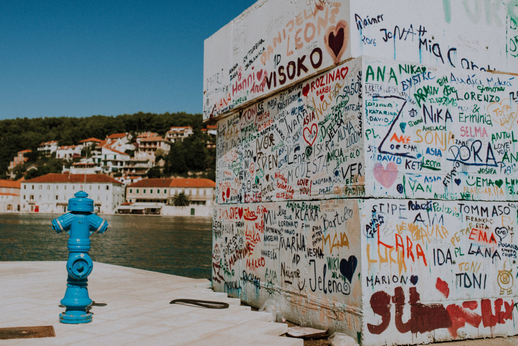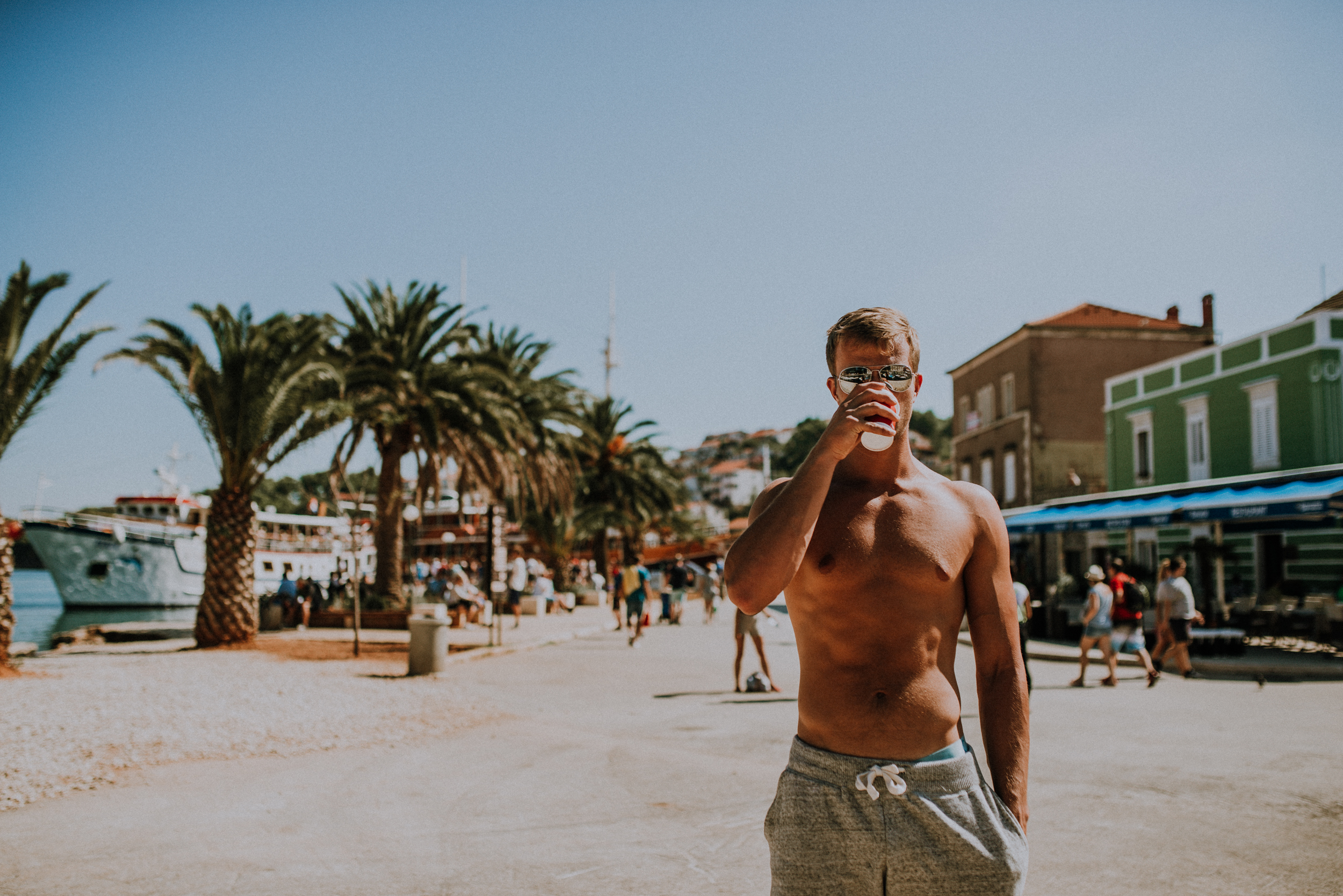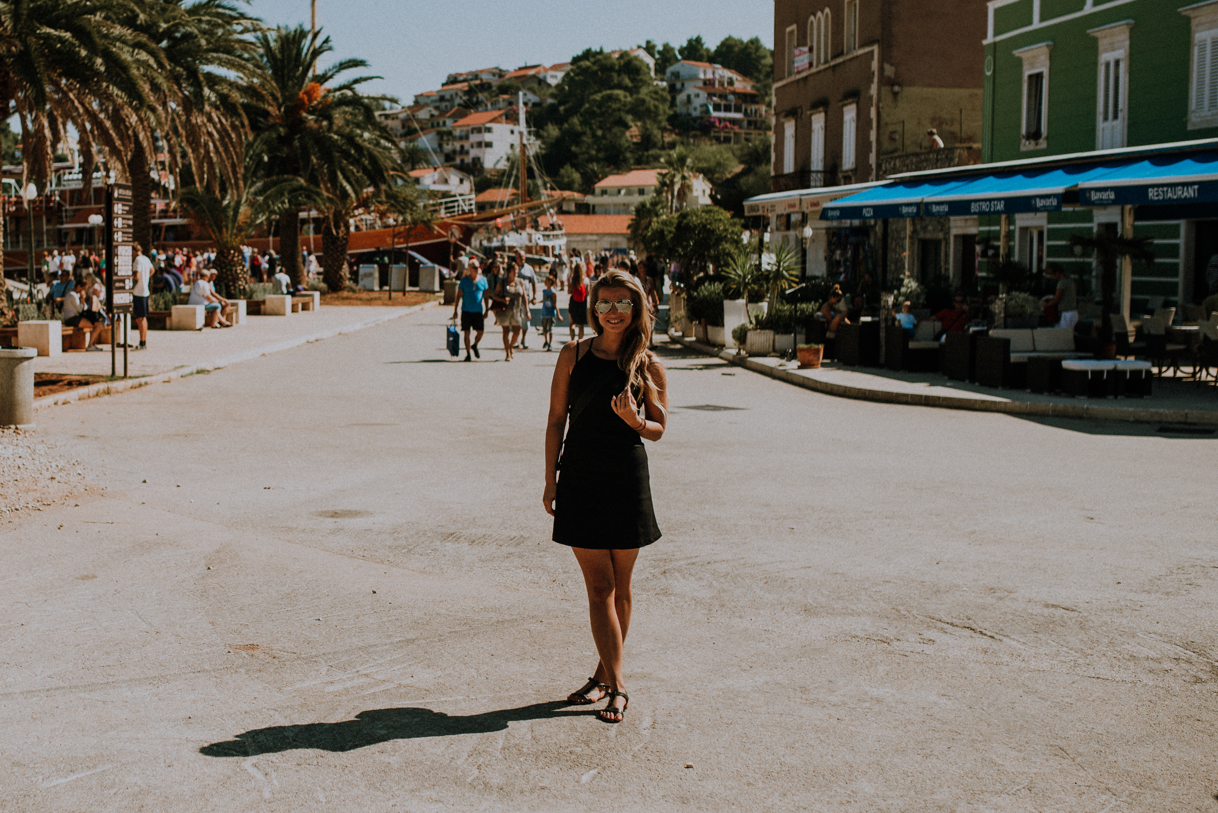 Jednego dnia zdecydowaliśmy zostawić naszych towarzyszy i ruszyć tylko we dwoje na pobliską wyspę Jelse, słynącą z uprawy lawendy i z tego, że ponoć cały rok świeci na niej słońce. Dwugodzinny rejs statkiem wycieczkowym okazał się dla nas ogromnym zaskoczeniem. Kapitan powitał liczną Polonię i… puścił disco polo! Do plastikowych kubków lała się chorwacka raki, wliczona w cenę biletu, a nasi rodacy śpiewali coraz głośniej i odważniej. Kiedy przybiliśmy do brzegu, zdecydowana większość pasażerów biegła do wyjścia, jakby co najmniej statek miał za chwilę utonąć a ucieczka miałaby uratować im życie. Widok bardzo zbliżony do tego co dzieje się podczas wejścia do samolotu, wszyscy pchają się i tratują, jakby samolot miał odlecieć bez nich- to była bardzo analogiczna sytuacja. Nie daliśmy porwać się tłumowi i wyszliśmy jako jedni z ostatnich.