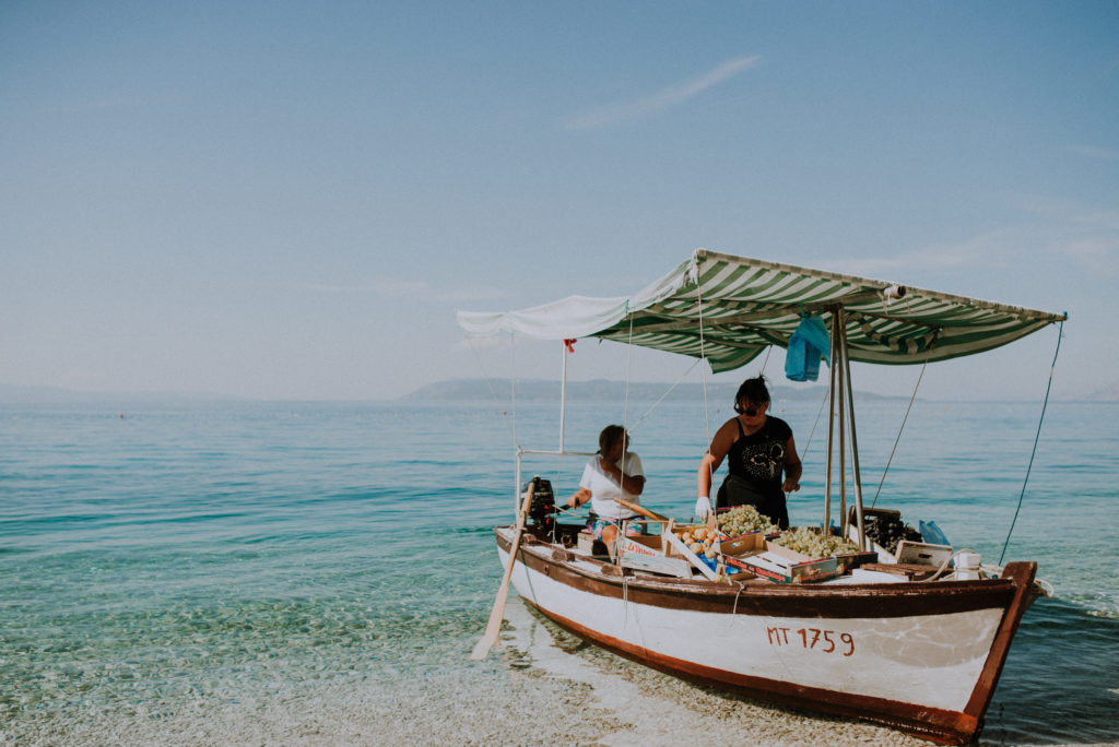 Wyspa okazała się bardzo malownicza, wąskie uliczki, porozkładane przy domach skrzynie z winogronem i siwy pan handlujący raki, nadawały temu miejscu zupełni innego charakteru niż ten, który poznaliśmy w części kontynentalnej. Po godzinnym spacerze, ruszyliśmy na kolejną wyspę. Tuż po wejściu na pokład z głośników wydobyła się popularna melodia „przez twe oczy zielone…” i dalej w drogę.