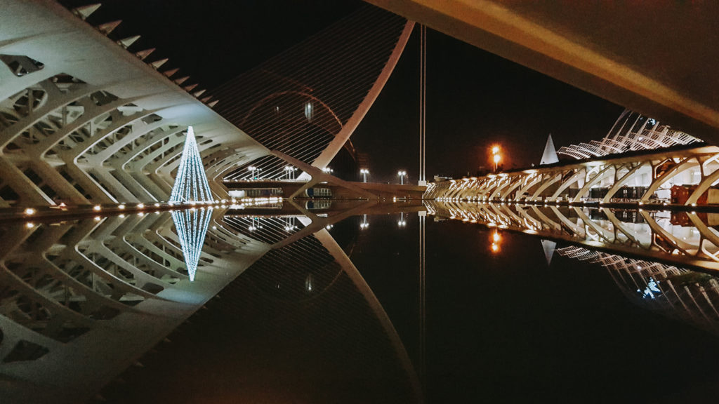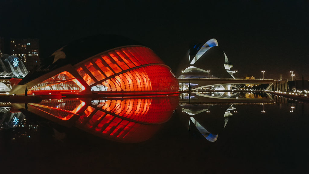 Ku naszej ogromnej radości, autokar zatrzymał się 400 metrów od hotelu. Tego wieczoru, nim oddaliśmy się w objęcia Morfeusza, spróbowaliśmy jeszcze Aqua de Valencia – lokalnego drinka składającego się z soku pomarańczowego, wina musującego cava, wódki, ginu, lodu i odrobiny cukru. Orzeźwiający napój dodał nam mocy, która doprowadziła nas do jednego z najbardziej charakterystycznych punktów miasta- Ciudad de las Artes y las Ciencias, które w nocy prezentuje się zjawiskowo!