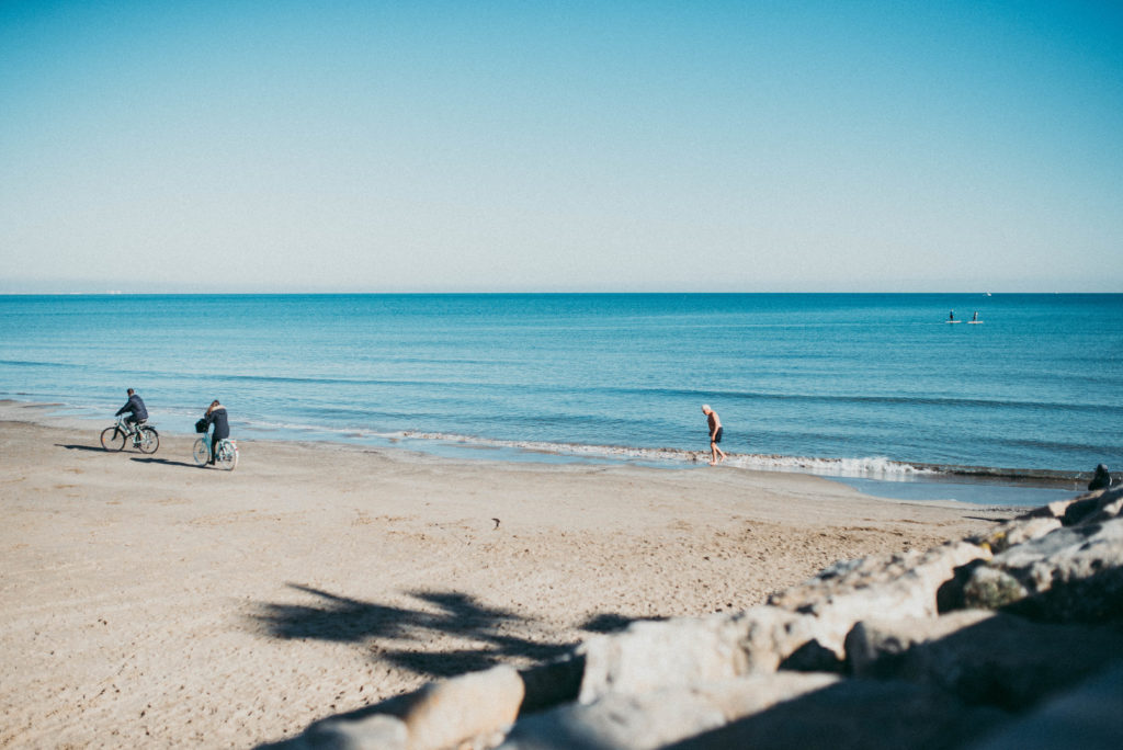 Pierwszy dzień świąt spędziliśmy na plaży, a właściwie dwóch plażach, Playa de la Malvarrosa i Playa de las Arenas, pomiędzy którymi granicy nie widać, a różnicy moim subiektywnym okiem, nie ma żadnej. Obie są szerokie i piaszczyste, obie oddziela promenada (Paseo Neptuno) pełna zachęcająco wyglądających restauracji, specjalizujących się w owocach morza. Co ciekawe, dzielnica nadmorska jeszcze do niedawna nie kojarzyła się zupełnie z kurortem, wszystko zmieniło się w 2007 r., kiedy władze Walencji podjęły się organizacji American Cup. Wówczas port przemysłowy przekształcono w atrakcyjną dla turystów i mieszkańców marinę. Dzień świąteczny nad morzem, nie różni się niczym od pozostałych dni, no może większa liczbą spacerowiczów. Restauracje są otwarte, a na chodnikach odbywa się handel, w grę wchodzą towary luksusowe, torebki „Majkela Korsa”, okulary „rajban” i wiele innych dobrodziejstw prosto z Chin. Kąpieli nie było, ale grudniowy spacer brzegiem morza w koszulce na krótki rękaw i okularach przeciwsłonecznych, jest jak najbardziej do zaakceptowania, ba… do pokochania!