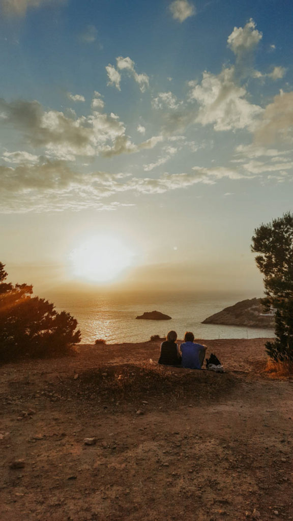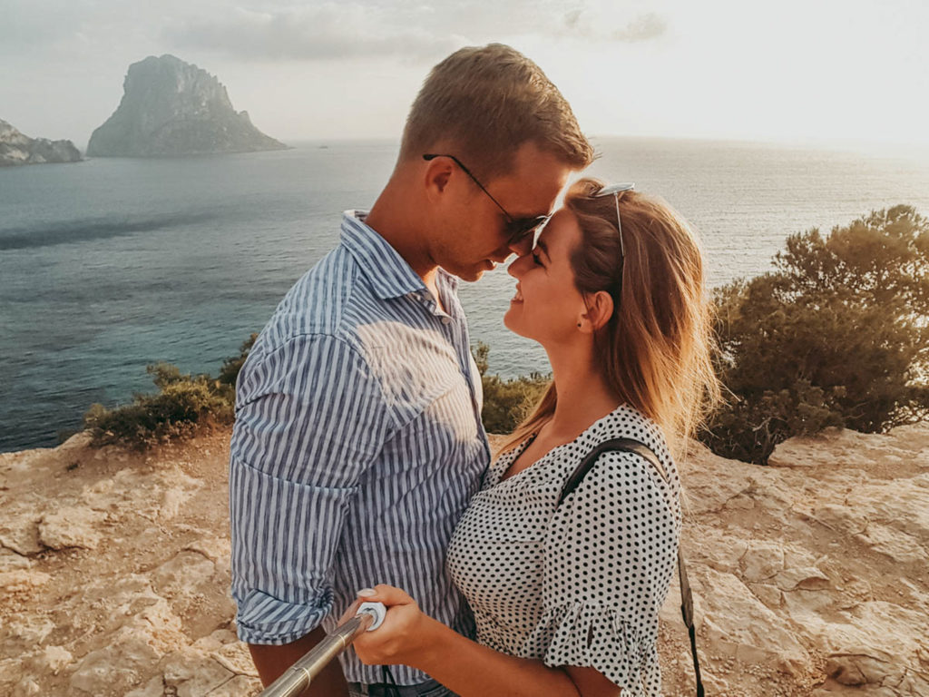 Kolejnym z nich bez dwóch zdań jest Es Vedra– skalna wyspa, którą podobno kiedyś zamieszkiwali ludzie, chociaż przyznam, ze dziś trudno to sobie wyobrazić. Na Es Vedra nie dotarliśmy bezpośrednio, większą frajdę stanowi obserwowanie jej z daleko o zachodzie słońca. Jadąc pod górę krętymi drogami pokonaliśmy wyścig z czasem. Google podpowiadało, że zachód słońca już za kilka minut. Po raz kolejny mój niezawodny mąż, kierowca wyborowy, stanął na wysokości zadania i bez większych problemów komunikacyjnych dowiózł nas na miejsce. Słońce zachodziło, zachodziło i zgasło…