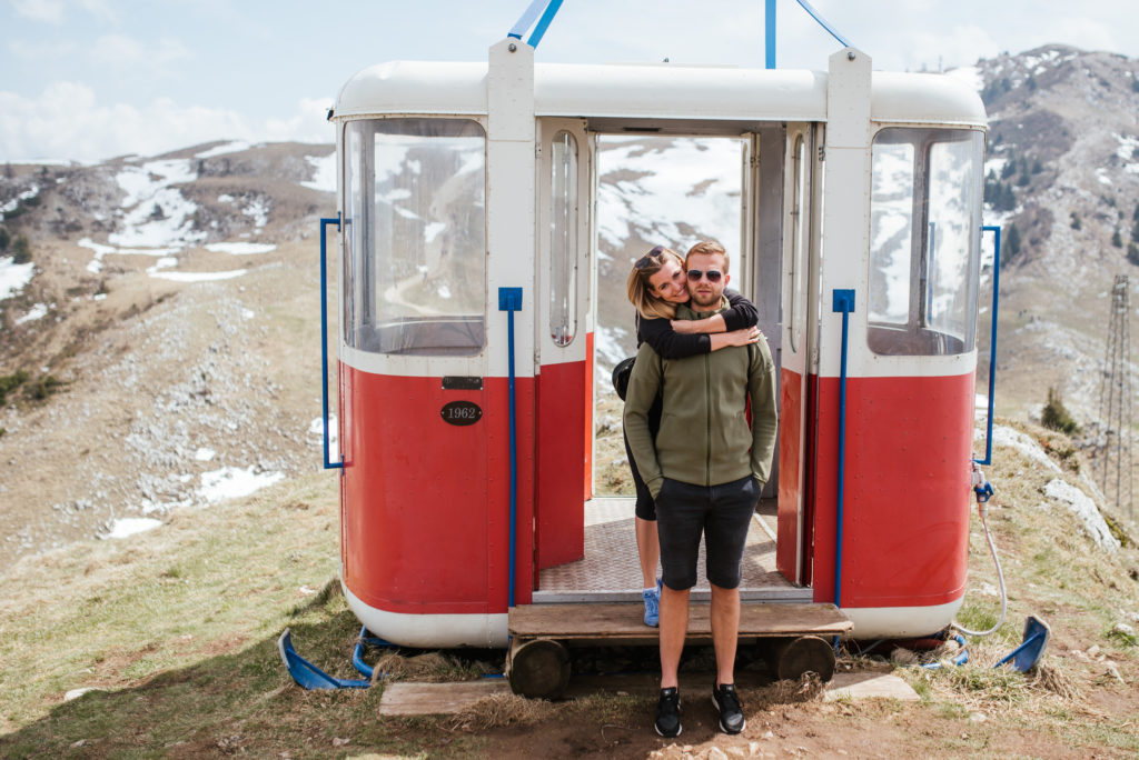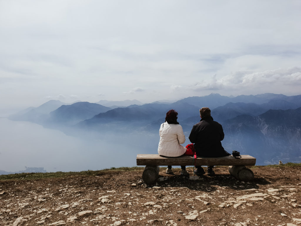 Tą parafrazą prezydenckich słów pozwolę sobie rozpocząć akapit o kolejnym etapie naszych włoskich zmagań, bo właśnie widoku z góry będzie on dotyczył. Zaraz po śniadaniu, w pełnej gotowości ruszyliśmy podbijać szczyt. Zważywszy na to, że na Monte Baldo dojeżdża się kolejka panoramiczną, nie była to heroiczna wspinaczka, w ogóle… to nie była wspinaczka, chociaż przyznam, że przyjemniej niż w ciasnym wagoniku lub stojąc w długiej, na jakąś godzinę, kolejce, żeby do wagoniku się w ogóle dostać, wolałabym tam wejść pieszo, ale… mądry Pola po szkodzie. Tak, czy inaczej dotarliśmy, a z góry widok był faktycznie obłędny! Bez krzty przesady! Lekko zachmurzone niebo dodało kontrastu szczytom ośnieżonych jeszcze gdzie nie gdzie gór.