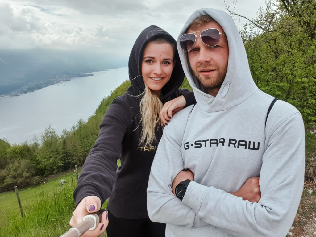 Niech nie zmylą Was te zdjęcie. Nie teleportowaliśmy się nagle na północ, znaleźliśmy jej fragment we włoskiej Lombardii. Droga na Punta Larici nie była już tak łatwa jak dostanie się na Monte Baldo, trzeba było liczyć na swoje nogi lub rower- jak kto woli. Tym skromnym treningiem prawie wykończyliśmy naszych towarzyszy podróży, ale warto było. Widoki roztaczające się z góry były jednymi z lepszych jakie widzieliśmy w życiu.