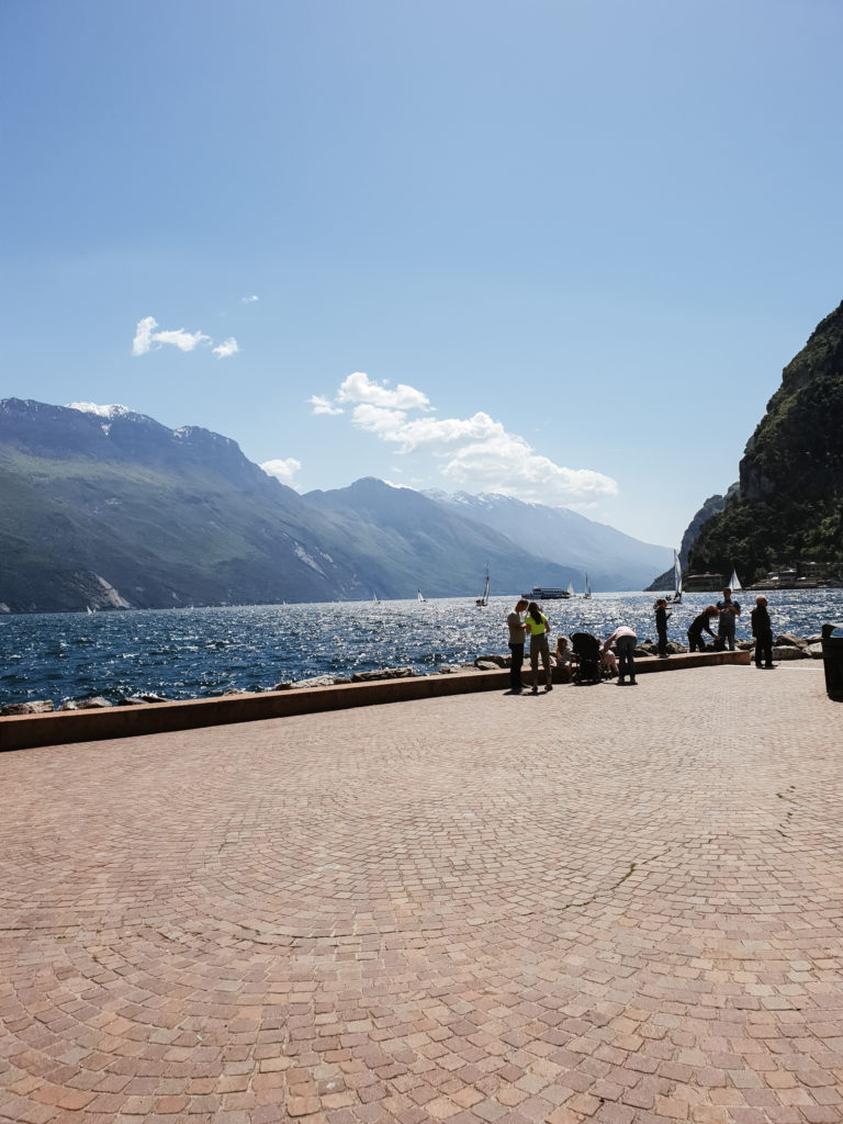 No i nadeszła:)! Przekonaliśmy się o tym robiąc pierwszy przystanek nad włoskim jeziorem, w Riva del Garda. Tam też po raz pierwszym podczas naszej podróży skosztowaliśmy pizzy, zwykłej margarity, która wraz z pierwszym kęsem wynagrodziła nam cały trud nocnej podróży. Riva to jedno z popularniejszych miast nad jeziorem i nic w tym dziwnego, malowniczo położne nad wodą, z każdej strony oblegane przez wysokie góry, zachęca do tego żeby po prostu usiąść na ławeczce i spędzić cały dzień gapiąc się w wodę.