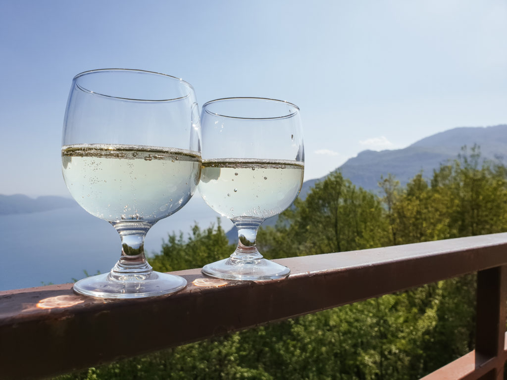 Jeszcze tylko 30 km i będziemy w Tignale! Ze zdecydowanie zbyt dużym optymizmem podeszliśmy do tej pozornie niewielkiej odległości. Droga serpentynami pod górę zajęła nam półtorej godziny! Po przybyciu na miejsce, kierowca padł i z małą przerwą na szklankę winę, obudził się następnego dnia rano, z silnym postanowieniem, że więcej nie da się namówić na tak wyczerpującą podróż. A kiedy tak słodko sobie drzemał nie wydarzyło się nic… No prawie nic, poza tym, że szwagier wykorzystując sprzyjające okoliczności przyrody padł na kolanko i poprosił o rękę swoją wybrankę:) I tak oto reszta wyjazdu i każde wspólnie wypite wino stało się toastem i okazją do rozprawiania o ślubie. Auguri, przyszli Państwo Fałdzińscy!