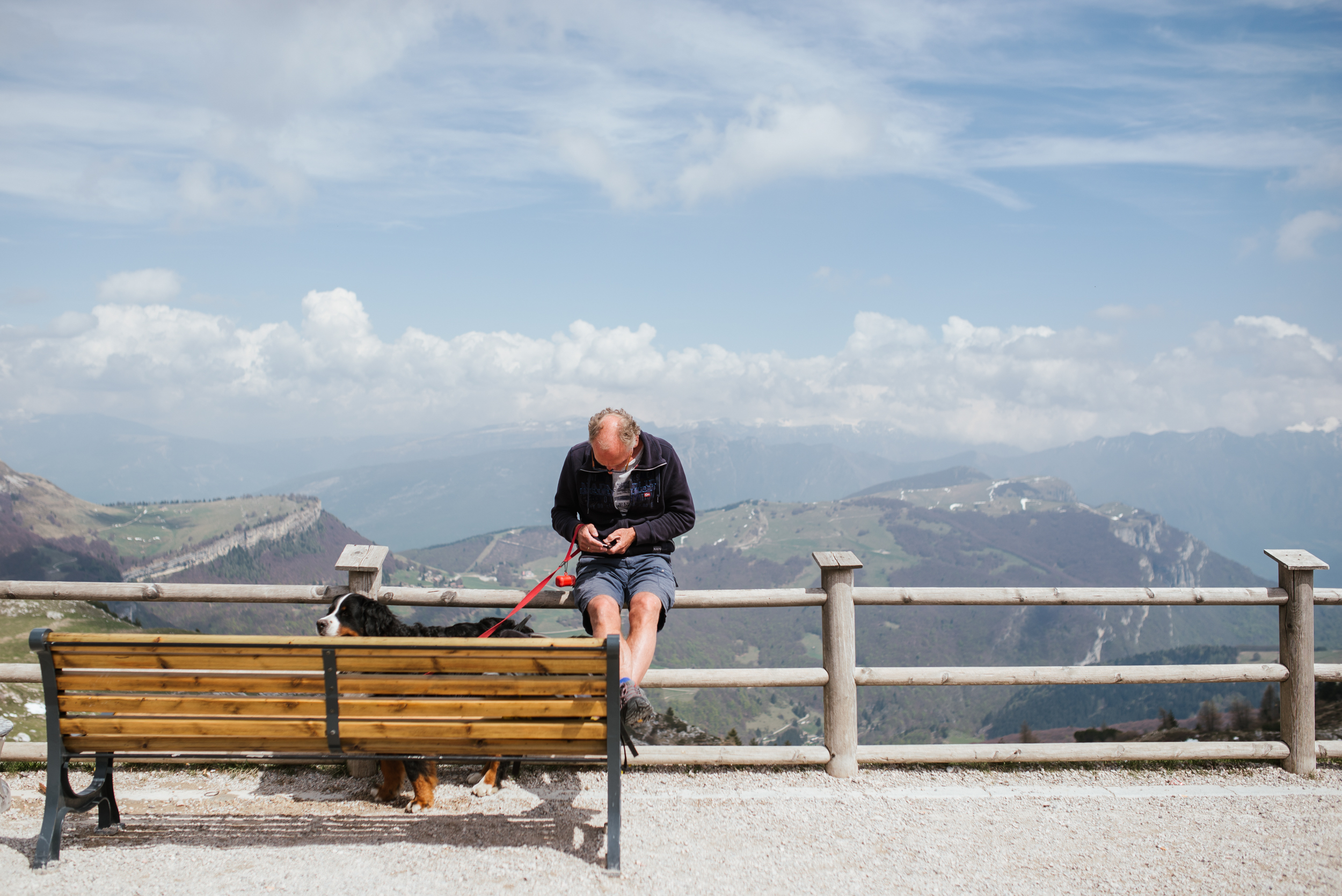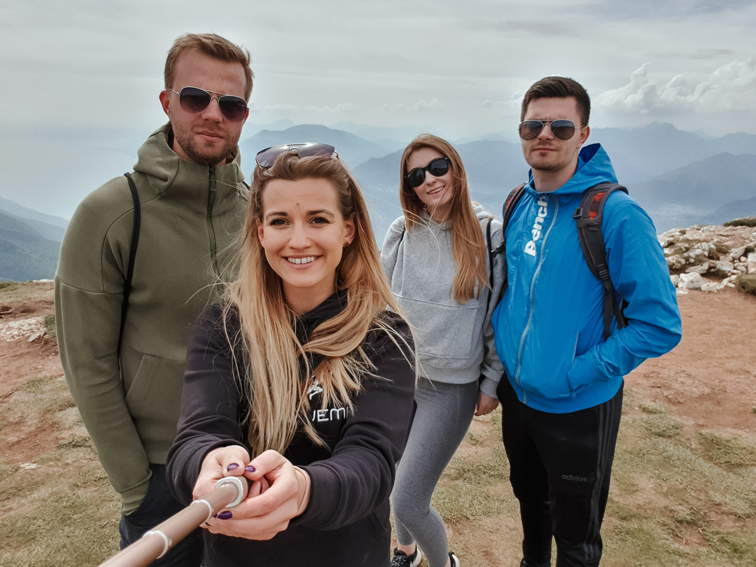 Tą parafrazą prezydenckich słów pozwolę sobie rozpocząć akapit o kolejnym etapie naszych włoskich zmagań, bo właśnie widoku z góry będzie on dotyczył. Zaraz po śniadaniu, w pełnej gotowości ruszyliśmy podbijać szczyt. Zważywszy na to, że na Monte Baldo dojeżdża się kolejka panoramiczną, nie była to heroiczna wspinaczka, w ogóle… to nie była wspinaczka, chociaż przyznam, że przyjemniej niż w ciasnym wagoniku lub stojąc w długiej, na jakąś godzinę, kolejce, żeby do wagoniku się w ogóle dostać, wolałabym tam wejść pieszo, ale… mądry Pola po szkodzie. Tak, czy inaczej dotarliśmy, a z góry widok był faktycznie obłędny! Bez krzty przesady! Lekko zachmurzone niebo dodało kontrastu szczytom ośnieżonych jeszcze gdzie nie gdzie gór.