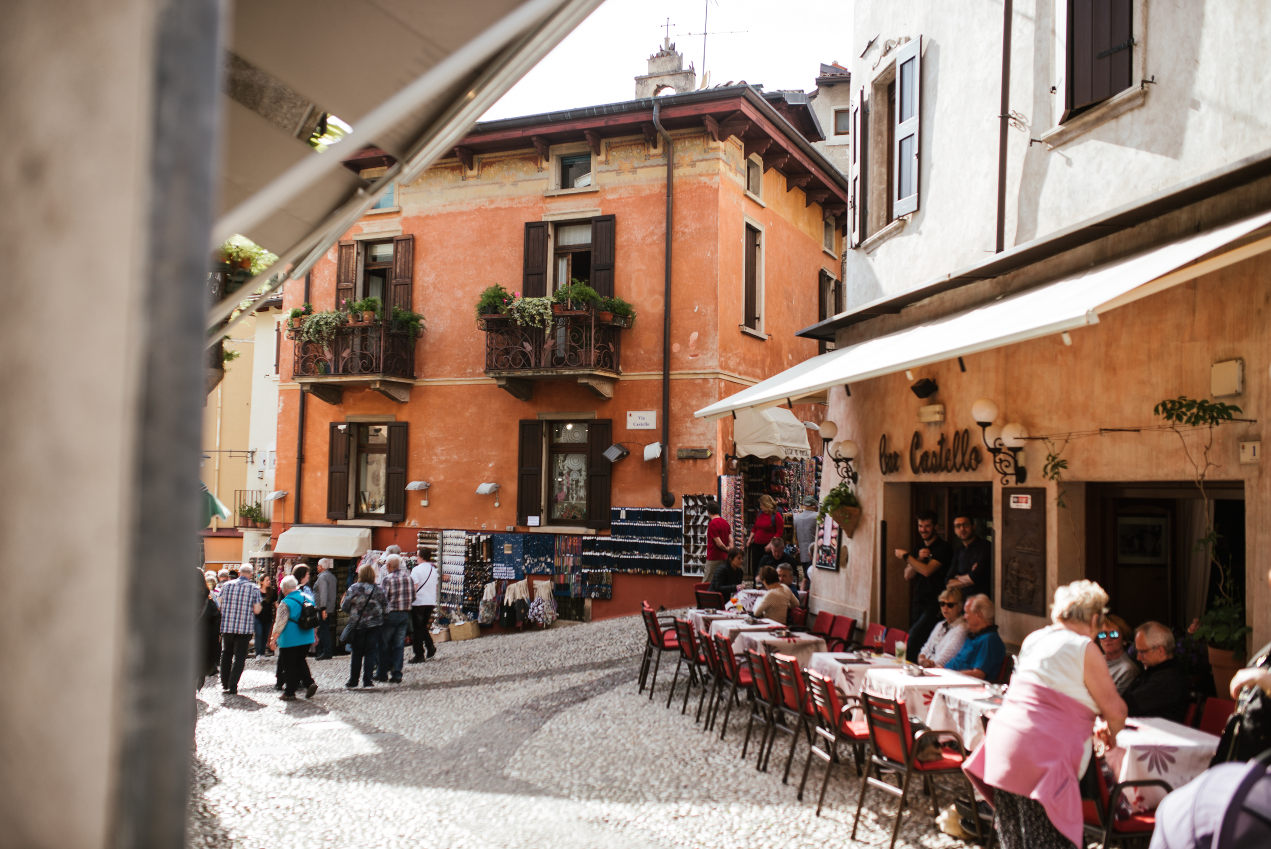 Rocznicę uchwalenia Konstytucji spędziliśmy spacerując po Gargnano, jedząc pizzę i dla urozmaicenia makarony w deszczowym Salo oraz pijąc rozgrzewający punch, plączący nogi i język, w Sirmione. Dwie pierwsze miejscowości bardzo podobne do siebie i wszystkich innych położonych nad jeziorem, pełne wąskich kamiennych ulic i przybrzeżnych restauracji z biegnącym wzdłuż wody deptakiem, żyjące w swoim spokojnym rytmie. Sirmione nieco inne, pełne turystów i kuszące niezliczoną liczbą smaków gelato sprzedawanych na każdym zakręcie. Kolor wody, z którym zetknęliśmy się w Sirmione różnił się od tego, z którym spotykaliśmy się w innych miejscowościach, był intensywnie turkusowy i gdyby nie chmury zwiastujące deszcz z pewnością niejedna osoba z przyjemnością wskoczyłaby do jeziora.