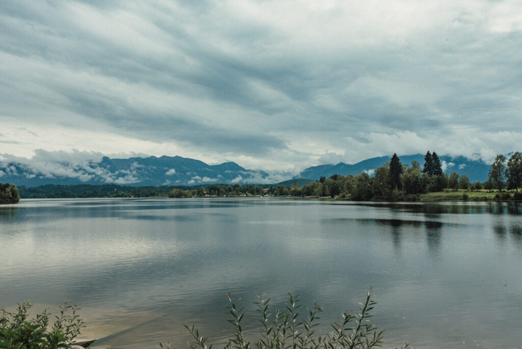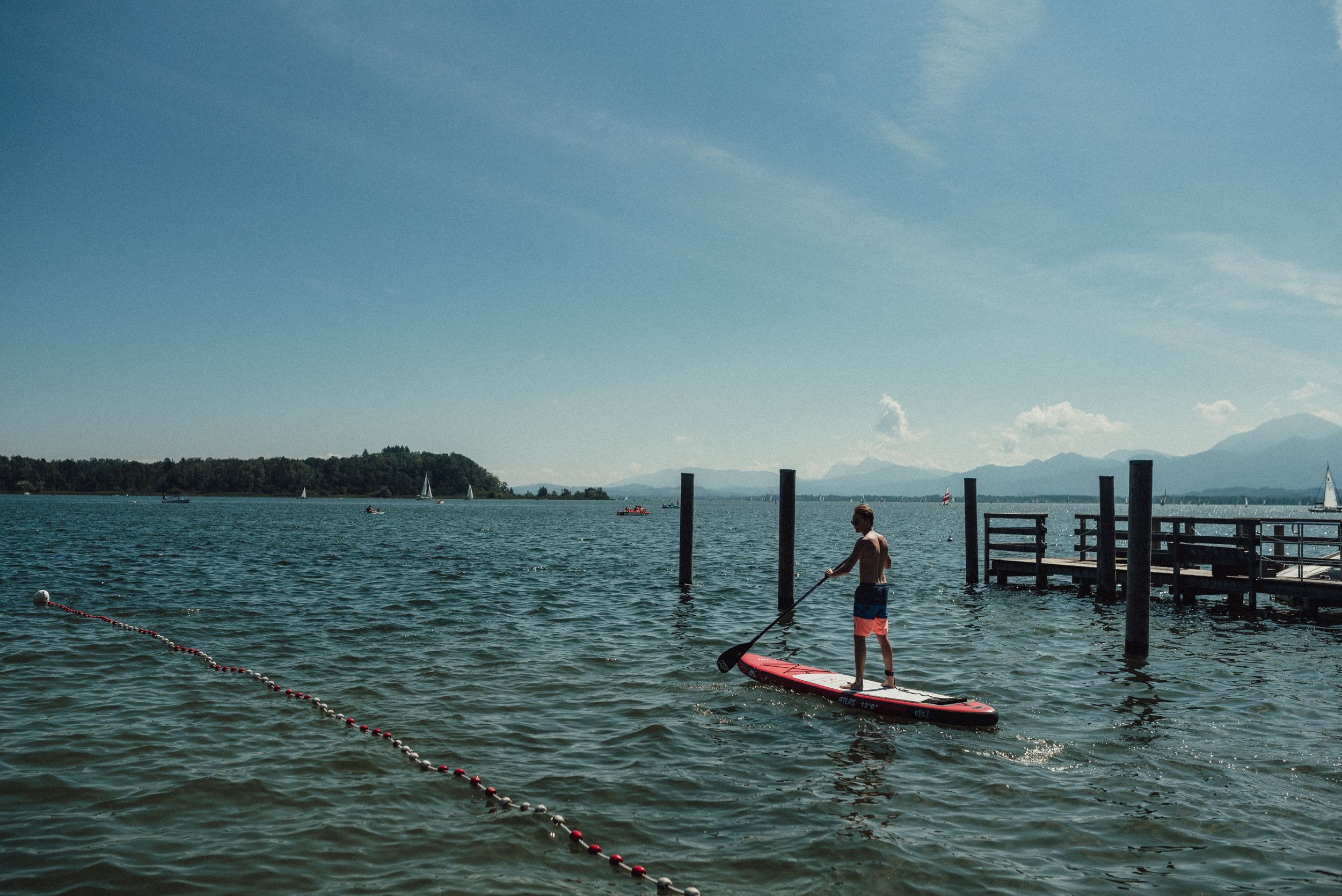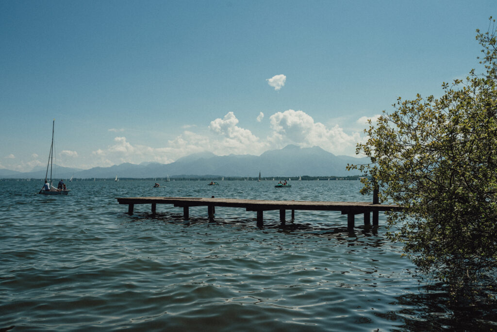 Tę noc spędziliśmy jeszcze w Monachium, w dusznym hotelowym pokoju, w którym klimatyzacja z kretesem przegrała walkę z upałem. Kolejnego dnia wsiedliśmy w samochód szukając ochłody nad jeziorem Chiemseee, największym w Bawarii. Na ten sam pomysł co my wpadła chyba połowa Monachium, bo po przyjeździe na miejsce zastał nas spory tłok. Jezioro dalece odbiegało tego dnia od instagramowych obrazków prezentujących puste przestrzenie z krystalicznie czystą wodą mieniącą się na tle alpejskich szczytów, ale spokojnie, spokojnie… takie widoczki, chociaż nie wiedzieliśmy były jeszcze przed nami:)