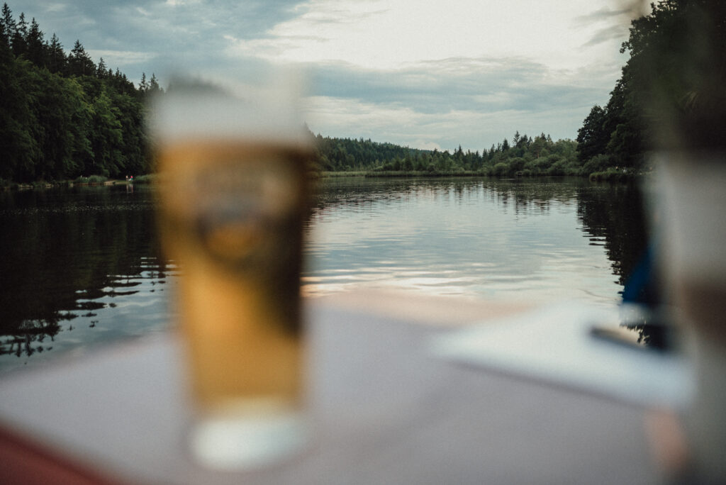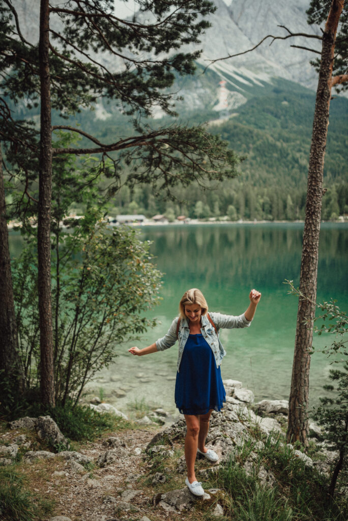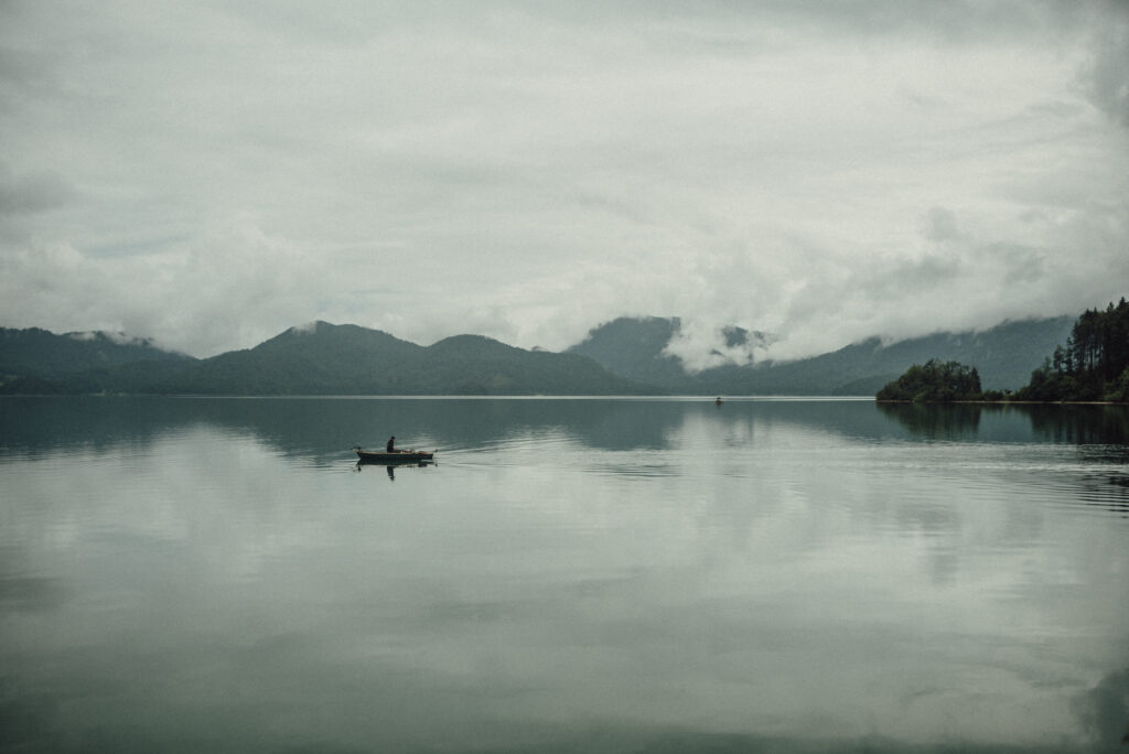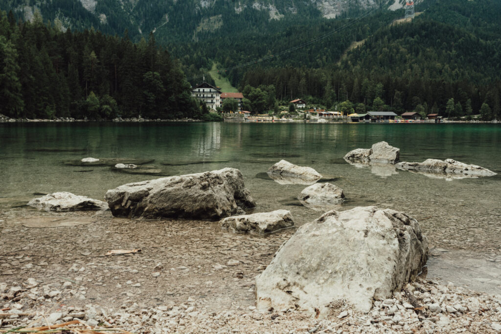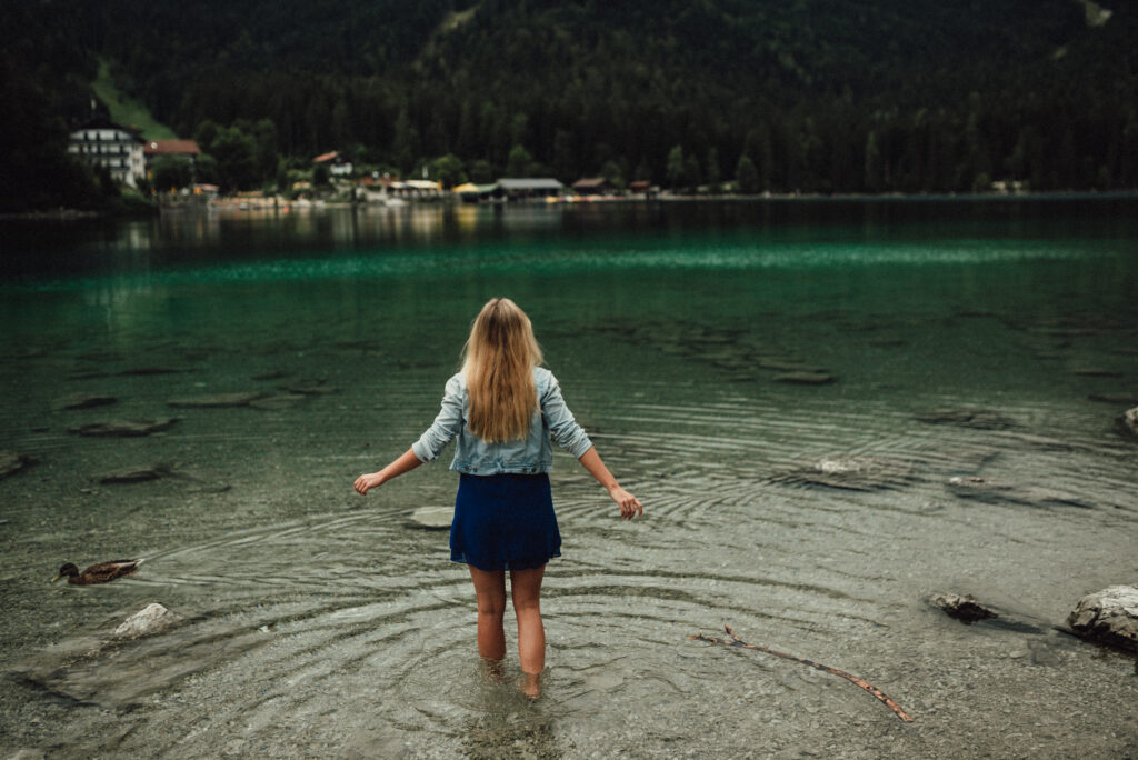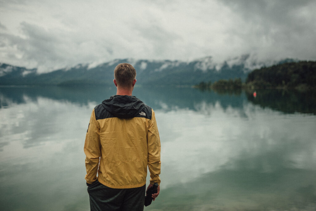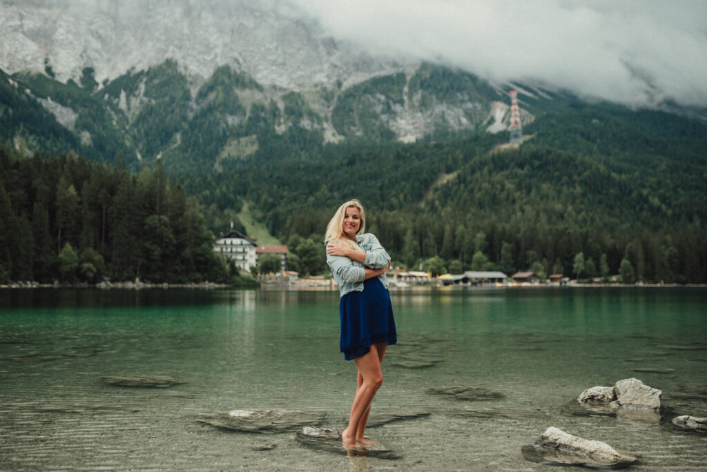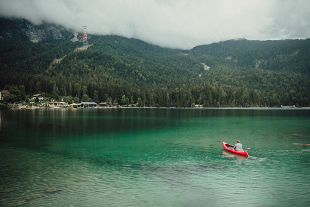 Tego jak i poprzedniego dnia Bawaria przywitała nas niespecjalnie zachęcającą do wystawienia nosa spod kołdry pogodą. Z nieba lał się deszcz, wszystko było spowite chmurami, nad koronami drzew unosiła się gęsta mgła i znikąd nie zanosiło się na poprawę tego stanu! Nie zniechęciło nas to jednak do dalszej podróży. Po śniadaniu, uzbrojeni w jeden lichy parasol ruszyliśmy w kierunku Eibsee, które w przeciwieństwie do kilku poprzednich akwenów, nad którymi zatrzymaliśmy się podczas wyjazdu, było dużo bardziej komercyjne. Co przez to rozumiem? Masa turystów i co chwilę kursujące autokary z wycieczkami, ale niech Was to nie zniechęci! Nad Eibsee jest pięknie! Woda ma tam głęboki szmaragdowy kolor nawet, kiedy nie przegląda się w nim żaden promyk słońca. Dodatkowym atutem tego, jak i każdego innego zbiornika w tym regionie jest to, że można się w nim kąpać, w dowolnym miejscu! Pragniesz ochłody, ściągasz gatki i korzystasz na całego z przyjemnego orzeźwienia.