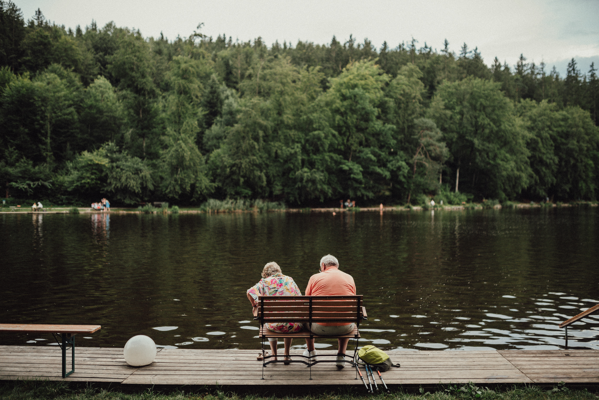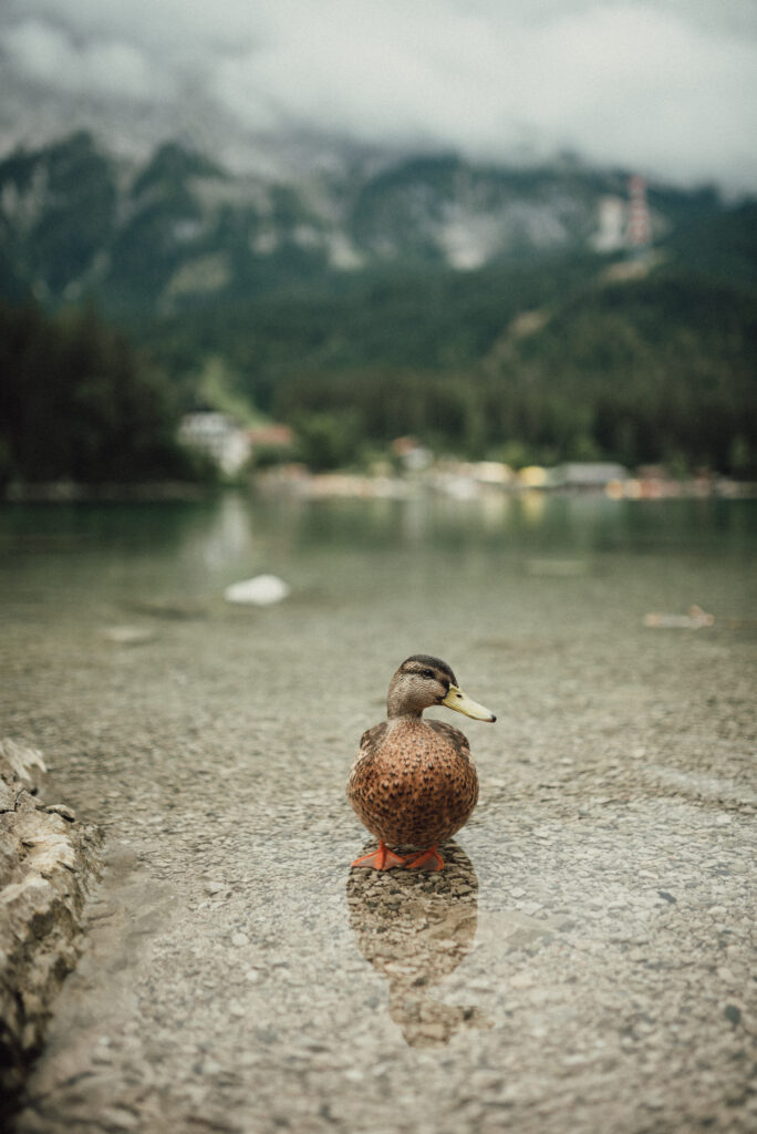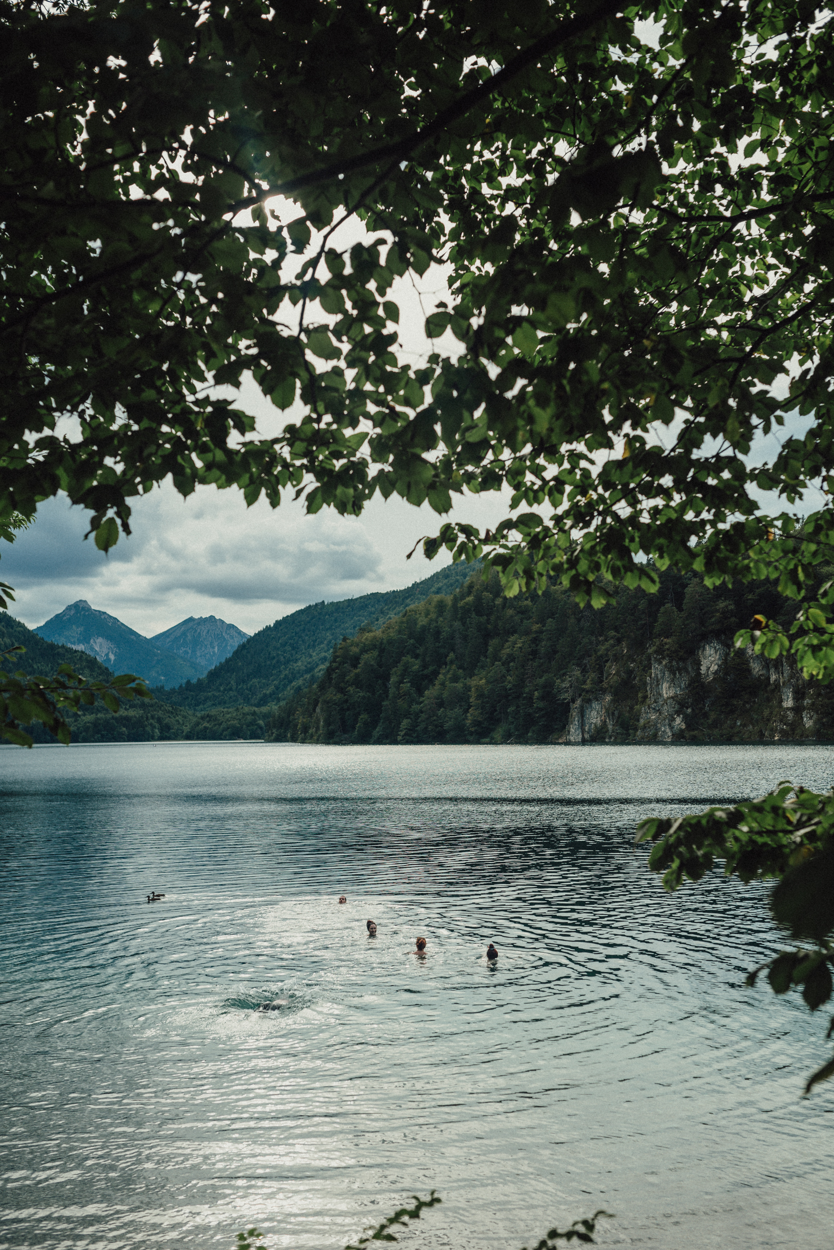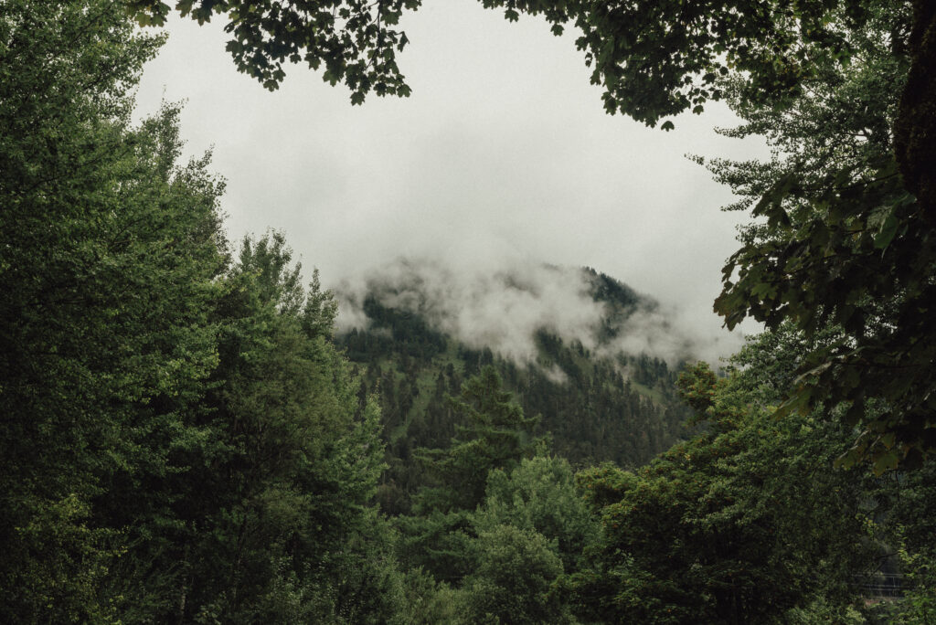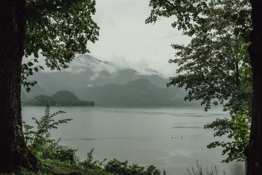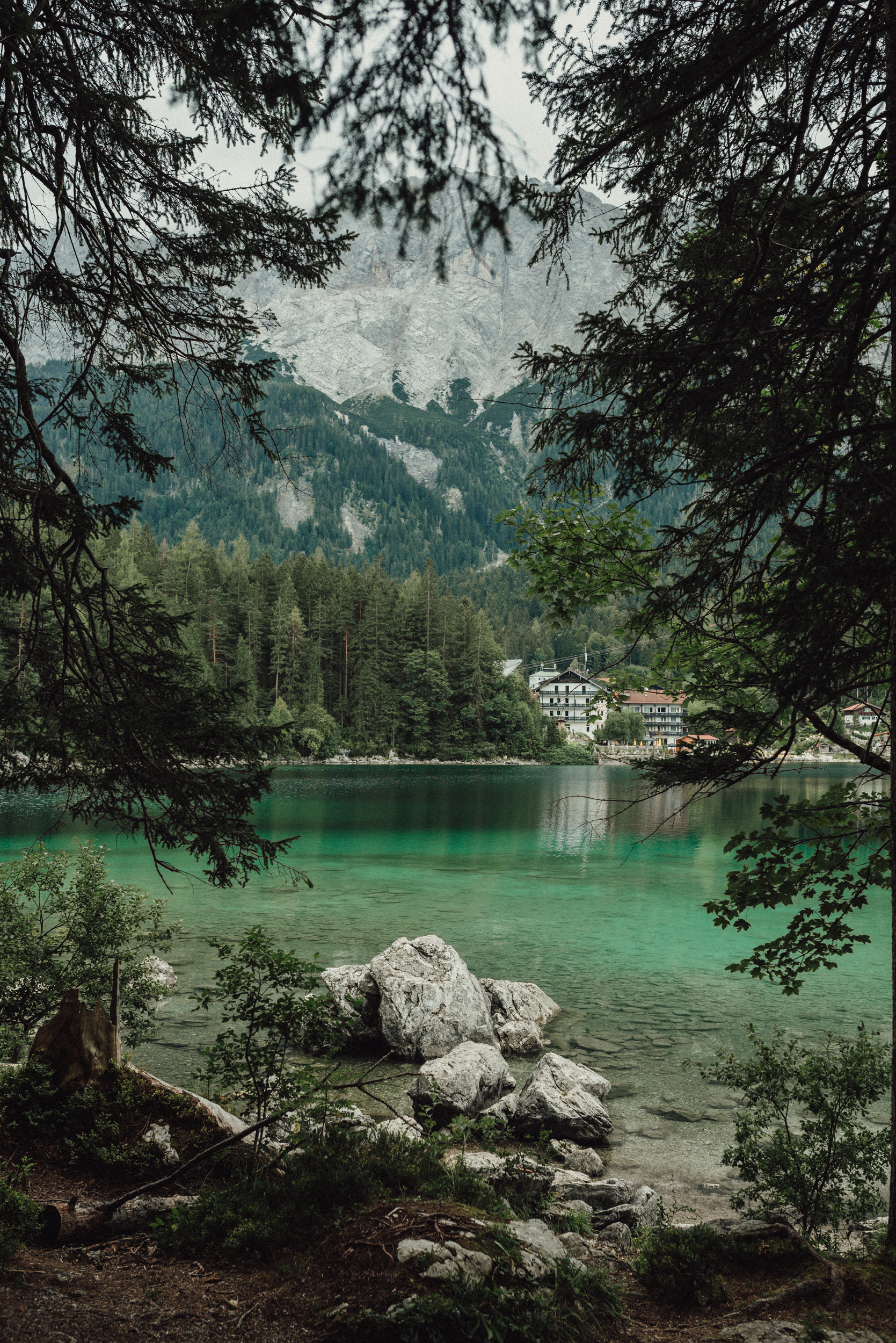 Tego jak i poprzedniego dnia Bawaria przywitała nas niespecjalnie zachęcającą do wystawienia nosa spod kołdry pogodą. Z nieba lał się deszcz, wszystko było spowite chmurami, nad koronami drzew unosiła się gęsta mgła i znikąd nie zanosiło się na poprawę tego stanu! Nie zniechęciło nas to jednak do dalszej podróży. Po śniadaniu, uzbrojeni w jeden lichy parasol ruszyliśmy w kierunku Eibsee, które w przeciwieństwie do kilku poprzednich akwenów, nad którymi zatrzymaliśmy się podczas wyjazdu, było dużo bardziej komercyjne. Co przez to rozumiem? Masa turystów i co chwilę kursujące autokary z wycieczkami, ale niech Was to nie zniechęci! Nad Eibsee jest pięknie! Woda ma tam głęboki szmaragdowy kolor nawet, kiedy nie przegląda się w nim żaden promyk słońca. Dodatkowym atutem tego, jak i każdego innego zbiornika w tym regionie jest to, że można się w nim kąpać, w dowolnym miejscu! Pragniesz ochłody, ściągasz gatki i korzystasz na całego z przyjemnego orzeźwienia.