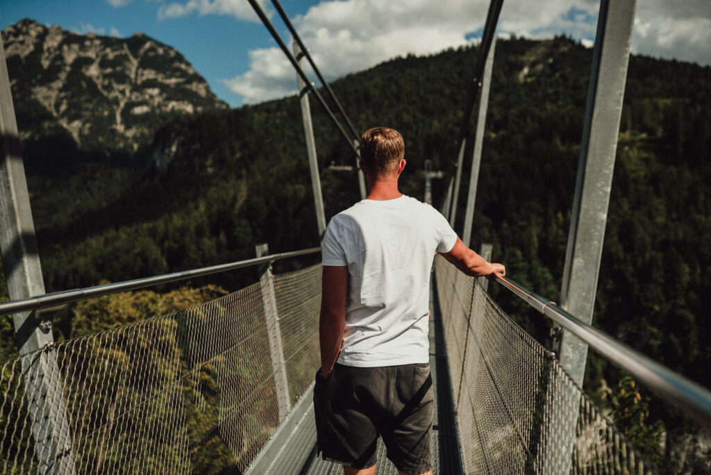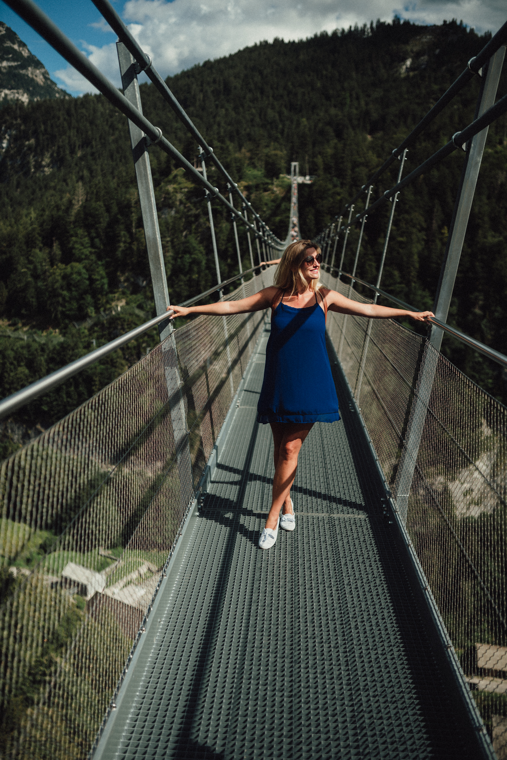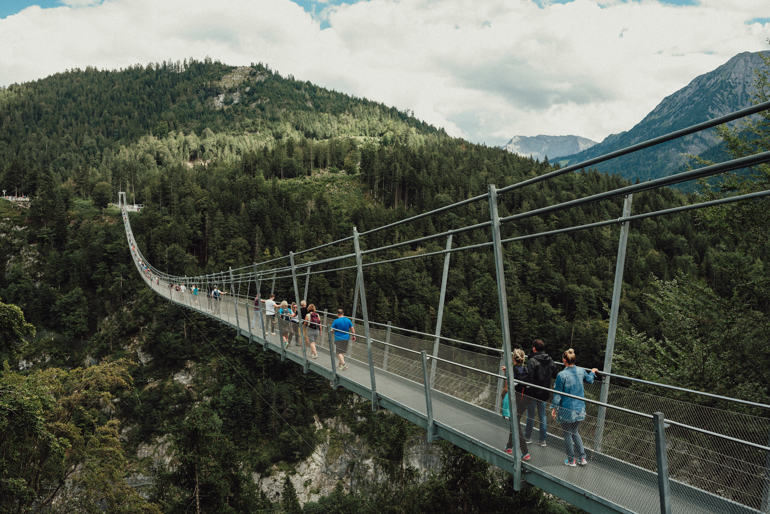 Wyjeżdżając z Eibsee, zupełnie niepostrzeżenie przekroczyliśmy granicę z Austrią. Początkowo obraliśmy azymut na jezioro Alpsee, ale po drodze ku naszemu zaskoczeniu pojawił się znak informujący o tym, że znajdujemy się w pobliżu Highline 179 – kto oglądał Down The Road, ten doskonale pamięta most zawieszony na wysokości 115 metrów, który przyprawiał o zawroty głowy uczestników programu. Można się na niego dostać pieszo lub wjechać specjalnie do tego przystosowaną kolejką. Kiedy znaleźliśmy się na szczycie nie było odwrotu, weszliśmy i dziarsko przemierzaliśmy kolejne odcinki metalowej konstrukcji zawieszonej nad przepaścią.