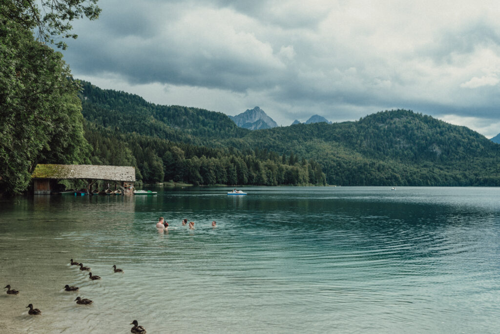 Po południu udało nam się wreszcie dojechać do Alpsee, po nim mieliśmy jeszcze przespacerować się w kierunku „zamku Disneya” (a właściwie to Henryka Szalonego:)) i Marienbrucke. Chociaż chęci były to zabrakło już mocy w naszych akumulatorach i po krótkiej przechadzce brzegiem kolejnego jeziora poddaliśmy się. Zamek obejrzeliśmy z perspektywy trasy prowadzącej do naszego pensjonatu.