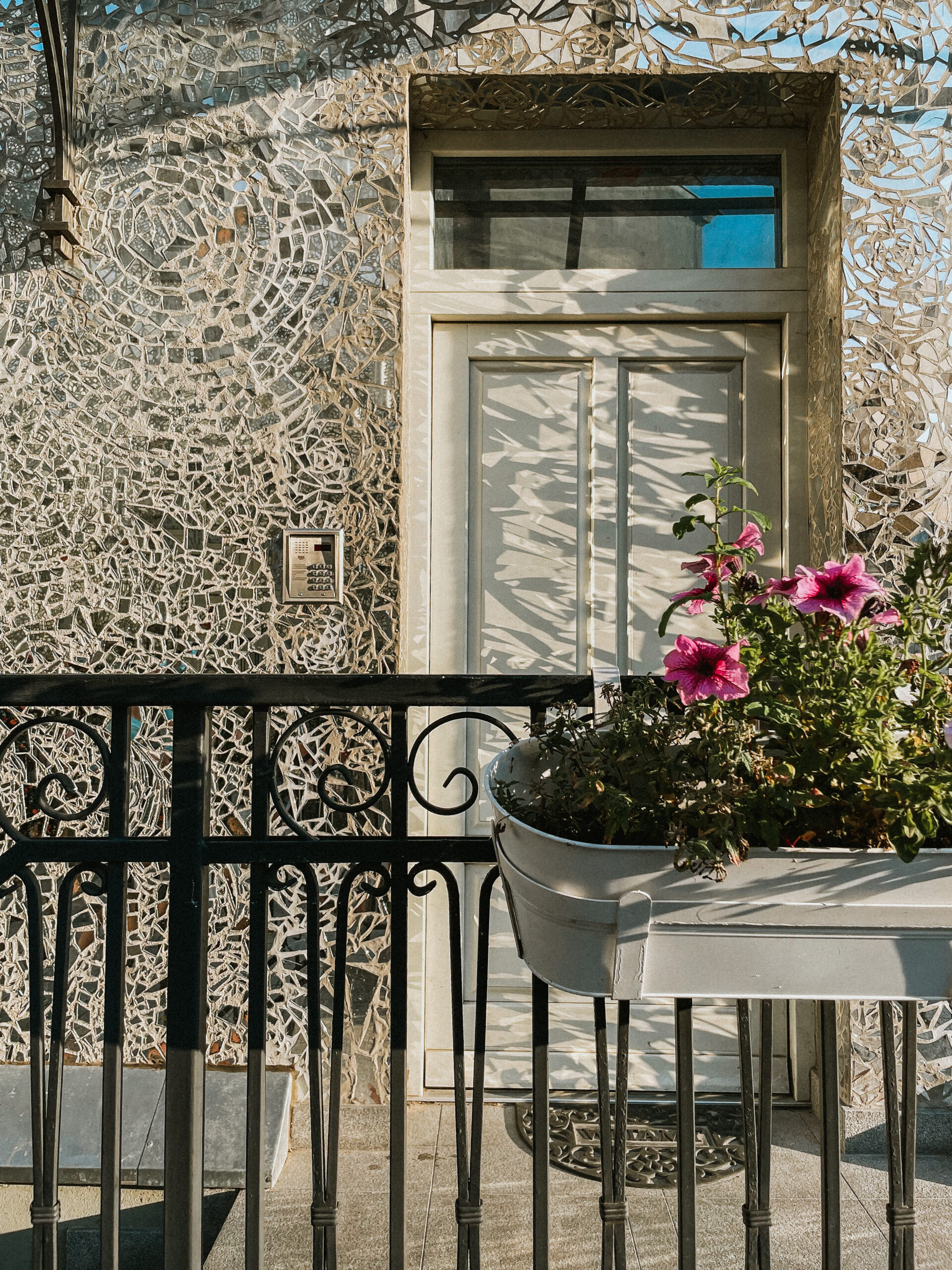 - Pasaż Róży– miejsce WOW! Podwórze i kamienica ozdobione mozaiką z kawałków luster. Nie przesadzę jeśli powiem, że to miejsce DOSŁOWNIE olśniewa i nadaje błysku, kojarzącej się z szarością, Łodzi. Zdecydowanie warto zajrzeć w tę bramę:)
