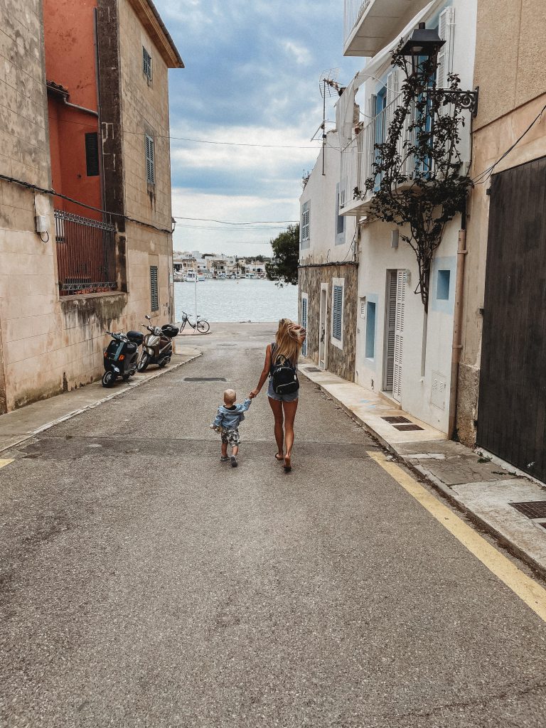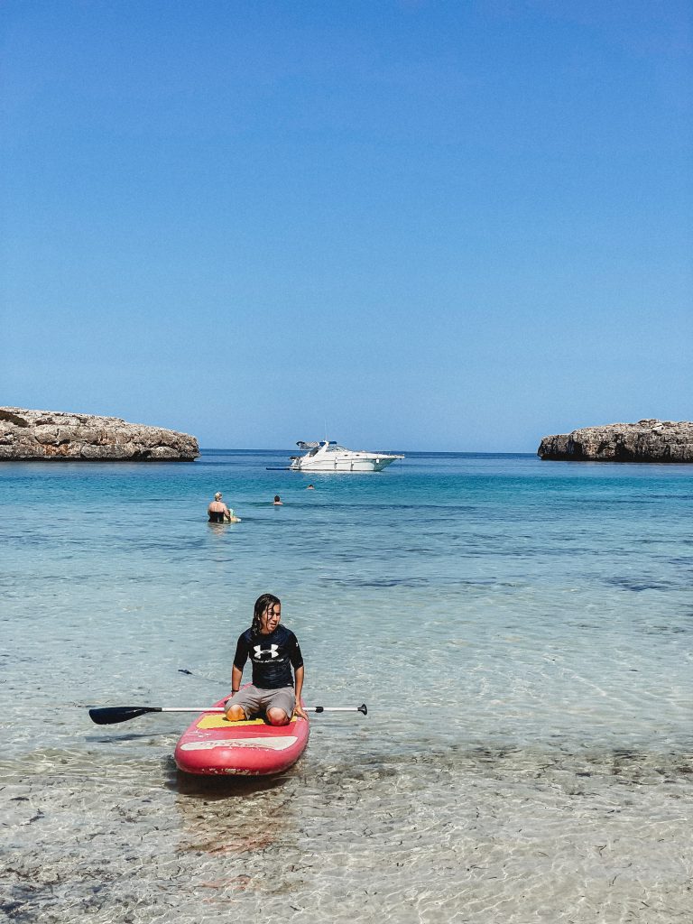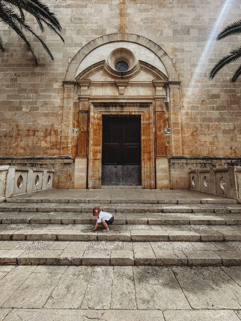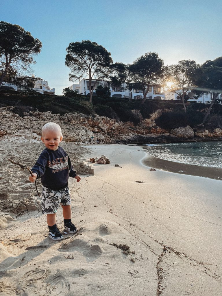 Kiedy na zegarku wybiła „ludzka” godzina, ruszyliśmy na miasto w poszukiwaniu śniadania! Trafiliśmy do Cafeteria Neptuno, której zdecydowanie NIE polecamy. Uprzejma obsługa i smaczny sok ze słodkich pomarańczy nie były w stanie zrekompensować zupełnie nieudanej jajecznicy, którą nam zaserwowano. Zrekompensował je natomiast widok kolejnej plaży! Leżącą w samym sercu miasta Cala d’OrPlaya Cala Gran obserwowaliśmy w ciszy i spokoju, bo młody zdecydował, że to najlepsza pora na ucięcie drzemki.