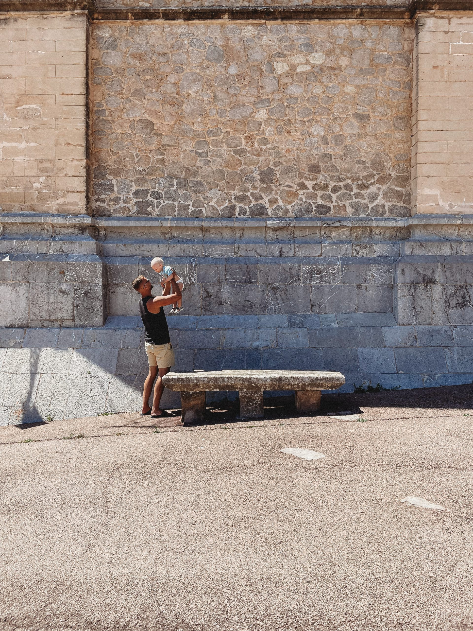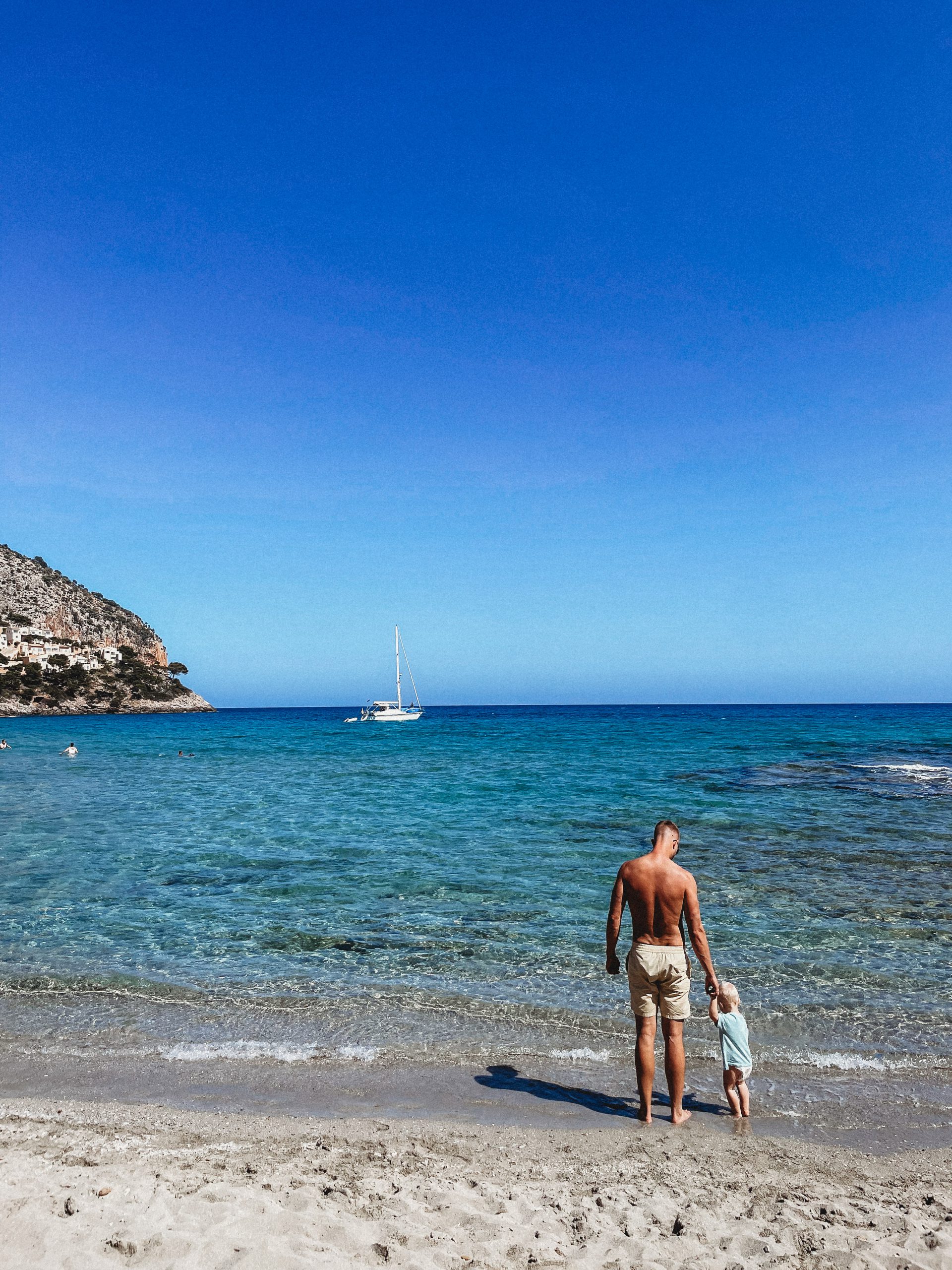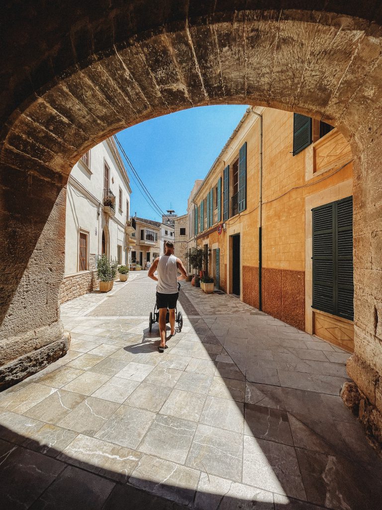 Kiedy na zegarku wybiła „ludzka” godzina, ruszyliśmy na miasto w poszukiwaniu śniadania! Trafiliśmy do Cafeteria Neptuno, której zdecydowanie NIE polecamy. Uprzejma obsługa i smaczny sok ze słodkich pomarańczy nie były w stanie zrekompensować zupełnie nieudanej jajecznicy, którą nam zaserwowano. Zrekompensował je natomiast widok kolejnej plaży! Leżącą w samym sercu miasta Cala d’OrPlaya Cala Gran obserwowaliśmy w ciszy i spokoju, bo młody zdecydował, że to najlepsza pora na ucięcie drzemki.