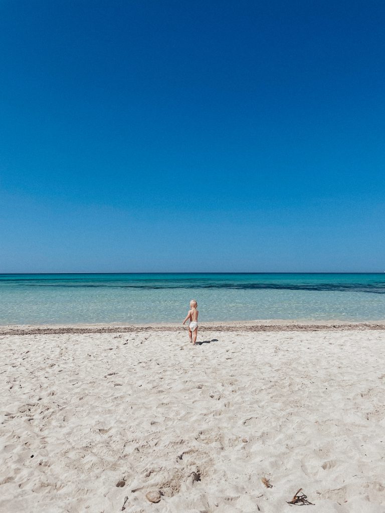 Wypoczęte dziecko postanowiliśmy trochę zmęczyć na kolejnej plaży- Platja de Canjamel… Wiem, wiem… nudy, ciągle tylko te plaże i mały dzieć, ale cóż tak wygląda wakacyjna rzeczywistość z młodym człowiekiem. Jego radość na widok wody i podekscytowanie wywołane przez piasek przesypujący się przez palce są niesamowite. Zachwycam się nad tym ile radości dają mu prozaiczne rzeczy i staram się tego od niego uczyć, a jak wiadomo najlepsza nauka to nauka przez zabawę, najlepiej na plaży?