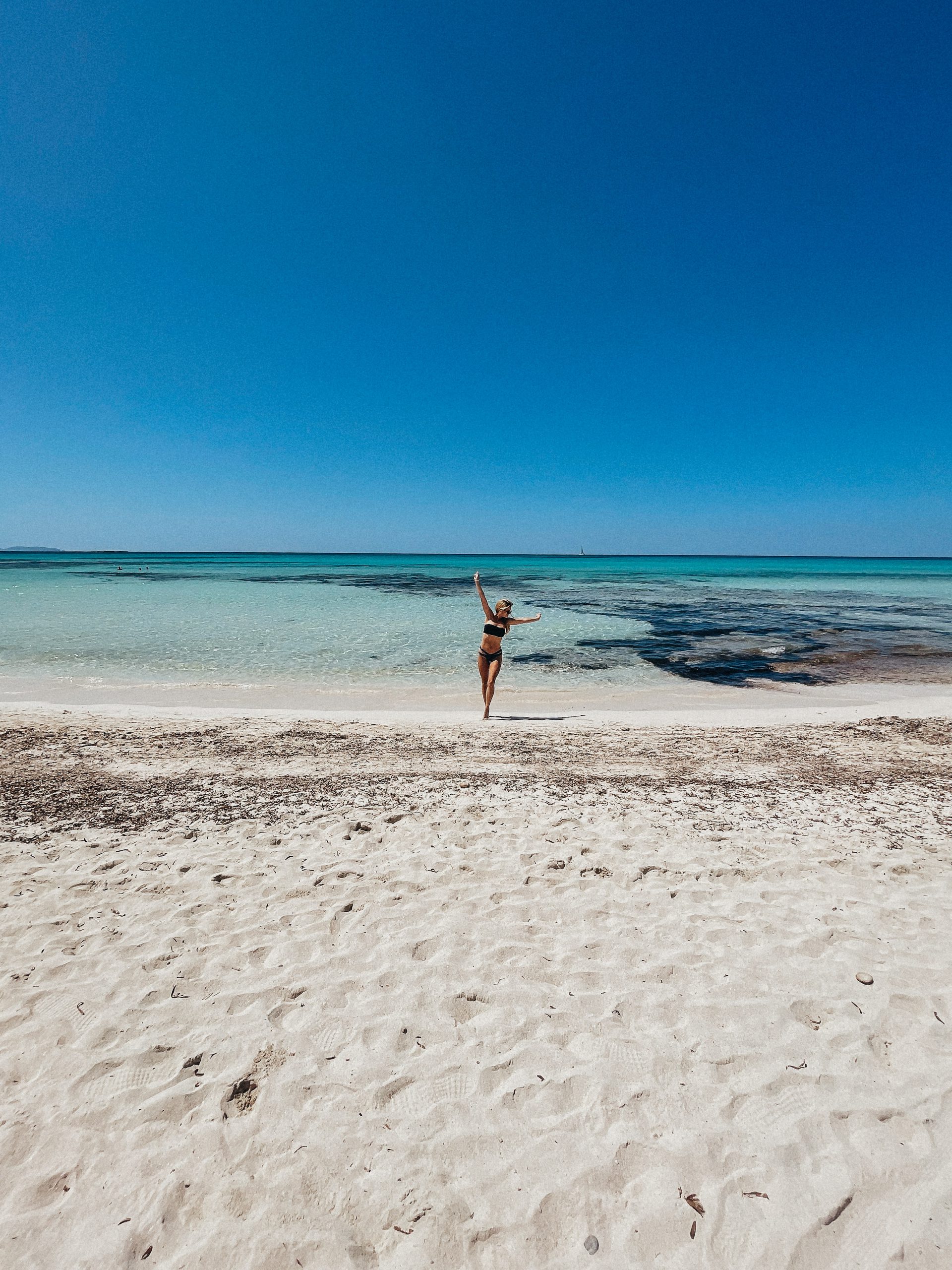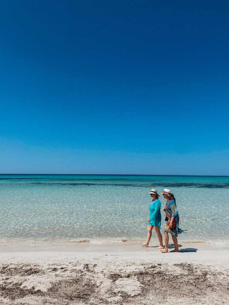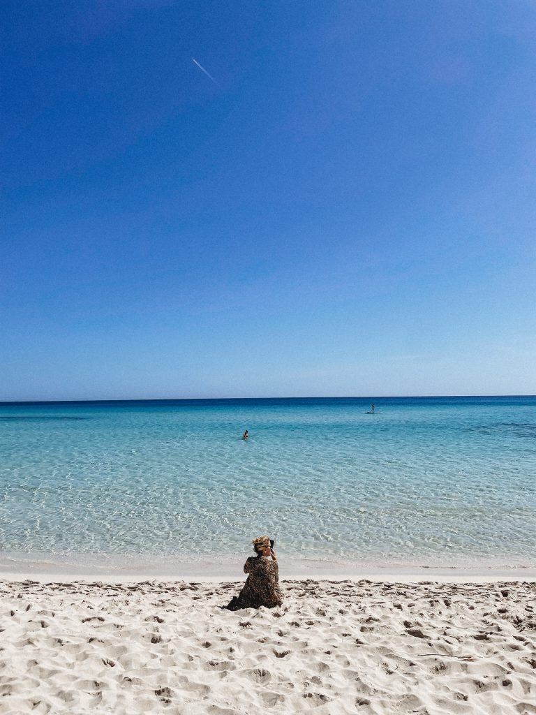 Rutynowo kolejny dzień zaczęliśmy nie gdzie indziej, jak na plaży. Tym razem zdecydowaliśmy się na Es Trenc– miejsce, które odwiedzam za każdym razem będąc na Majorce i za każdym razem odbieram je inaczej. Podczas pierwszej wizyty przypływ wyrzucił na plażę bardzo dużo śmieci, więc zupełnie nie rozumiałam kogo może zachwycić to wysypisko. Tym razem śmieci nie było, a zachwytom nie było końca?  Z rzeczy mniej przyjemnych parking niestety nie należy do najtańszych, bo trzeba przygotować się na wydatek w wysokości 7 euro i nie ma nawet cienia szans na dyskusję w stylu „my tylko na godzinkę”, albo płacisz, albo sio! No więc płacisz…