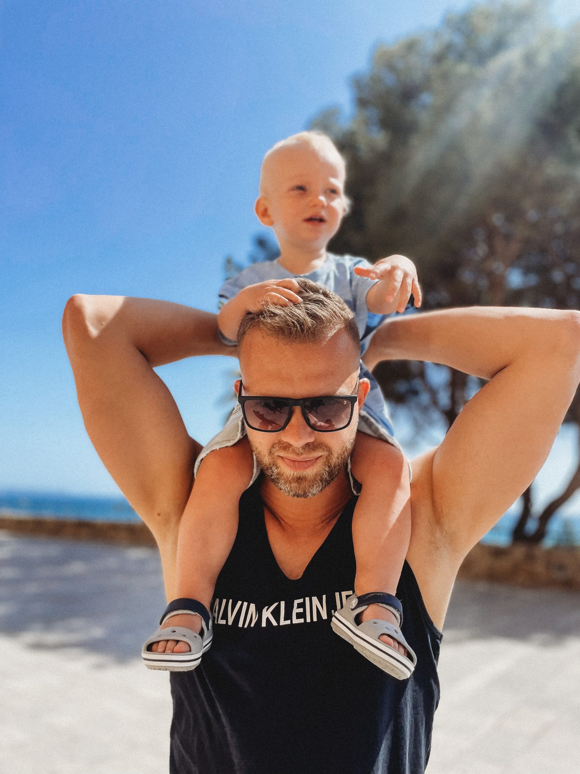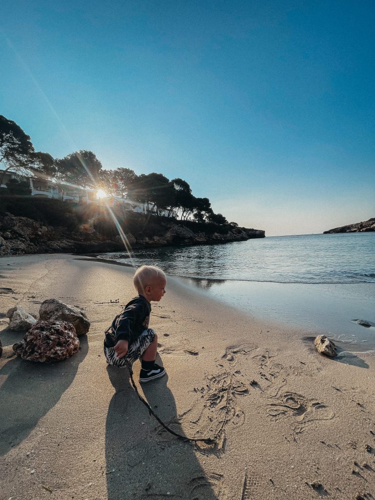 Niestety tej nocy Jasiowi mogliśmy pomoc tylko domowymi sposobami. Na szczęście nasz mały mężczyzna z chorobami radzi sobie bardzo dzielnie i kolejnego ranka zamiast rozpaczać nad swoimi biednymi oczkami obudził nas o wschodzie słońca i zmotywował do podziwiania go z perspektywy przyhotelowej plaży Cala Esmeralda. Kiedy tata smacznie spał my stawialiśmy pierwszy babki z piasku, które Janek w ekspresowym tempie niszczył, radośnie wykrzykując przy tym „bam, bam, bam!”.