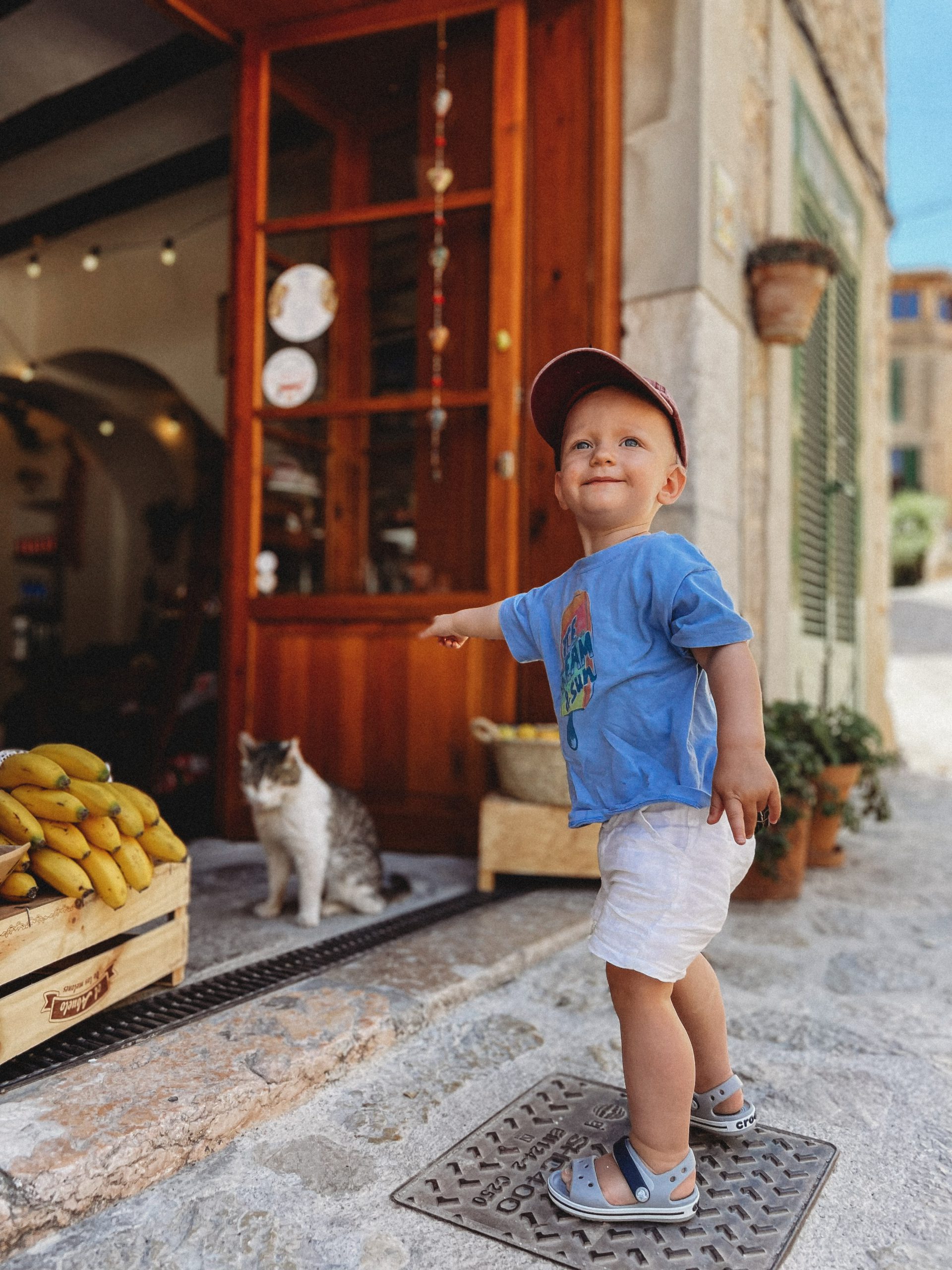 Tego dnia obiecałam Andrzejowi, że zabiorę go do jednego z najbardziej romantycznych miejsc na Majorce, do Valdemossy. Już z trasy, skalne miasteczko wyłaniające się spośród zieleni, robiło sporo wrażenie i zapowiadało pozytywne doznania, Jan miał jednak tego dnia odmienny plan! Chyba mamy z synem nieco inne wyczucie klimatu, kiedy ja próbowałam zarazić chłopaków zachwytem nad pięknem tego miejsca, Jachu usilnie próbowałam dorwać kota na pobliskim targowisku… Nie pomogła próba przekupstwa bananem, nie pomogła pizza ani lody, kot okazał się znacznie bardziej interesujący. Kiedy postanowiliśmy ukrócić cierpienia, nieco przytłoczonego nadmierna ekscytacją naszego syna, futrzaka i zabraliśmy Jana z dala od zwierzaka, ten zrobił nam taką awanturę, że magia Valdemossy uleciała w niewiadomym kierunku, a tata marzył o jednym – o powrocie do hotelu!