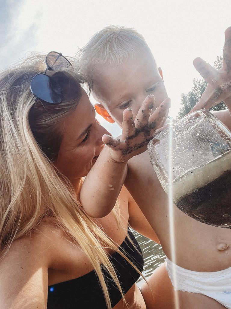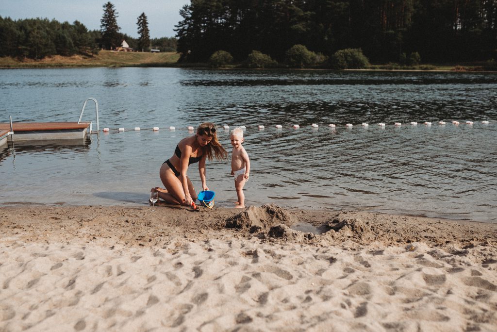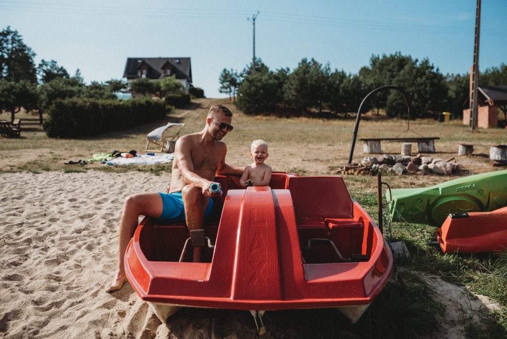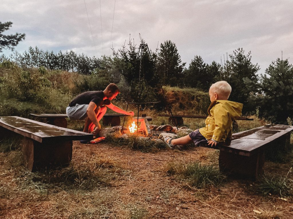 Były spacery po lesie i walki na szyszki, były różowe zachody słońca, były też czarne chmury i… ognisko w deszczu! Tak, tak, Tato obiecał synowi ognisko, a że słowa trzeba dotrzymywać to rozpalił je mimo niesprzyjających warunków atmosferycznych, a Jasiu… A Jasiu wolał iść na plac zabaw! I tak na prawdę tutaj mogłabym postawić kropkę. Nie napiszę o okolicznych atrakcjach, ale nie dlatego, że ich tam nie ma, a dlatego, że był to zupełnie inny rodzaj wyjazdu. Oczywiście nie byłabym sobą, gdybym przed podróżą nie sprawdziła co oferuje okolica, a oferuje wiele, ale założyłam sobie przysłowiową smycz i powstrzymałam się przed: „a jedźmy tam…”, „a zobaczmy to…”. Głód odkrywania jest we mnie tak silny, że niezwykle trudno mi usiąść w miejscu i po prostu cieszyć się chwilą, ale uczę się… Cały czas się uczę się tego, że można pozwolić sobie przez moment nie robić nic, nie wybiegać myślami w przód, nie planować, cieszyć się wolnością i wzajemną bliskością. Myślę, że to cenna umiejętność, ale żeby opanować tę sztukę potrzebuje jeszcze trochę czasu. Trzymajcie kciuki:)