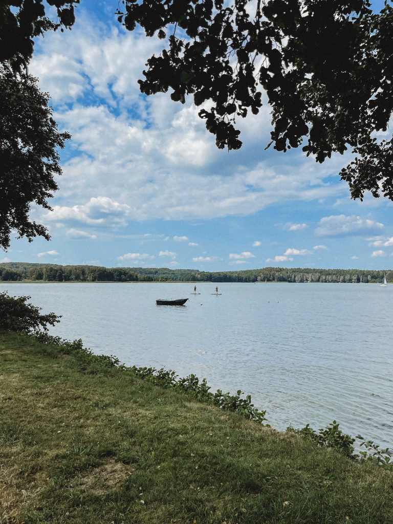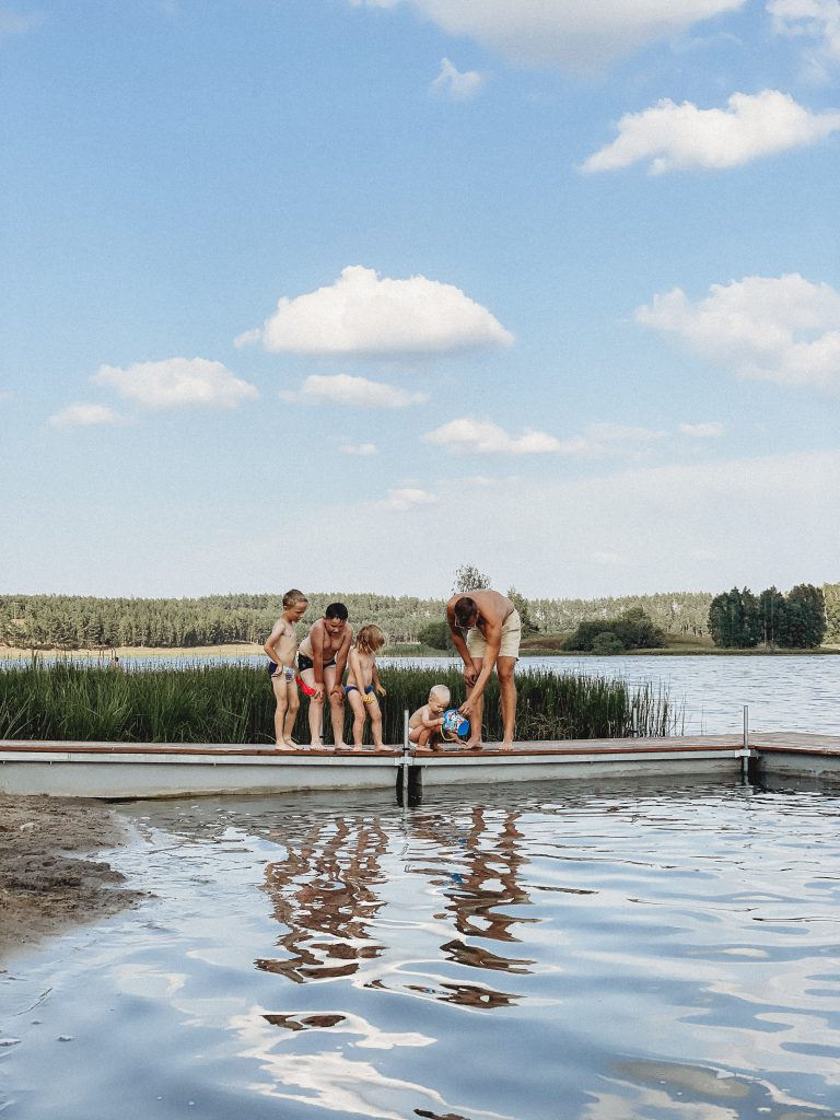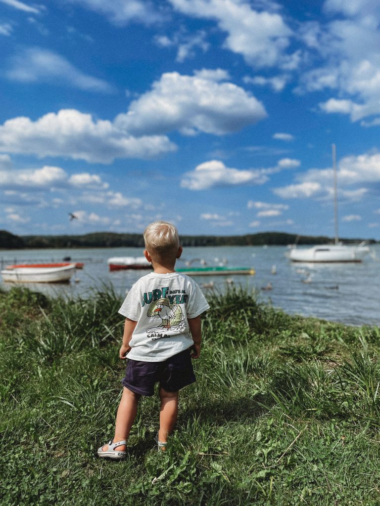 Zatrzymaliśmy się w Lobeliowym Porcie, cichym, spokojnym i kameralnym miejscu, pośrodku pól, z dala od wszelkich hałaśliwych „dobrodziejstw” cywilizacji. Apartament był bardzo czysty i przestronny, na miejscu można było wypożyczyć kajak lub rowerek, ale najlepszy był zdecydowanie widok z balkonu! Uwielbiam te chwile, kiedy zaraz po przebudzeniu mogę odsłonić zasłony, za którymi rozpościera się tafla spokojnej wody, a w tle już mniej spokojnie młody człowiek domaga się kabanosa i świnki Pepki. Achhhh…Tak niewiele trzeba, żeby dzień zaczął się idealnie:)
