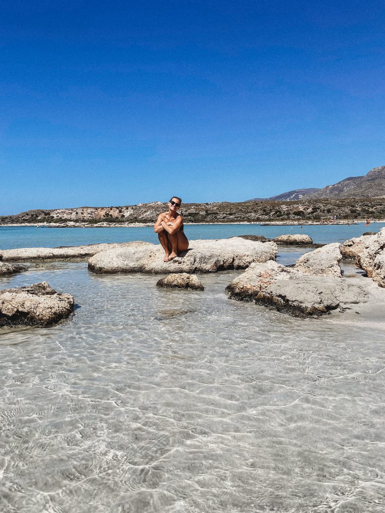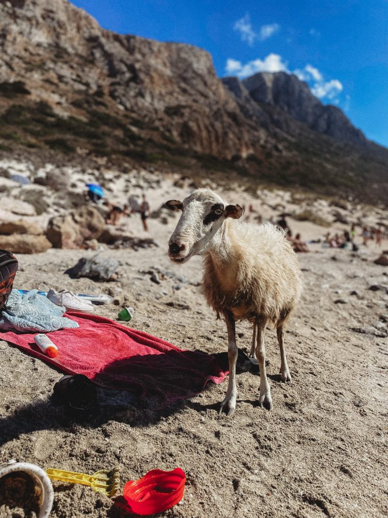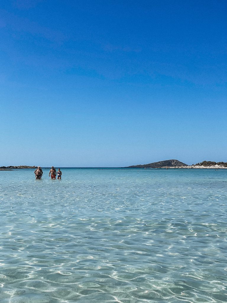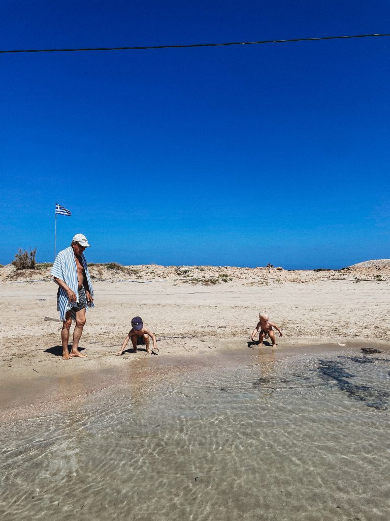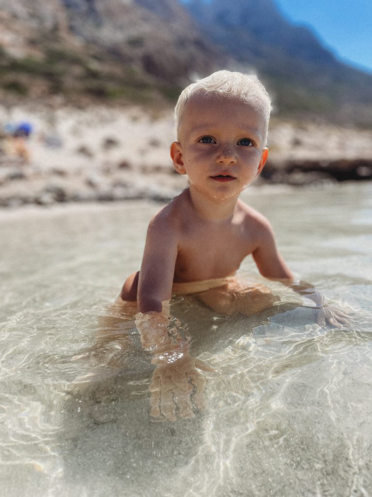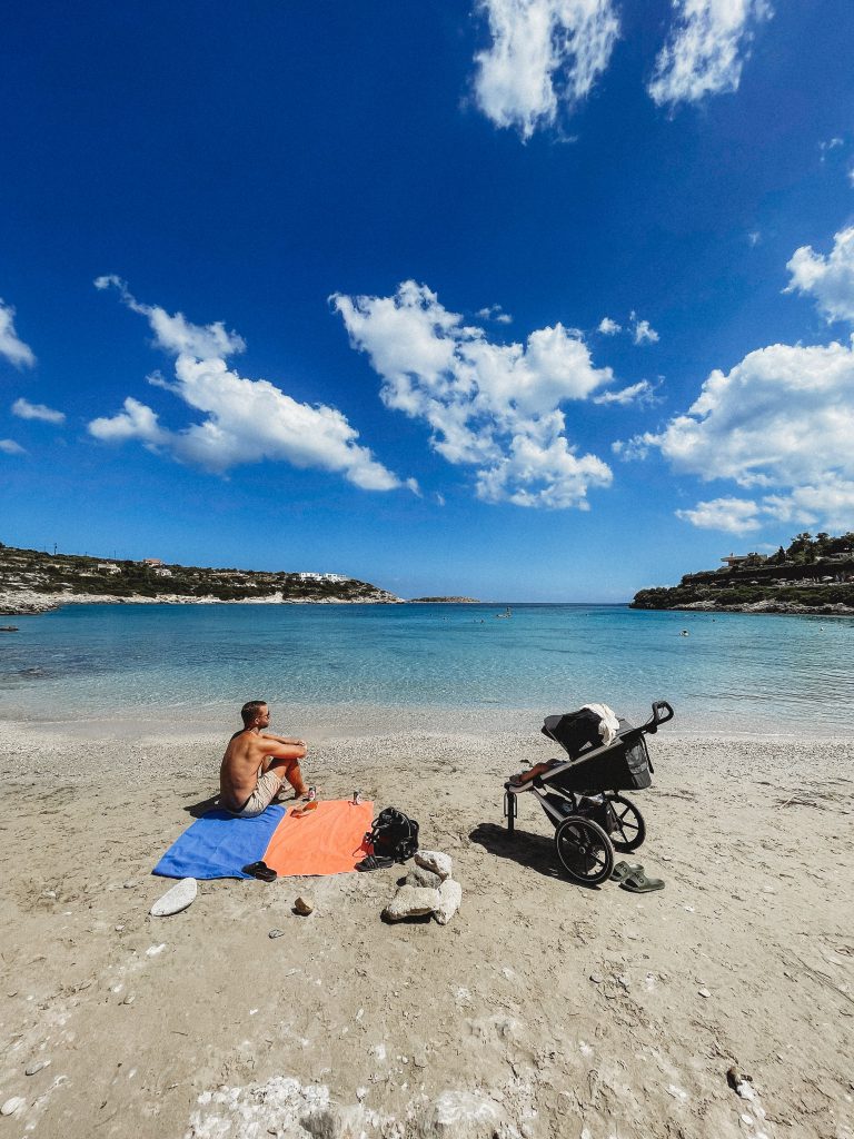 Peristeras Beach nie znajduje się na żadnej liście topowych miejsc do zobaczenia na Krecie. Była po prostu po drodze, więc się na niej zatrzymaliśmy. Kolor wody nie robił już takiego wrażenia jak ten na Balos, czy Elafonisi, ale było tam znacznie ciszej i spokojniej. Po jednej stronie było morze, a zza naszych pleców wyłaniały się Góry Białe. Temperatura wody dawała uczucie przyjemnego orzeźwienia, Janek spał, a ja po raz pierwszy mogłam popływać…;)