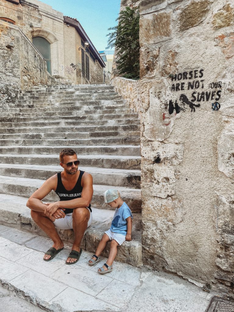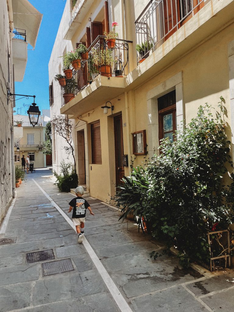 Z plażowych historii przenieśmy się na chwile do miasta, a konkretnie do Rethymno, oddalonego godzinę drogi od Chanii. Wąskie uliczki, port, małe restauracyjki – wakacyjny klasyk. Przyjemnie pobłądzić bez celu, zjeść lody, napić się kawy w miłym towarzystwie i biegać za Jasiem, którego ciekawość świata nie pozwala usiedzieć mu minuty w bezruchu.
