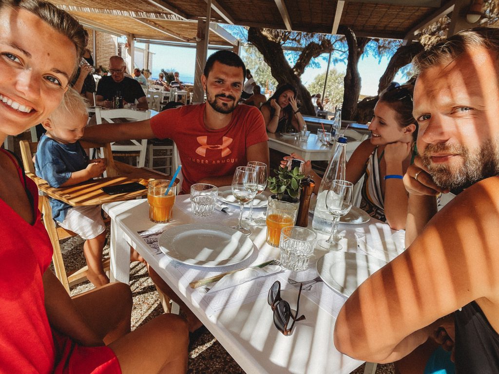 Następnego dnia nasza ekipa niespodziewanie się powiększyła! Ku naszemu zaskoczeniu na grecką wyspę przyleciał szwagier z żoną, czyli dwie dobre dusze, które nasz synek uwielbia i dwie kolejne pary oczy do pomocy przy małym, znikającym często punkcie😊