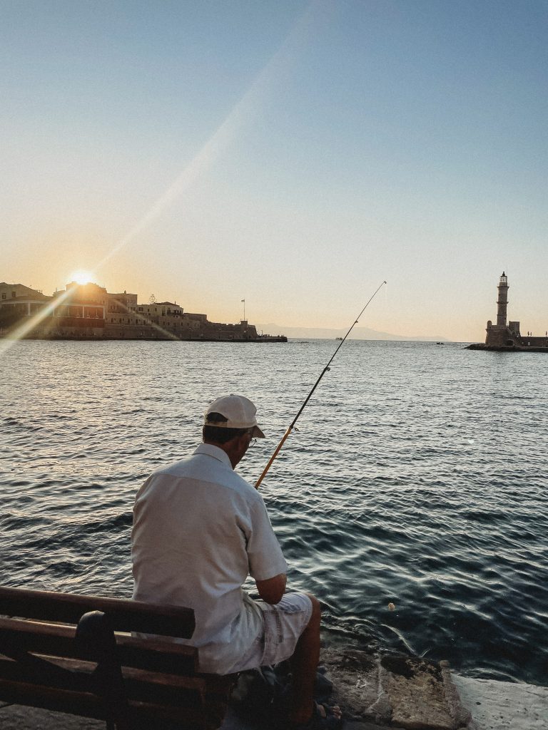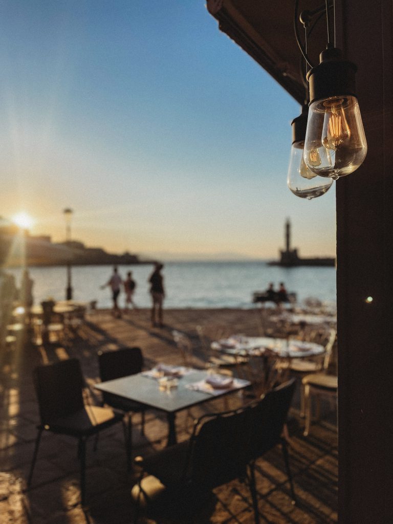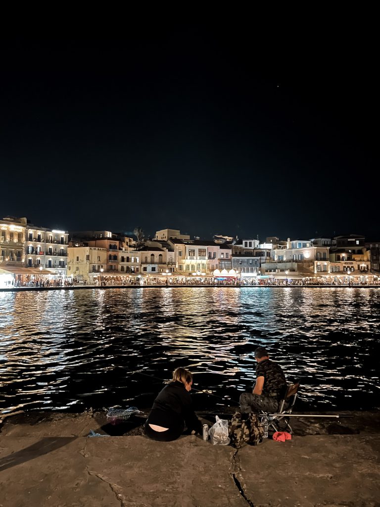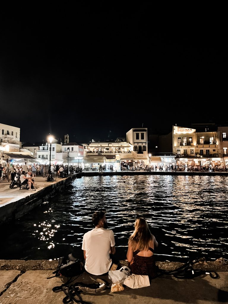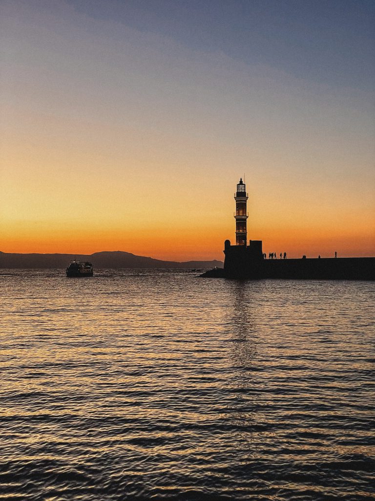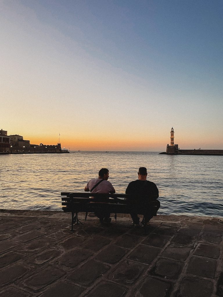 Wieczór spędziliśmy ponownie w Chanii. Zupełnie nieumyślnie trafiliśmy tam w porze zachodzącego słońca. Czytałam kilka razy o tym, jak bajecznie potrafi być tam o tej porze dnia, ale to co zobaczyłam znacznie przerosło moje wyobrażenia. Niebo zalało się pomarańczem, później różem, który zmieszał się z błękitem. Przez chwilę było purpurowo, aż w końcu zrobiło się czarno. Wtedy blask bijący z lampek portowych restauracji nadał miastu bardzo romantycznego klimatu.