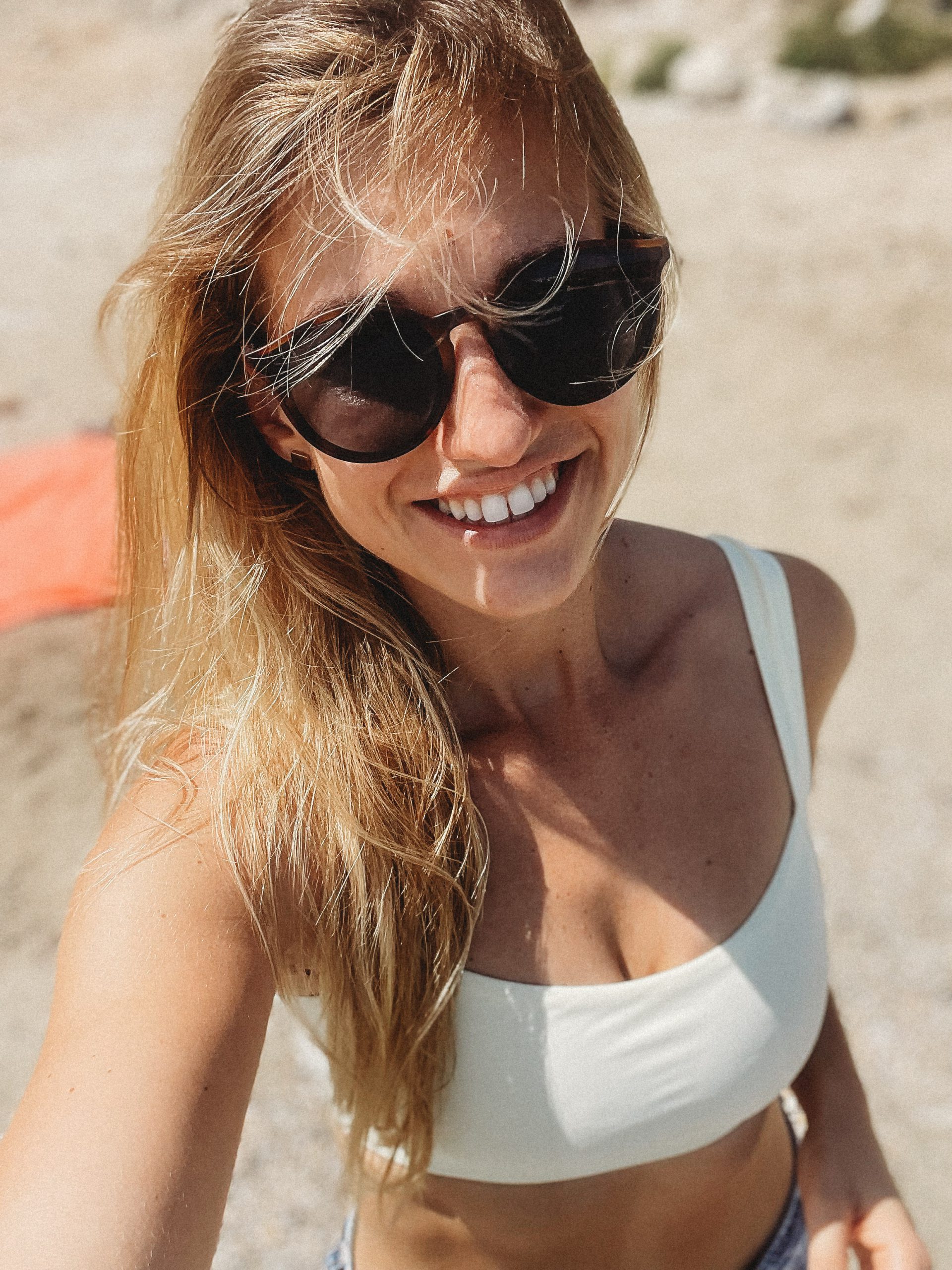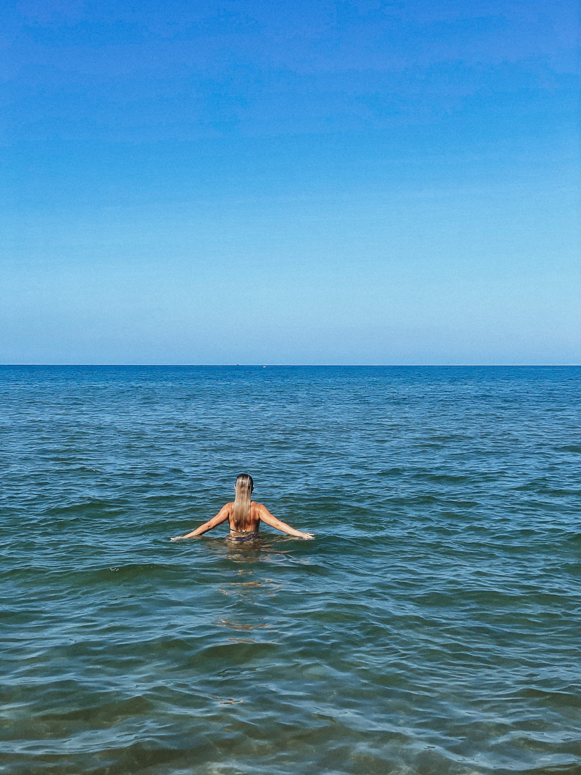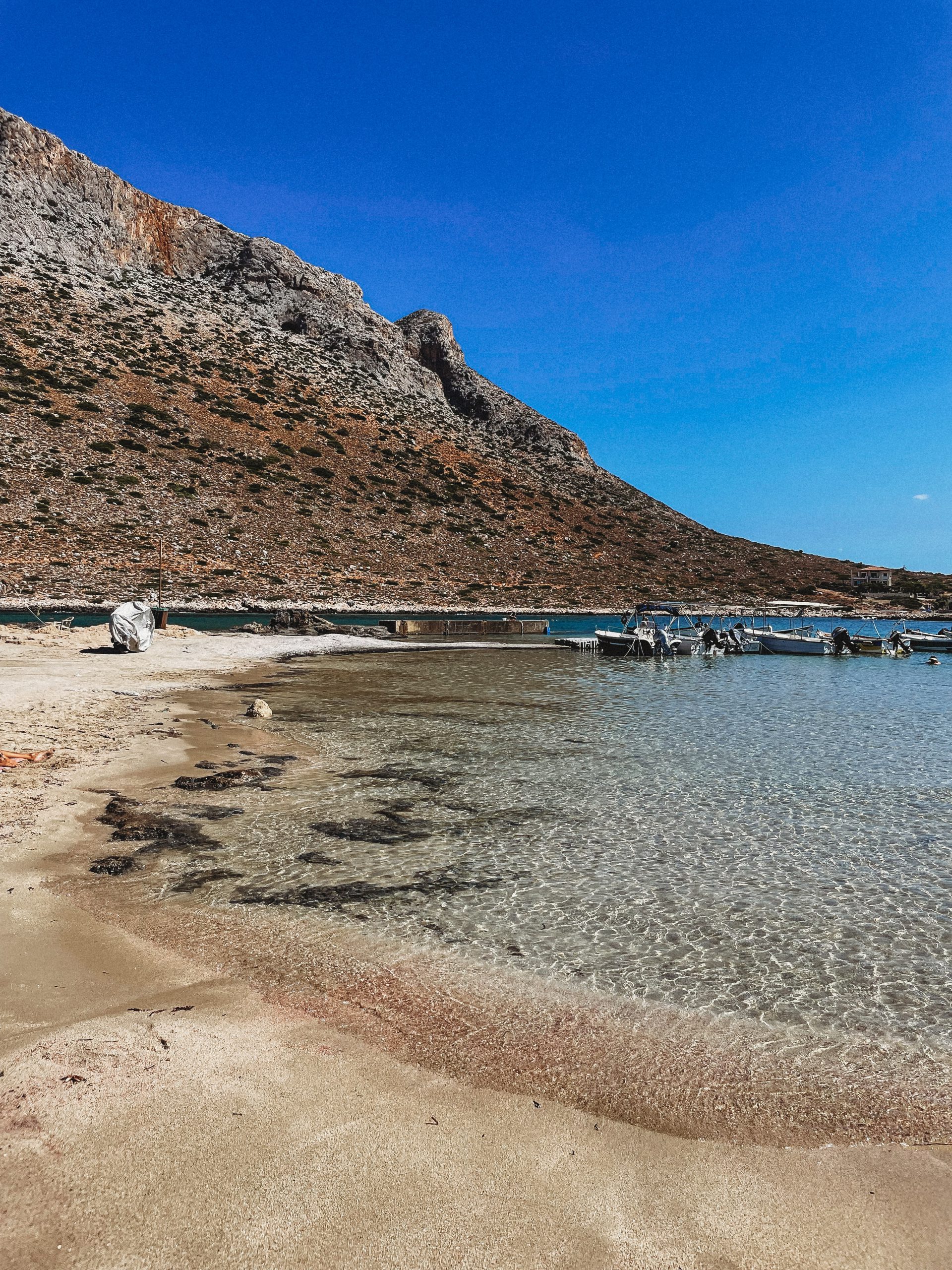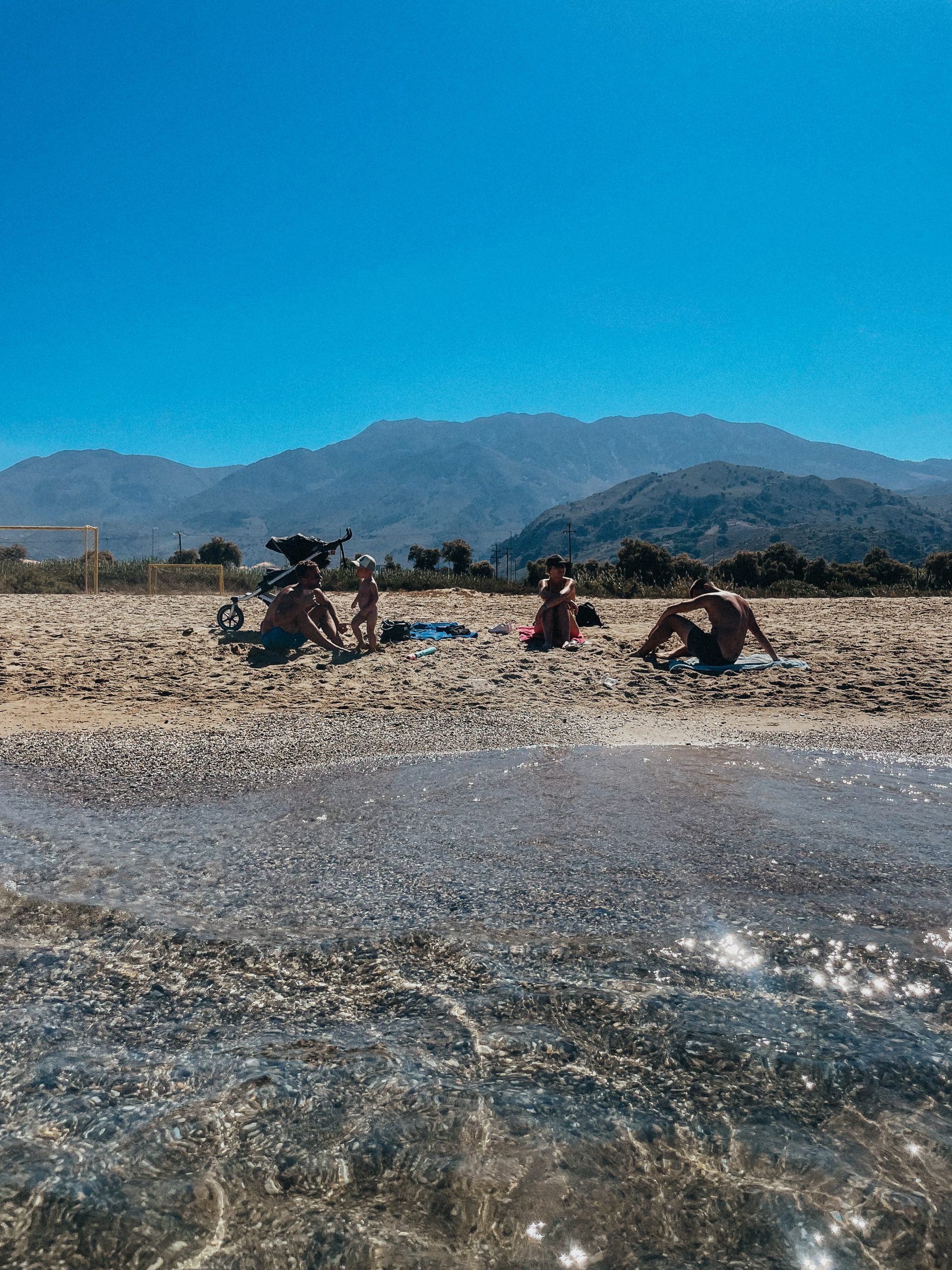 Peristeras Beach nie znajduje się na żadnej liście topowych miejsc do zobaczenia na Krecie. Była po prostu po drodze, więc się na niej zatrzymaliśmy. Kolor wody nie robił już takiego wrażenia jak ten na Balos, czy Elafonisi, ale było tam znacznie ciszej i spokojniej. Po jednej stronie było morze, a zza naszych pleców wyłaniały się Góry Białe. Temperatura wody dawała uczucie przyjemnego orzeźwienia, Janek spał, a ja po raz pierwszy mogłam popływać…;)