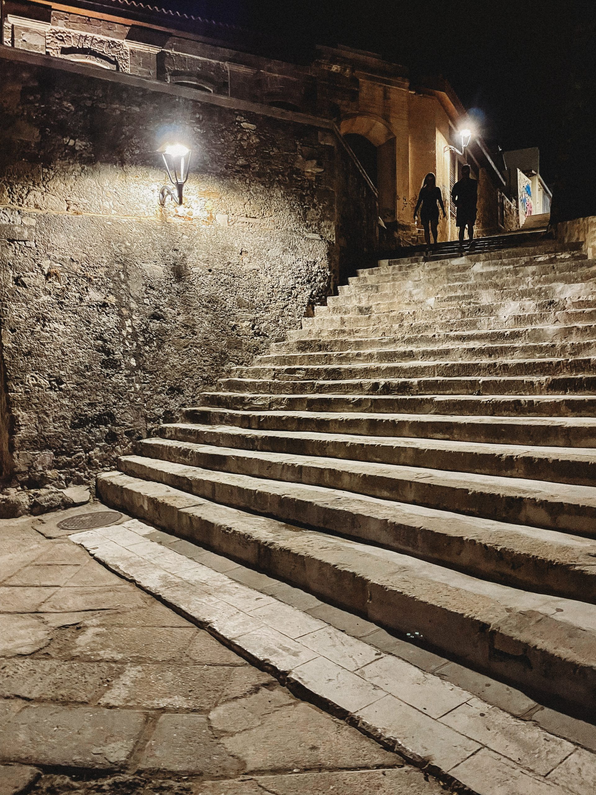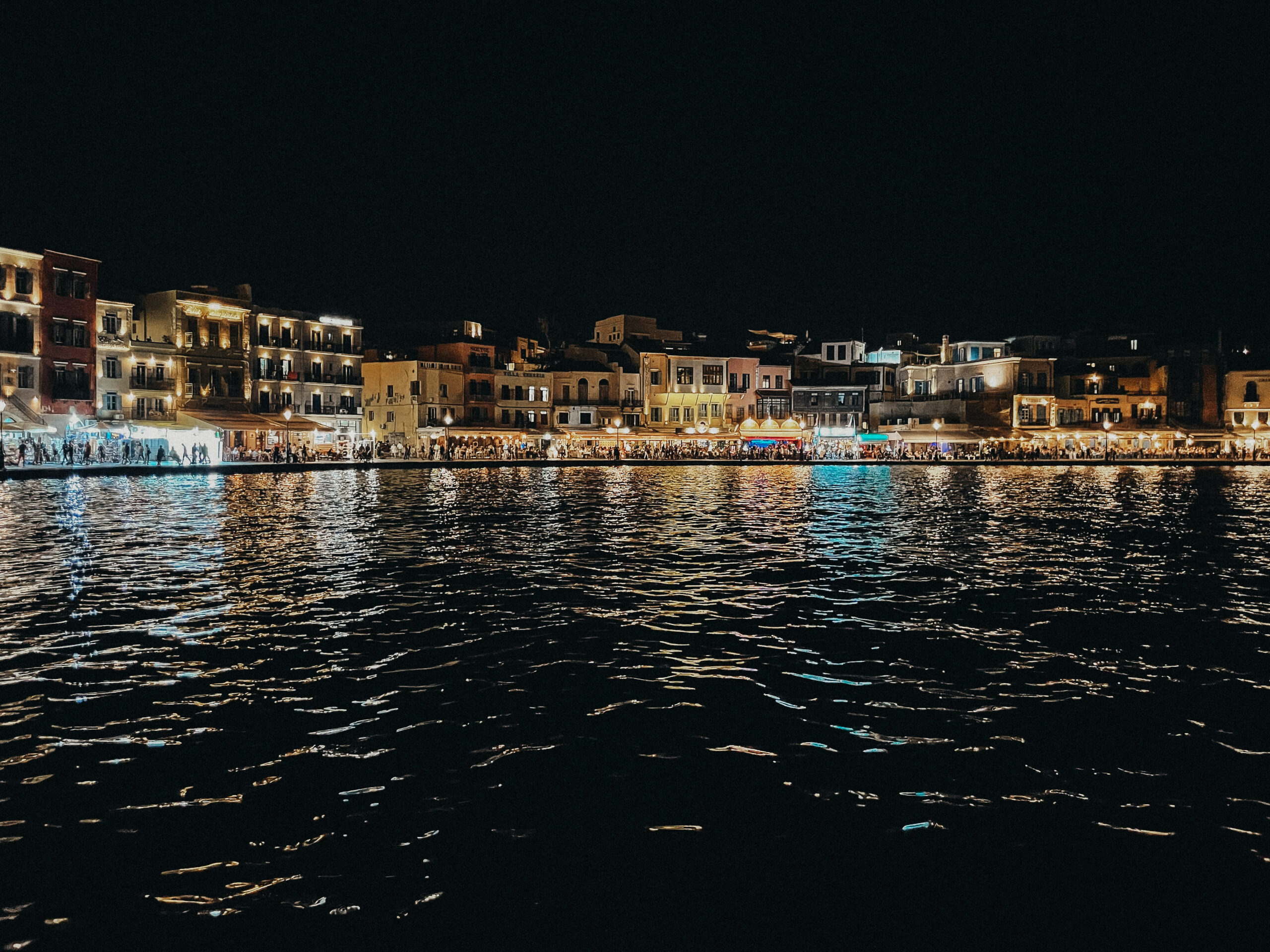 Wieczór spędziliśmy ponownie w Chanii. Zupełnie nieumyślnie trafiliśmy tam w porze zachodzącego słońca. Czytałam kilka razy o tym, jak bajecznie potrafi być tam o tej porze dnia, ale to co zobaczyłam znacznie przerosło moje wyobrażenia. Niebo zalało się pomarańczem, później różem, który zmieszał się z błękitem. Przez chwilę było purpurowo, aż w końcu zrobiło się czarno. Wtedy blask bijący z lampek portowych restauracji nadał miastu bardzo romantycznego klimatu.