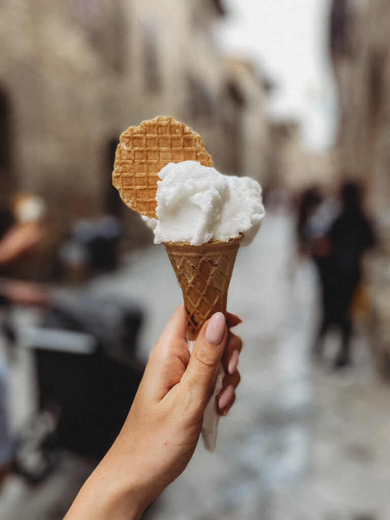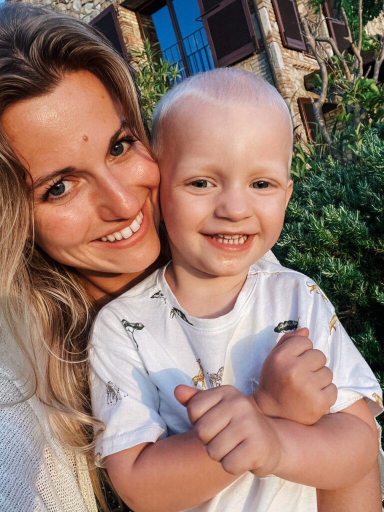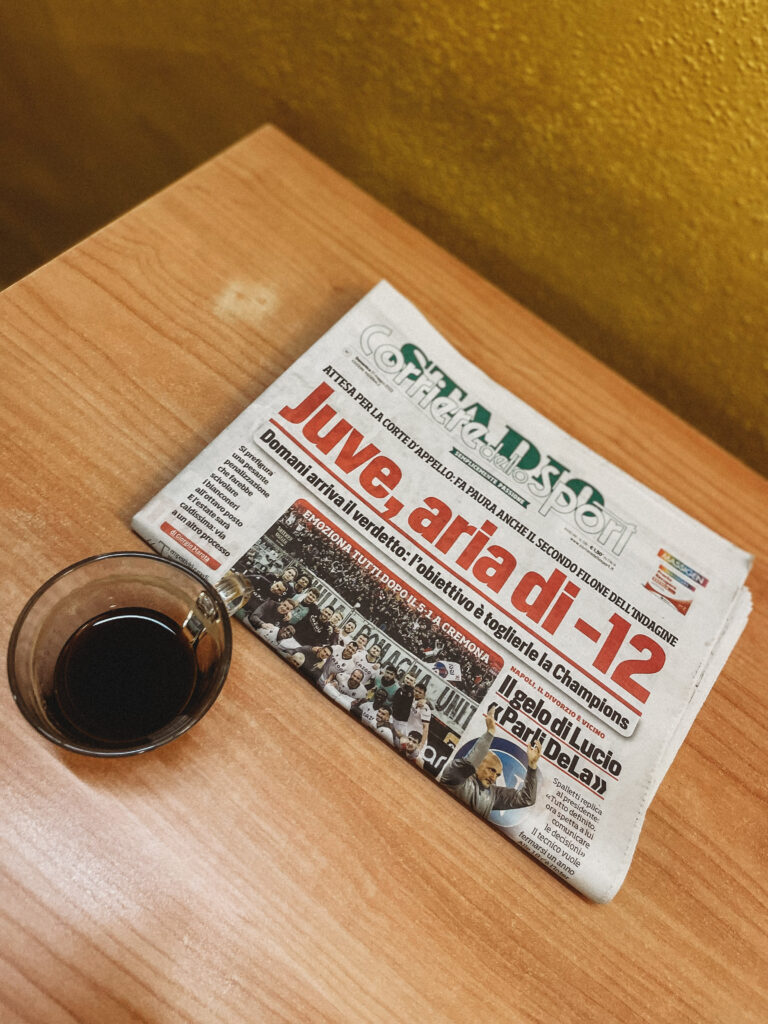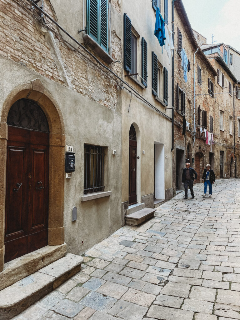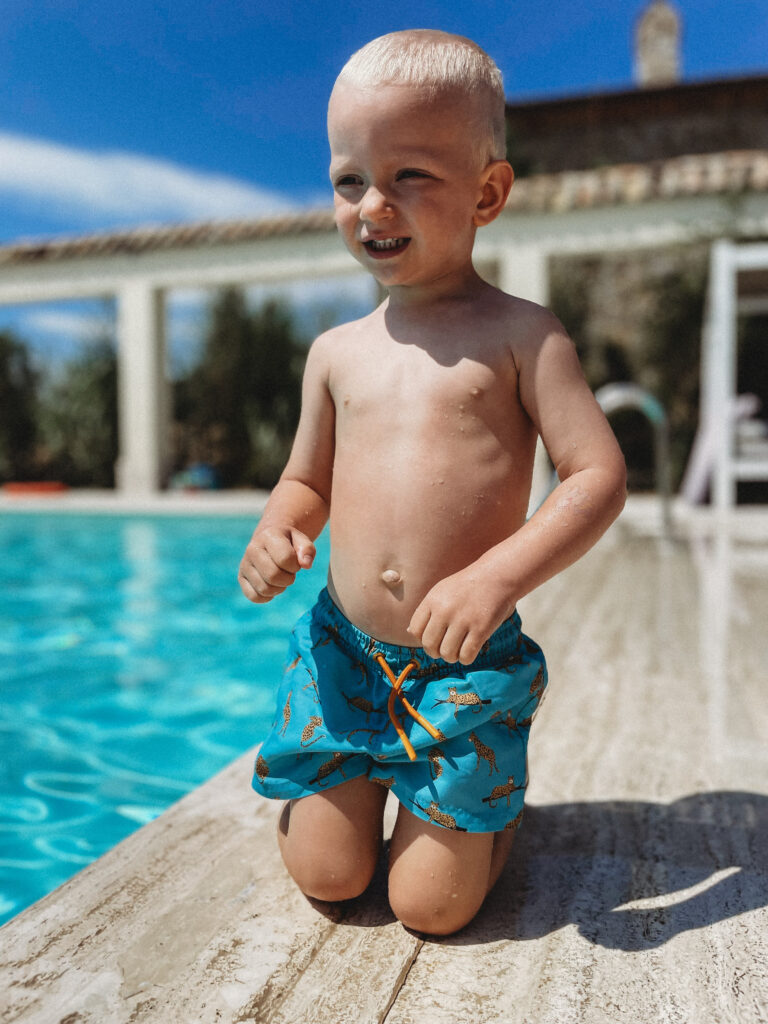 Na codzienne zakupy jeździliśmy do Saline di Volterra– małej wioski, która na pierwszy rzut oka nie oferowała nic szczególnego, tymczasem z każdym dniem odkrywaliśmy w niej coś nowego. Raz piekarnie, która zapachem świeżo upieczonego chleba skusiłaby do grzechu największego przeciwnika glutenu. Innym razem sklep mięsny, jeszcze innym warzywniak. No i sklep z winem i oliwą, ale ten odkryliśmy już pierwszego dnia i o tym kilka linijek niżej😊 Było tam więc wszystko, co niezbędne do życia. Była też Pasticceria Perla… Będąc na urlopie, mamy niepisany zwyczaj wynajdywanie miejsc, w których staramy się wtopić w tłum lokalesów, podglądając i uczestnicząc jednocześnie w ich codziennych zwyczajach. W Saline takim miejscem była dla nas właśnie ta cukiernia, w której rano piliśmy kawę i kupowaliśmy croissanty (te z nadzieniem pistacjowym to mój zdecydowany faworyt!). Pani ekspedientka zawsze witała Jasia ciasteczkiem maślanym i serdecznym uśmiechem. Widać było, że każdy kto tam wchodził dobrze znał się z obsługą. Na jednej z pokrytych żółtą farbą ścian, wisiała tablica z ogłoszeniami, na innej kalendarz ze zdjęciami lokalnej drużyny piłkarskiej, na kolejnej natomiast czarno-białe fotografie przedstawiające miasto sprzed lat. Nie było tam niczego „fancy”, niczego boho, niczego przy czym można byłoby zrobić fotkę za miliony lajków, ale był niepowtarzalny klimat i to nam zupełnie wystarczało!