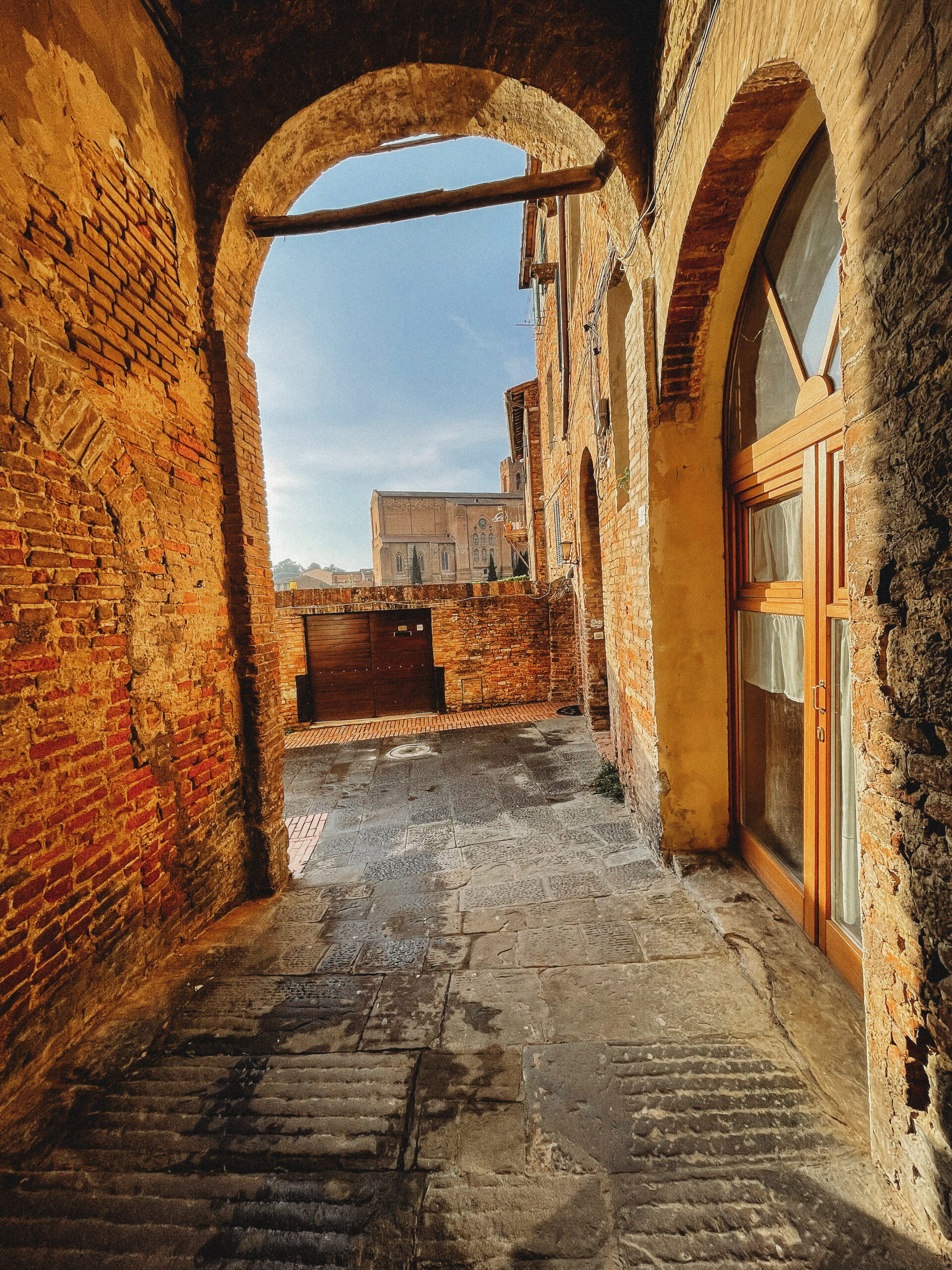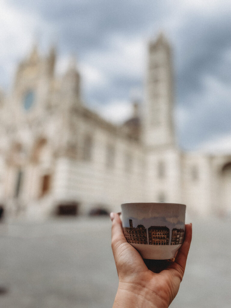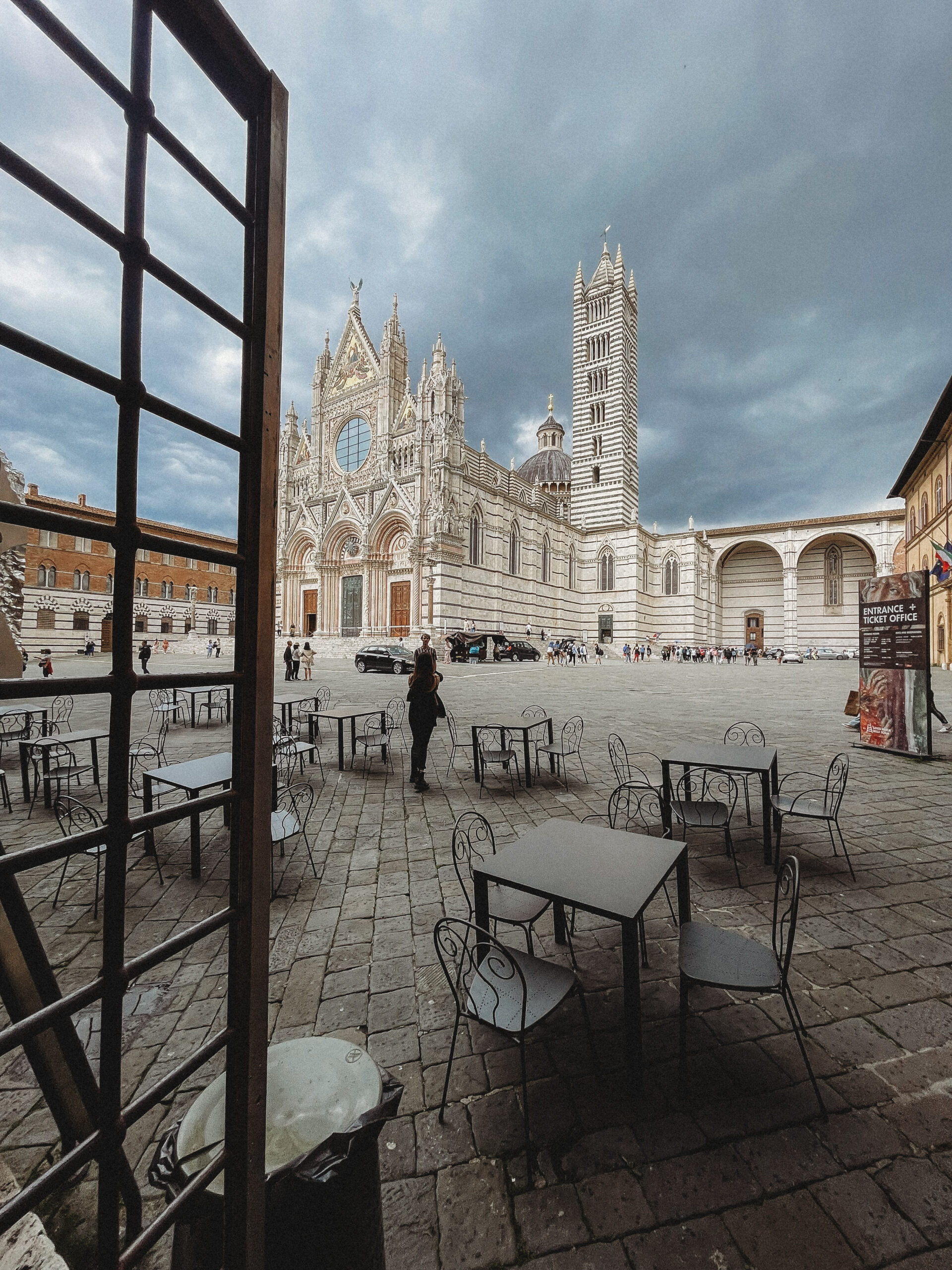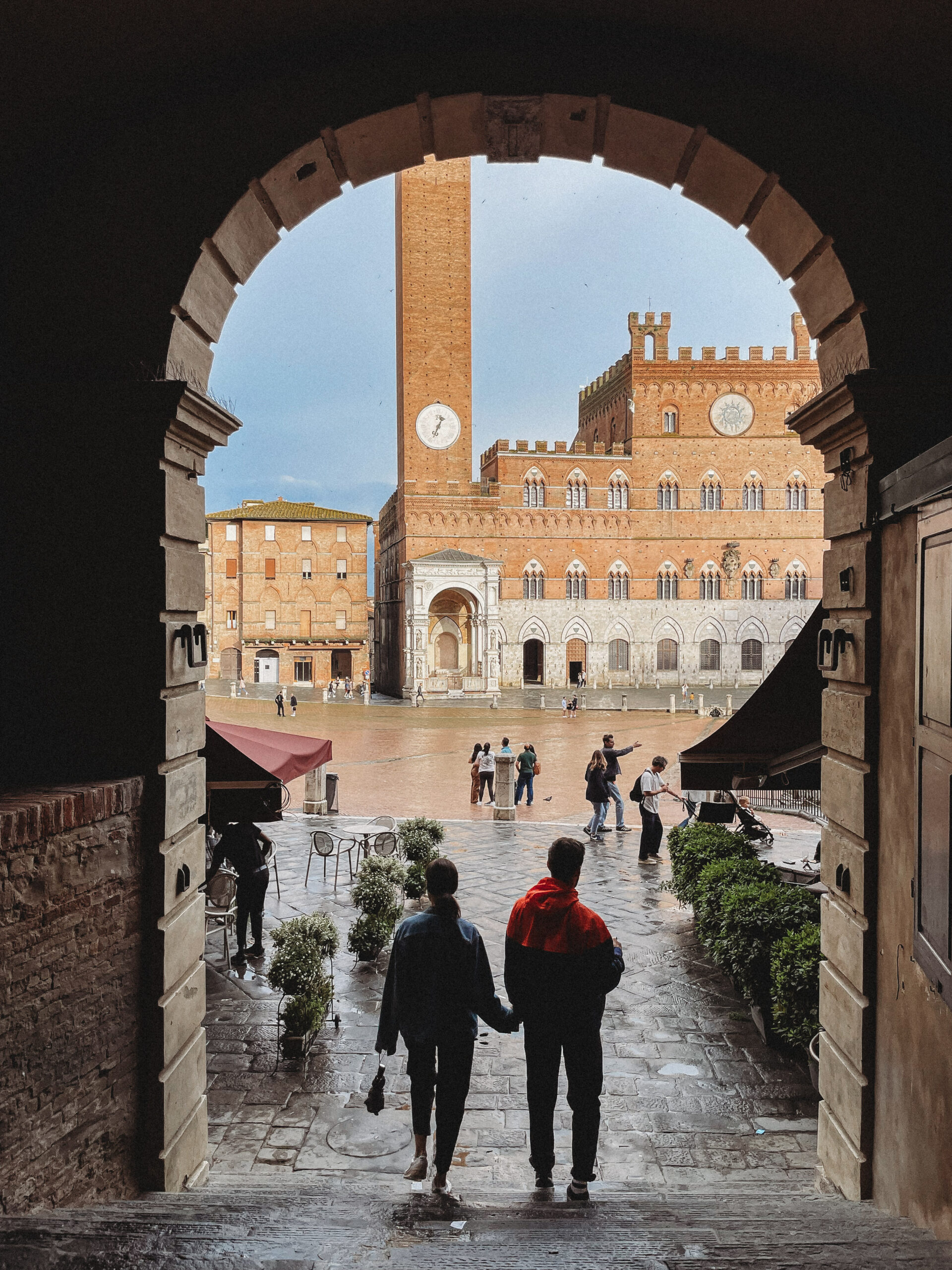 Mimo, po raz kolejny, niezbyt zachęcających prognoz pogody postanowiliśmy ponownie zaryzykować i ruszyliśmy w trasę, tym razem do Sieny. Kiedy po zaparkowaniu auta usłyszeliśmy pierwsze, zwiastujące nadchodzącą burzę grzmoty, udaliśmy się do knajpy na przeczekanie zbliżającej się ulewy. Zdążyłam jeszcze zbiec na dół (tak, dobrze czytacie, do miasta wchodzi się po schodach, ruchomych schodach!) po bluzę i koc dla pierworodnego, a kiedy dobiegałam do restauracji deszcz sprawił mi orzeźwiającą niespodziankę. Przeczekaliśmy ten mały kataklizm pijąc Chianti Classico i oglądając z Jasiem bajki na telefonie, a kiedy wyszło słońce wyszliśmy i my. Siena zdecydowanie wywarła na nas największe wrażenie. Niby podobna, a jednak zupełnie inna od wszystkich dotychczas odwiedzanych miast. Trudno powiedzieć dlaczego – po prostu, wygrała, mimo deszczu, z którym powoli zaczynaliśmy się oswajać.