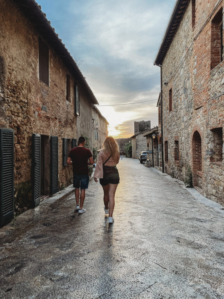 Monteriggioni odwiedziliśmy w drodze powrotnej. Odwiedziliśmy nie bez powodu. W naszej ekipie byli fani gry Assassin’s Creed, a Monteriggioni pojawiła się jako tło w jednej z jej części. Chociaż fanką tego typu rozrywki nigdy nie byłam, to skoro ludzie podróżują po Paryżu śladami Emilly, dlaczego my nie mielibyśmy ruszyć szlakiem gier?