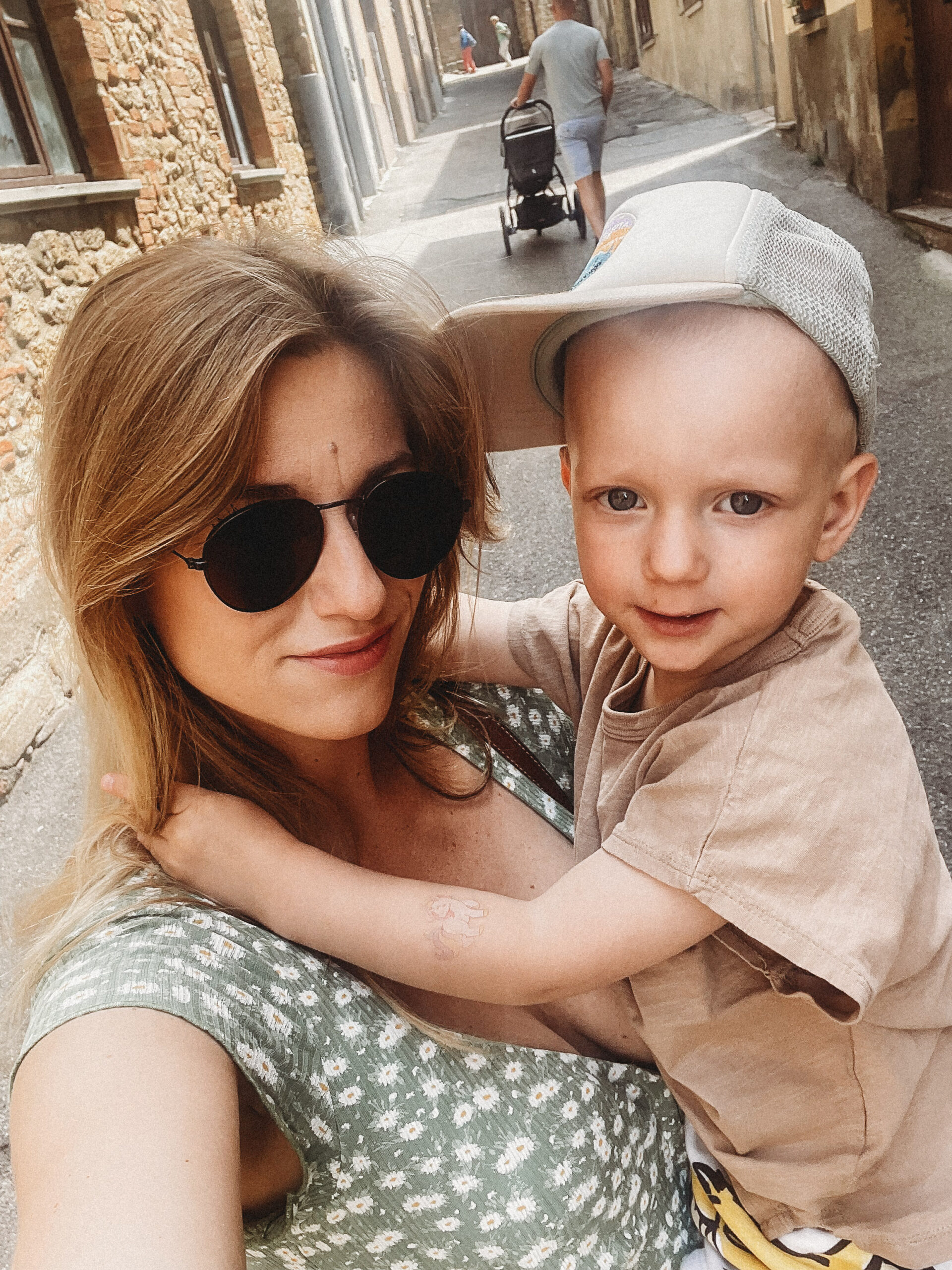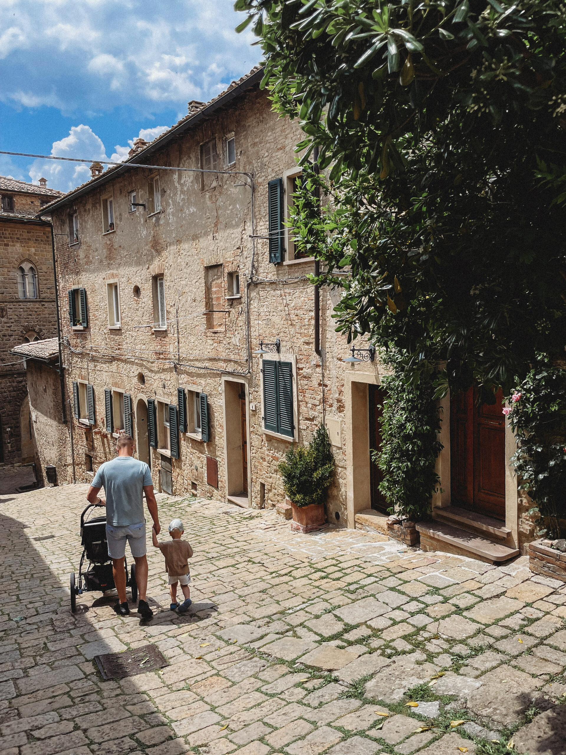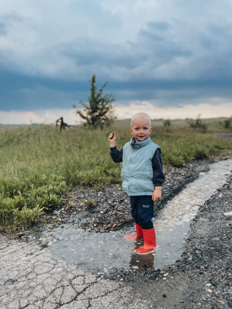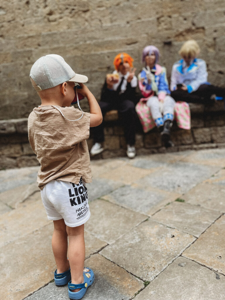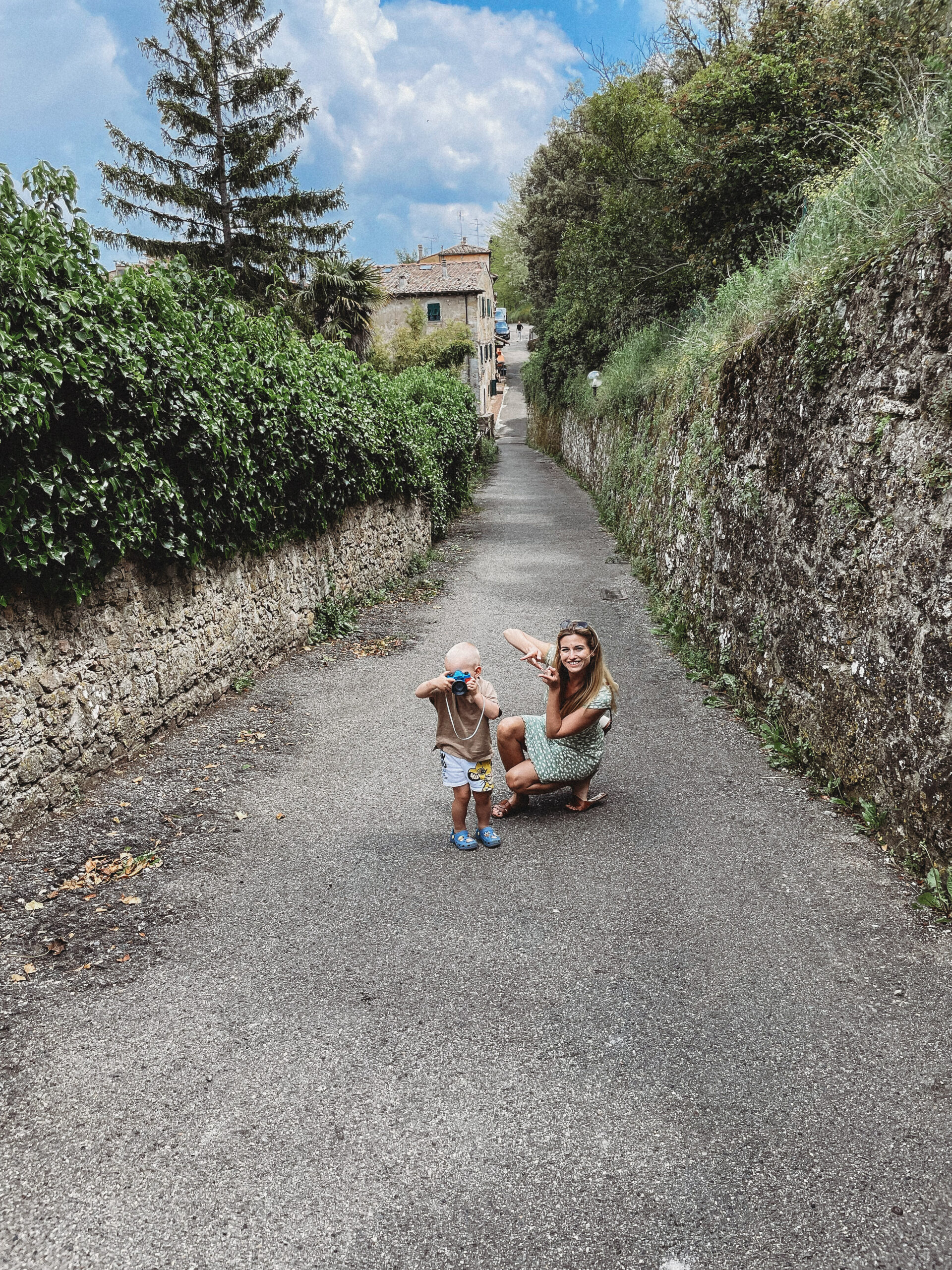 Kolejnego dnia powitało nas słońce! Była nadzieja, a jak wiadomo nie od dziś – nadzieja matką głupich, o czym przekonaliśmy się tamtego dnia. Korzystając ze sprzyjającej pogody, udaliśmy się do Volterry, w której akurat odbywał się festiwal wampirów i innych upiornych stworów. Volterra to jedno z tych miast, w których się nie „odhacza”, a po których warto się powłóczyć, pozaglądać w ukwiecone bramy i zgubić w średniowiecznych uliczkach. Podobnie, jak zresztą w San Gimigiano, do którego udaliśmy się później, uciekając przed zbliżającą się do miasta, burzą. Dotarliśmy do celu, kiedy w powietrzu unosił się już zapach nadchodzącego żywiołu… Naiwnie wierząc, że deszcz „przejdzie bokiem”, dziarsko ruszyliśmy w miasto, po drodze zatrzymując się jeszcze na, nie bez powodu owiane sławą, lody! Zajadając się porcją cytrynowego deseru doszliśmy do głównego placu i wtedy właśnie spadł on – deszcz, a właściwie to porządne deszczysko, które rozproszyło tłum turystów, sprawiając, że centrum miasta zupełnie się wyludniło. Chwilę później przestało padać, by za chwile znów zaskoczyć potężna ulewą, która nie pozostawiała złudzeń – lepiej nie będzie, czas na ewakuacje. Najmłodszy uczestnik wycieczki smacznie przespał całe widowisko i obudził się dopiero kiedy wszyscy, przemoknięci do suchej nitki i porządnie przemarznięci, wróciliśmy do samochodu. Wieczorem Jasiek uzbrojony w kalosze biegał po wszystkich możliwy kałużach i chyba jako jedyny z całej ekipy miał zupełnie gdzieś jaka jest pogoda, bo przecież w każdej jest coś fajnego.