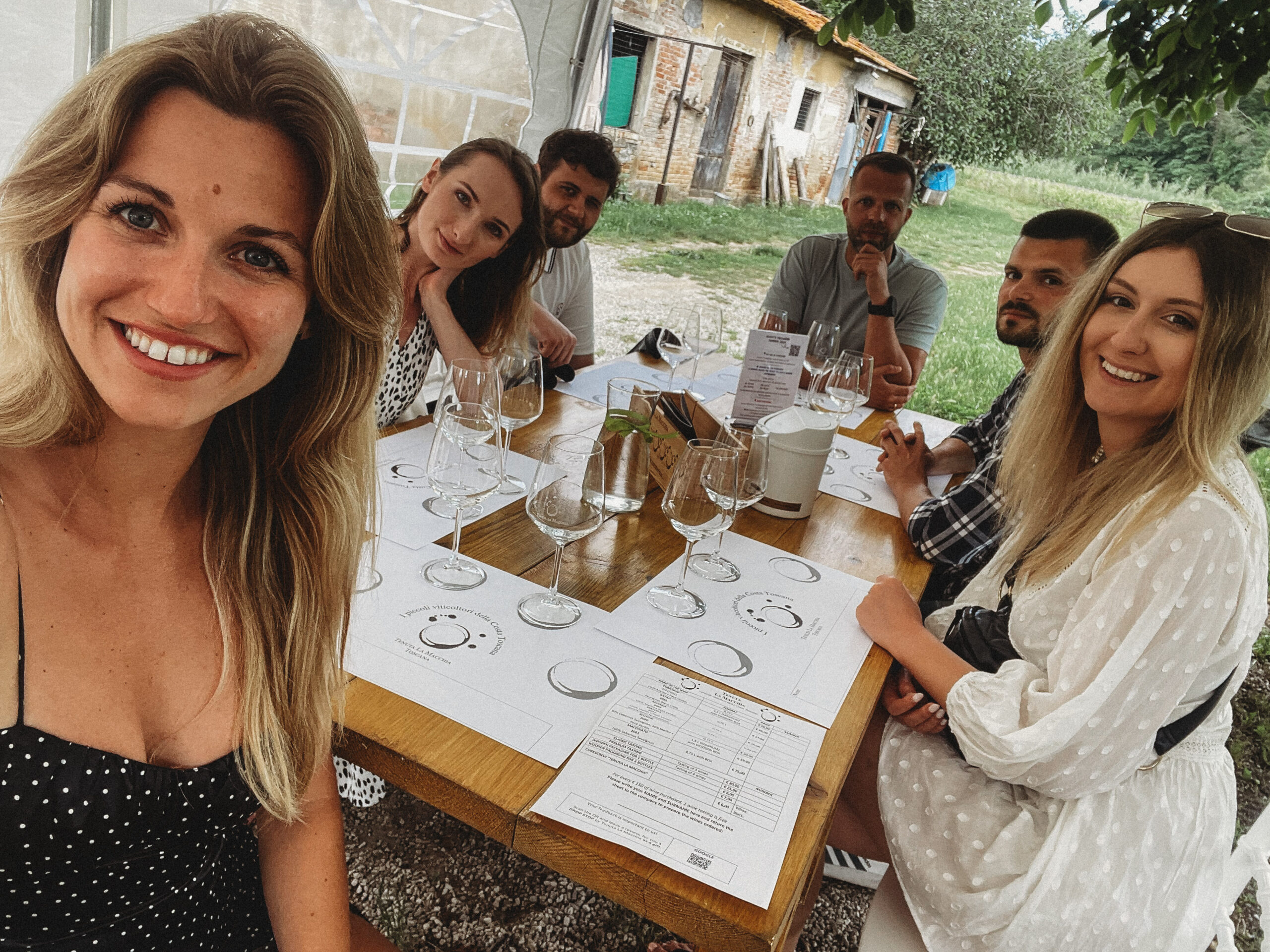 Czy polecam takie doświadczenie? Pewnie się zdziwicie, ale niekoniecznie… Warto zasięgnąć opinii, poczytać i dobrze zastanowić się nad wyborem winnicy. Opcji w Toskanii jest wiele, ale wydaje mi się, że znaczna część z nich nastawionych jest na masową turystykę, na szybki i łatwy zarobek kosztem jakości. W sumie trudno się temu dziwić, w obliczu tak dużego zainteresowania tego typu atrakcjami. Cały czas mam jednak w głowie Santorini i naszą wizytę w tamtejszej winiarni. Niepozorny Pan w dresie adidasa zrobił nam wtedy tour po piwnicy z alkoholami. Opowiedział masę ciekawych historii i solidnie uraczył różnymi trunkami. Nie silił się na bycie miłym, nie odliczał z zegarkiem w ręku kiedy sobie pójdziemy i nie odmierzał skrupulatnie każdego mililitra wlewanego do kieliszka, on po prostu czerpał masę satysfakcji z tego co robił, a wtedy nastrój tworzył się sam! Wierzę, że w Toskanii też można znaleźć takie magiczne miejsca. Trzeba ich tylko dobrze poszukać.