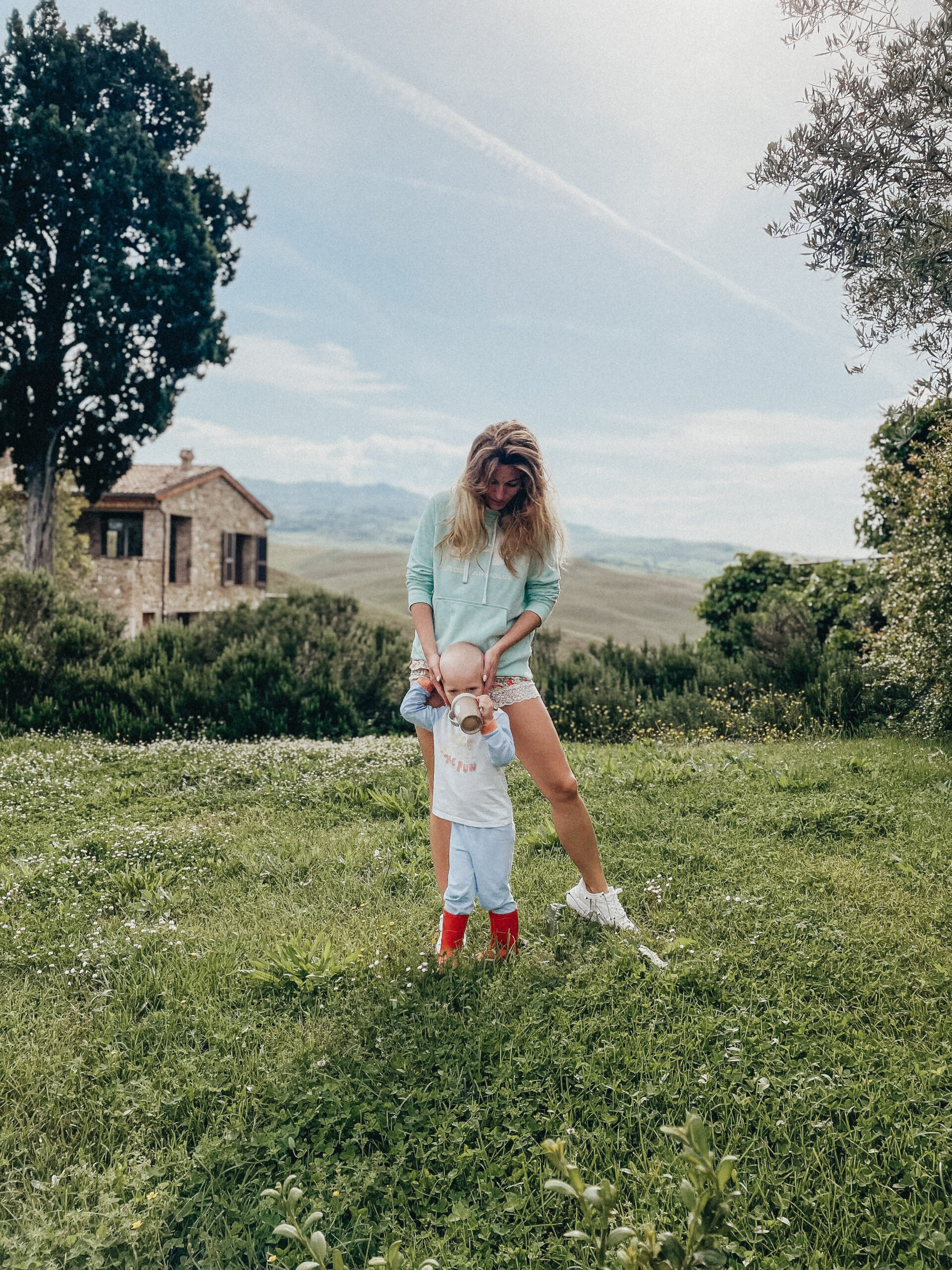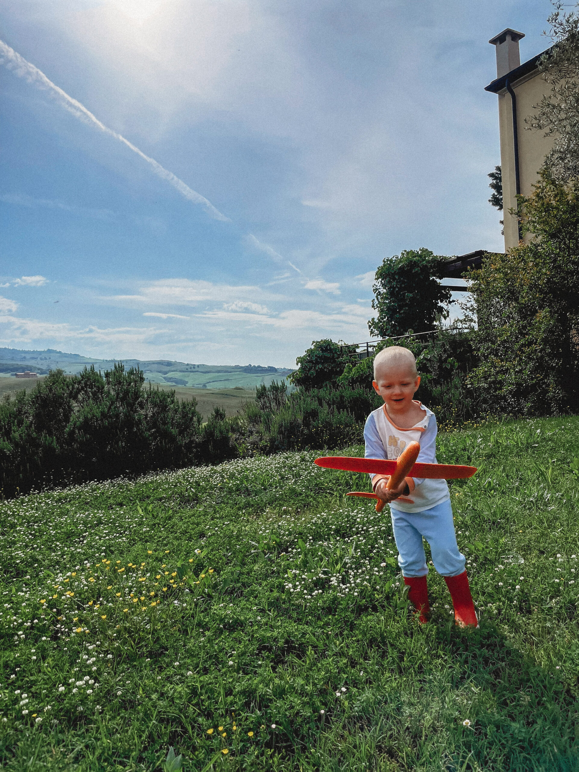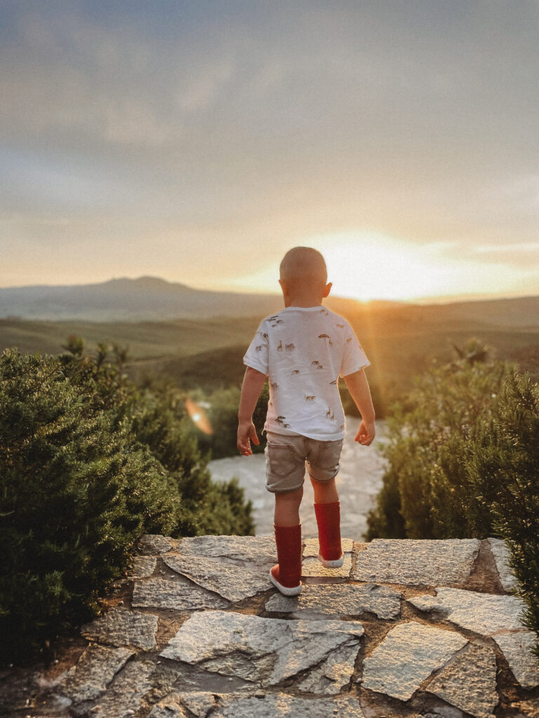 Czego najbardziej brakuje mi po powrocie do domu? Pistacjowych croissantów i bosych stópek Jasia biegających od rana do wieczora po trawie na tle romantycznie falujących pagórków. Czego jeszcze? Wina! Nawet to przywiezione prosto z Toskanii, w domu smakuje jakoś inaczej, mniej beztrosko.