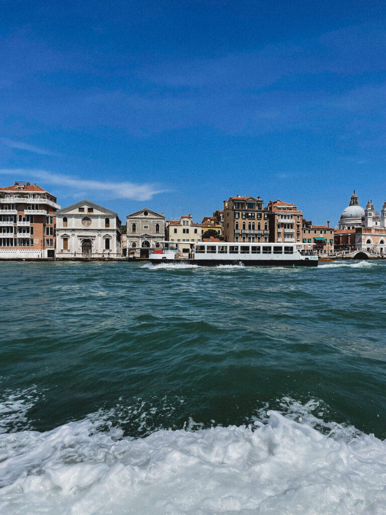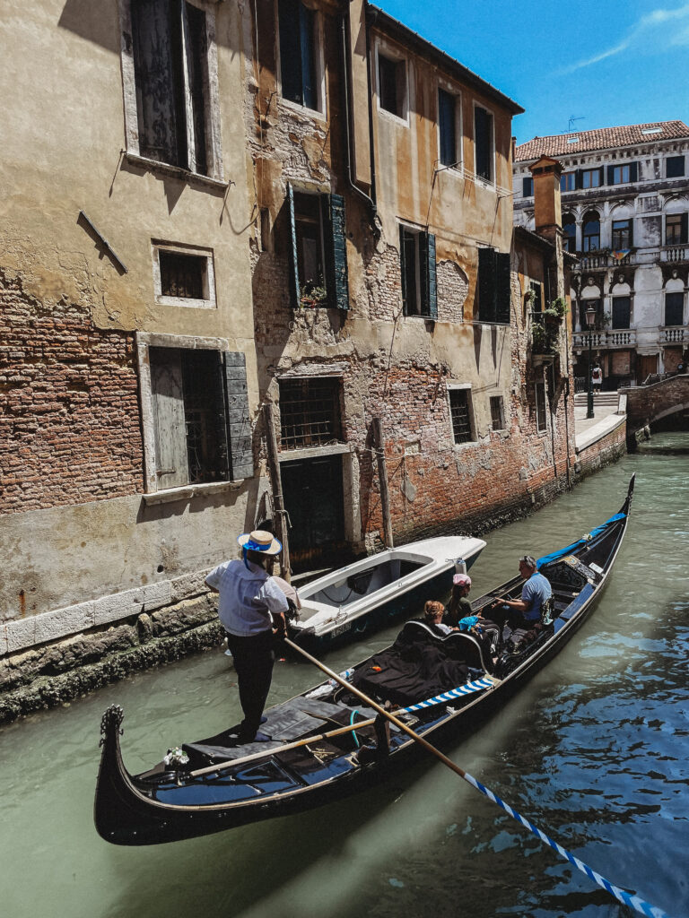 Następnego dnia o poranku siedzieliśmy już w naszym busie, kierując się w stronę miasta na wodzie. Wenecja to bez dwóch zdań wyjątkowe miejsce, jedyne w swoim rodzaju. Miasto zupełnie niepodobne do innych. Miasto kontrastów. Z jednej strony wąskie ulice, romantyczne mosty, niezliczona ilość kanałów, gondolierzy, gelato i słońce. Z drugiej strony komercja, stragany i drobne oszustwa. Na każdym kroku trzeba się pilnować, żeby taksówkarz nie oszukał Cię na wodnej przejażdżce, czy sprzedawca na targowisku nie próbował naciągnąć na 3 magnesy w cenie 2, finalnie licząc jednak za 3. Wenecja wie, że turyści bez względu na jej drobne niedoskonałości i tak się pojawią i dzięki tej pewności biznes turystyczny kwitnie. Niech nie zniechęcą Was jednak te drobne mankamenty, każde miasto przecież jakieś ma. Myślę, że po prostu warto chociaż raz w życiu, zobaczyć to na własne oczy. Ja swoją Wenecje zwiedzałam bez mapy i planu. Biegałam za Jaśkiem, który jest najlepszym kompasem. Za cel swojego joggingu obierał najbardziej obskurne uliczki, które nierzadko doprowadzały nas do bardzo klimatycznych i właściwie pozbawionych przechodniów miejsc, a wierzcie mi – o takie w Wenecji, nie jest łatwo.