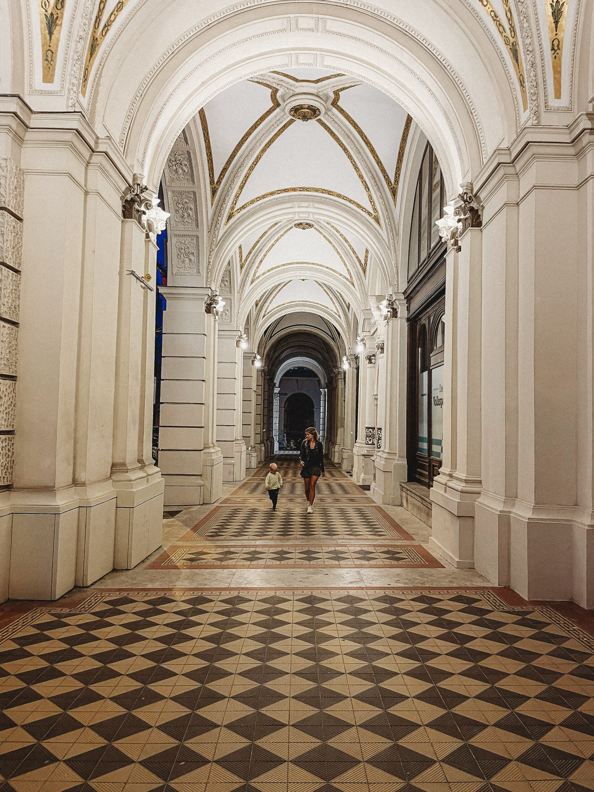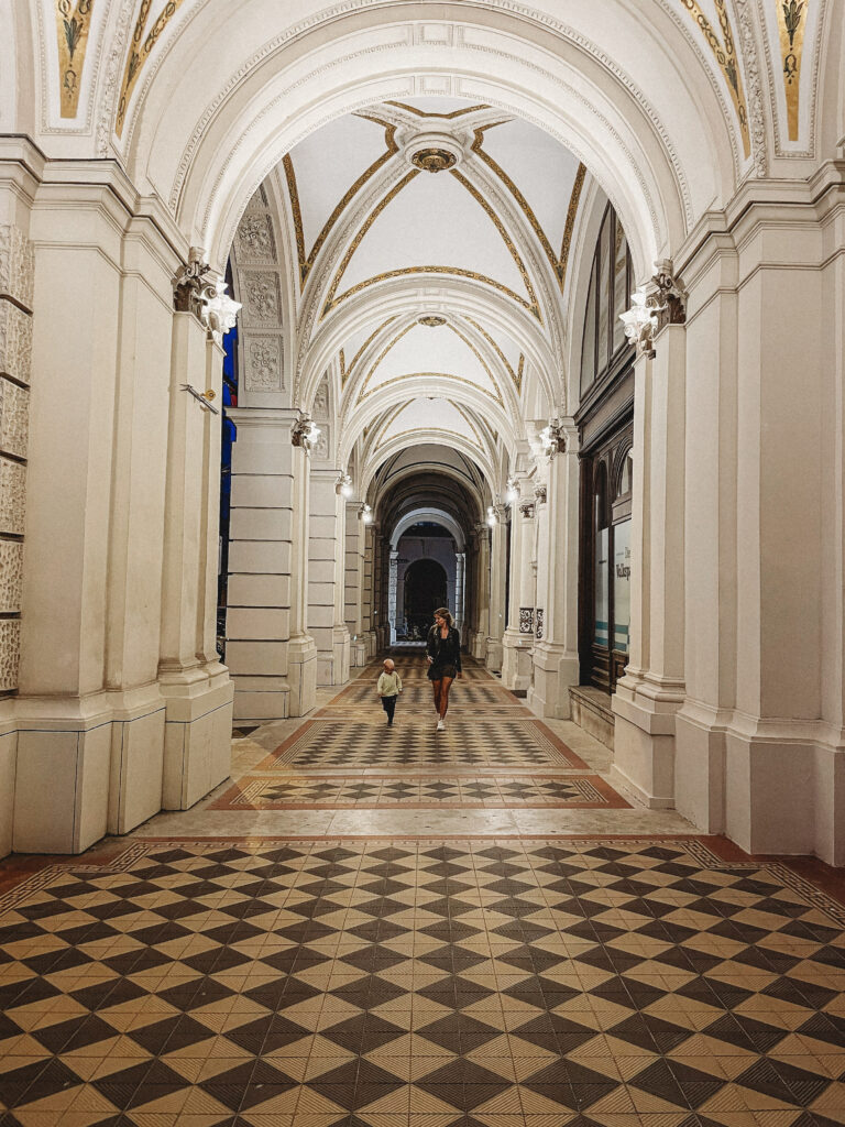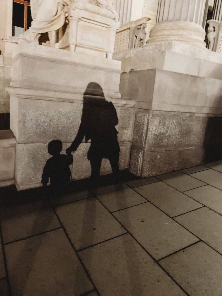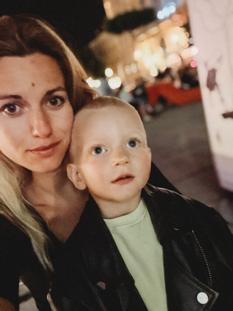 Wiedeń przywitał nas natomiast znacznie spokojniej i kulturalniej. Kiedy dojechaliśmy do naszego apartamentu, zbliżał się wieczór. Mimo zmęczenia trasą, nie daliśmy za wygraną i zdecydowaliśmy się na miejski tour pod rozgwieżdżonym niebem. Ostatni raz w Wiedniu byłam zimą, piłam grzane wino i spacerowałam od jarmarku do jarmarku. Latem, jak się pewnie domyślacie, miejski vibe był zupełnie inny, znacznie bardziej… imprezowy! Mimo późnej pory miasto żyło, żyło bardzo intensywnie. Ludzie siedzieli i rozmawiali na trawie i chodnikach, w barach, parkach i restauracjach. Pili drinki, jedli lody, śmiali się, a ja z dzielnym 2-latkiem u boku przemierzałam to pełne imponujących budynków i interesującej architektury, miasto. Fajnie tak się z Tobą włóczyć synku i na nowo odkrywać jak zachwycający może być księżyc i gwiazdy na niebie.