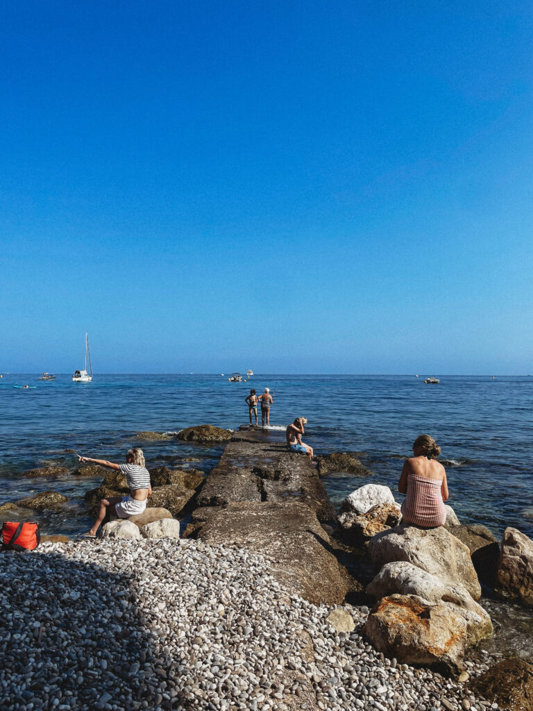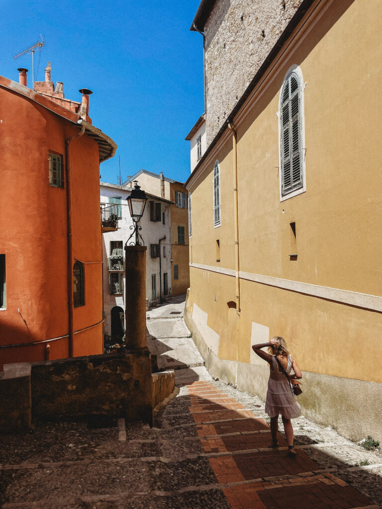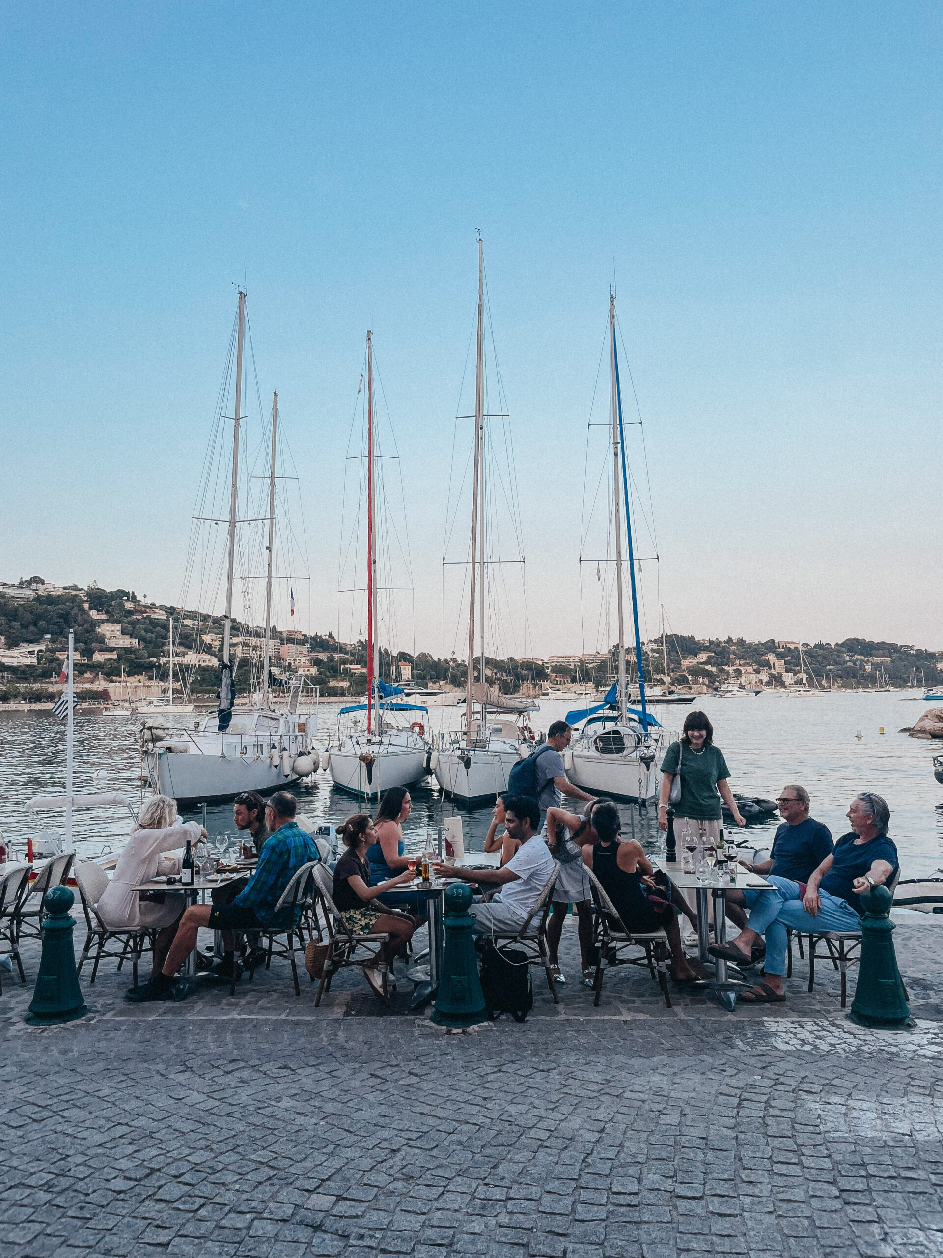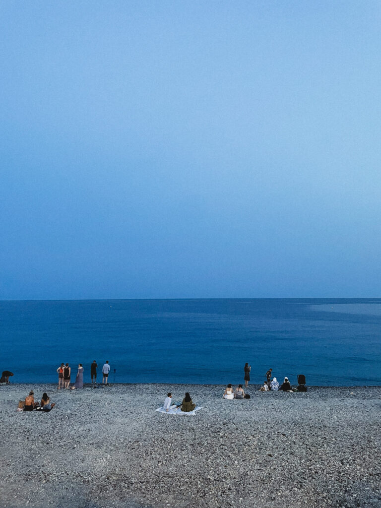 Kilka kilometrów dalej i kilka drinków później siedziałyśmy w pociągu, który do kolejnej stacji jechał maksymalnie 10 minut. Na tyle krótko, że prawie przegapiłyśmy nasz przystanek – Villefranche-sur-Mer. Miejscowość położona niezwykle blisko Nicei, a jednak zupełnie inna, bardziej cicha, kameralna i romantyczna. Pełna schodów i pięknych ludzi, kobiet w zwiewnych, kwiecistych sukienkach i panów w lnianych koszulach. Zachodzące słońce nie przeszkadzało nikomu w morskich kąpielach przy żwirkowej plaży, na tle pastelowych kamieniczek Villefranche. W takich okolicznościach żegnałyśmy nasz pierwszy lazurowy dzień.