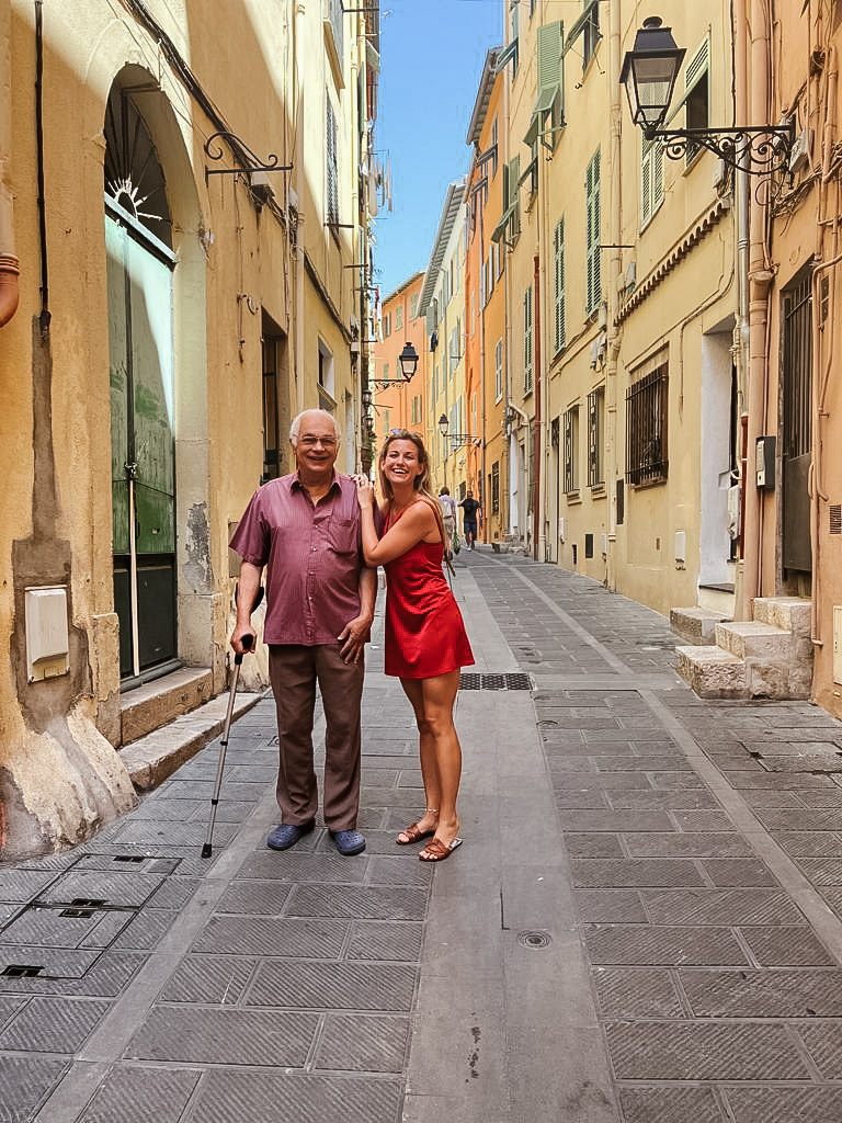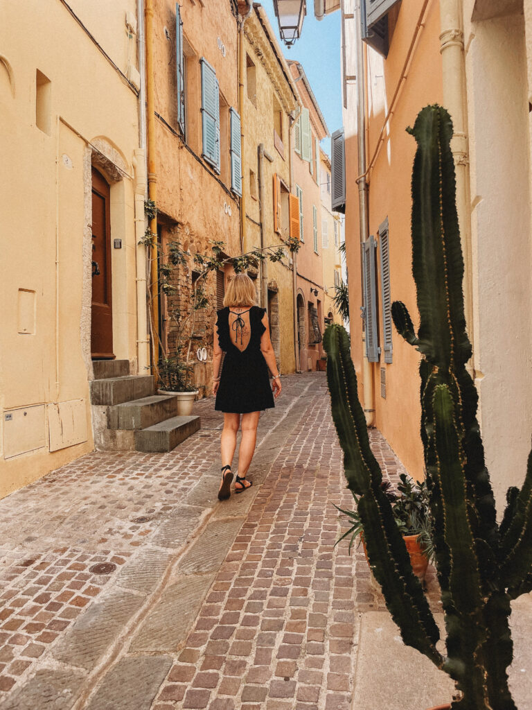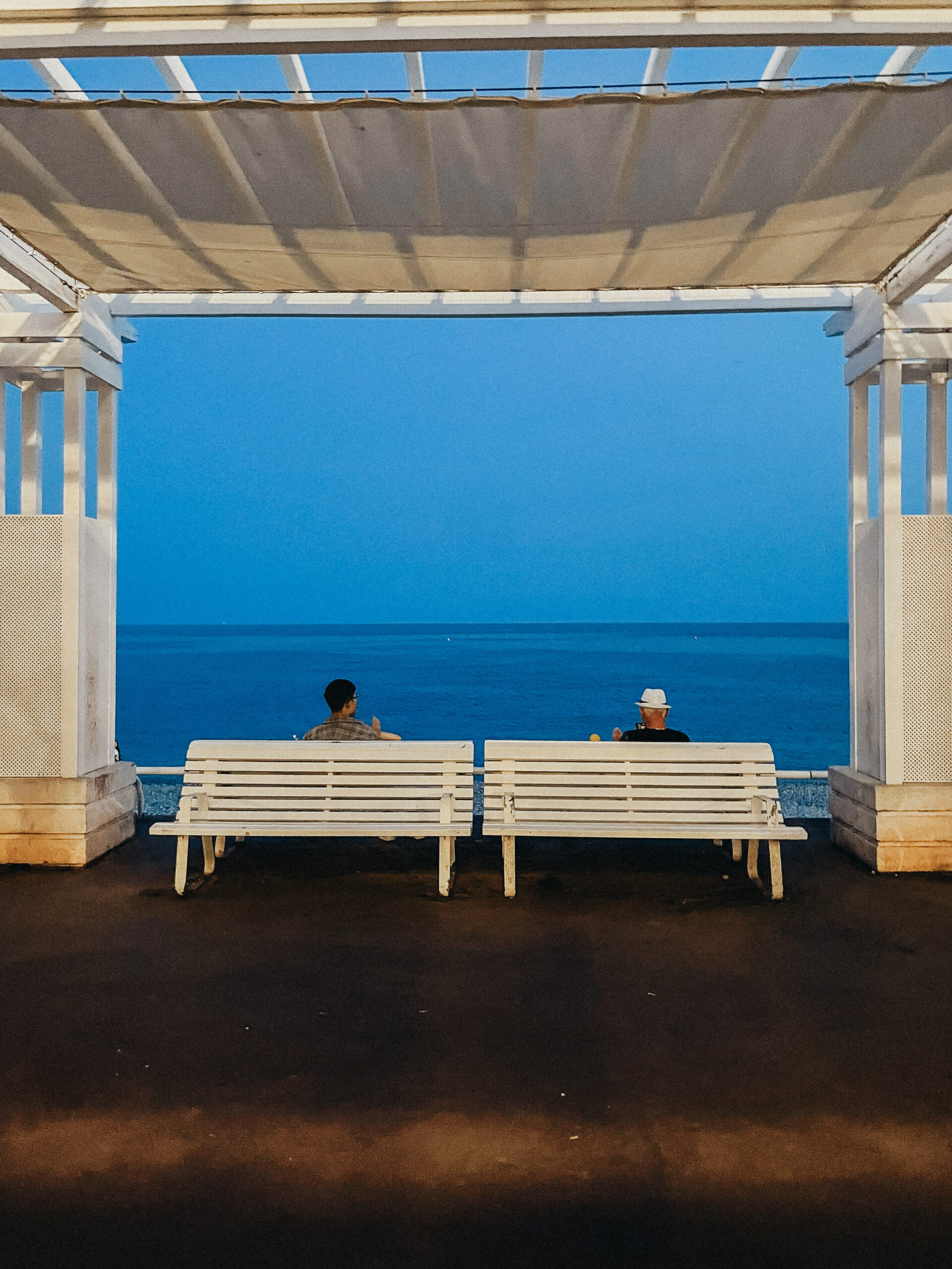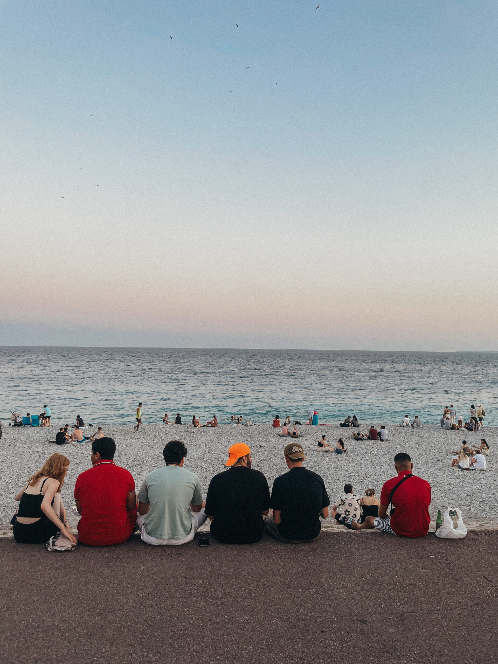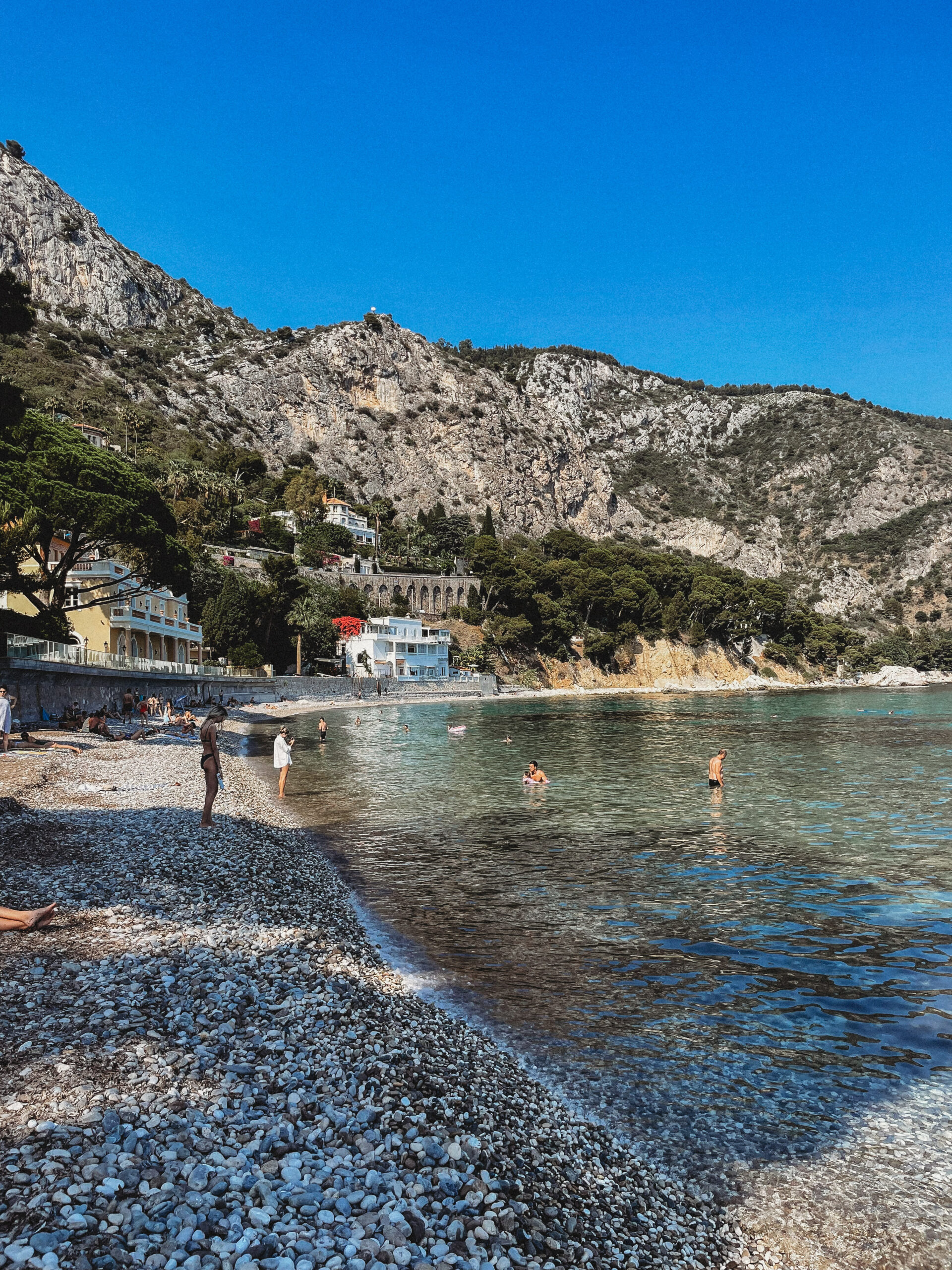 Kilka kilometrów dalej i kilka drinków później siedziałyśmy w pociągu, który do kolejnej stacji jechał maksymalnie 10 minut. Na tyle krótko, że prawie przegapiłyśmy nasz przystanek – Villefranche-sur-Mer. Miejscowość położona niezwykle blisko Nicei, a jednak zupełnie inna, bardziej cicha, kameralna i romantyczna. Pełna schodów i pięknych ludzi, kobiet w zwiewnych, kwiecistych sukienkach i panów w lnianych koszulach. Zachodzące słońce nie przeszkadzało nikomu w morskich kąpielach przy żwirkowej plaży, na tle pastelowych kamieniczek Villefranche. W takich okolicznościach żegnałyśmy nasz pierwszy lazurowy dzień.