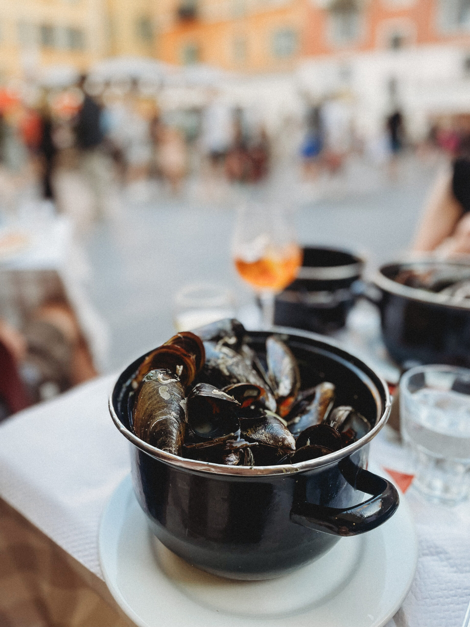 Z Cannes pojechałyśmy do Antibes. Idąc z dworca minęłyśmy młyńskie koło i kolejny luksusowy port, jeszcze bardziej ekskluzywny niż ten obok Alei Gwiazd. W porcie znajdowała się przystań o jakże skromnej nazwie „przystań miliarderów” i myślę, że ta nazwa wystarczy, aby wyobrazić sobie skalę przepychu jaki panuje w tym miejscu. Bruk tego dnia parzył, ale zimny spritzer skutecznie nas chłodził😊