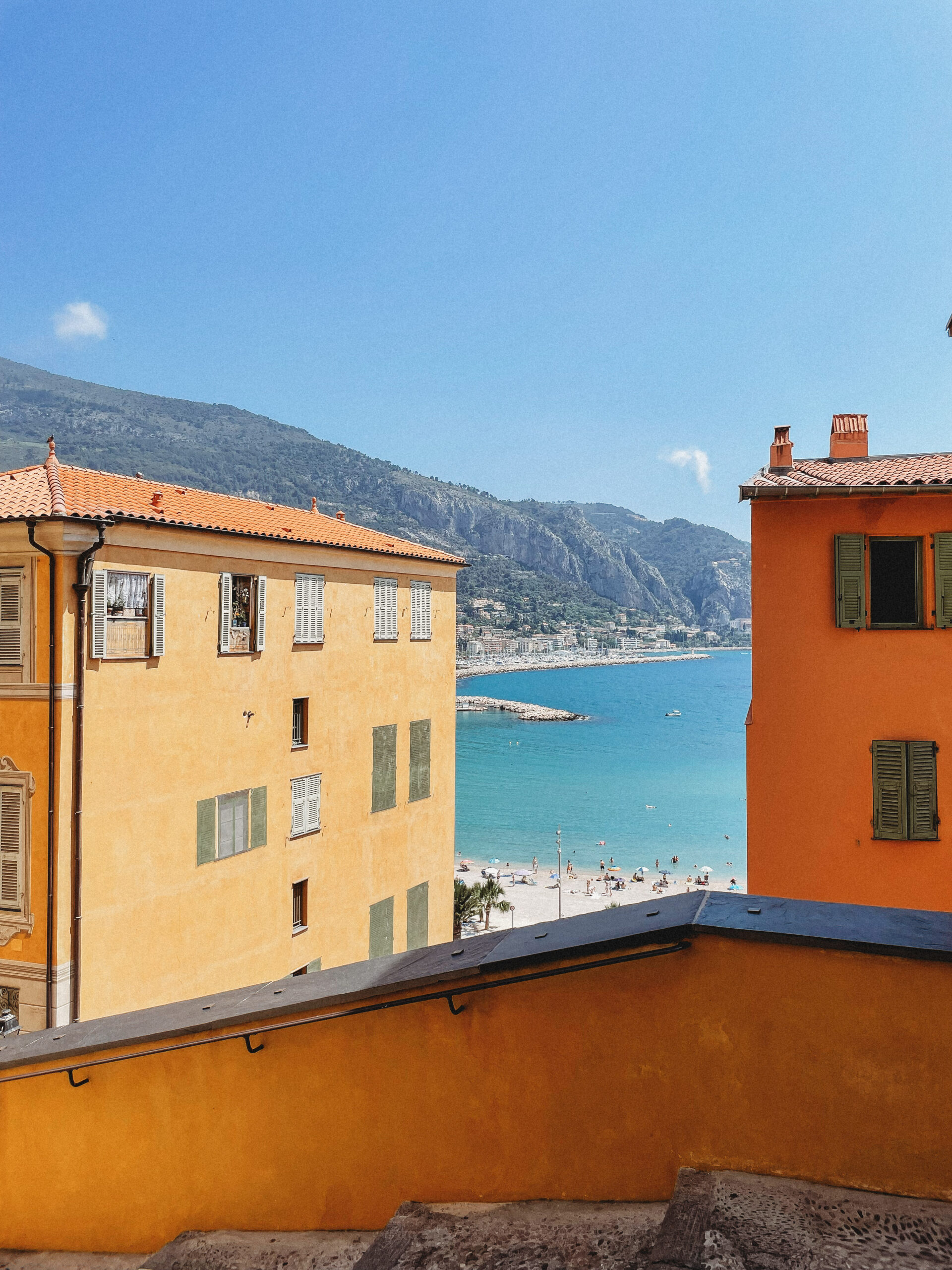 Nasz kolejny poranek zaczęłyśmy od wizyty w Mentonie. Kolejnego miasteczka pełnego pastelowych, wysokich budynków i wąskich ulic, które oferowały odrobinę chłodu w upalne dni. Tutaj po raz kolejny przekonałyśmy się, że nazwa wybrzeża jest zupełnie uzasadniona, bo woda faktycznie wszędzie ma ten sam, lazurowy, odcień.