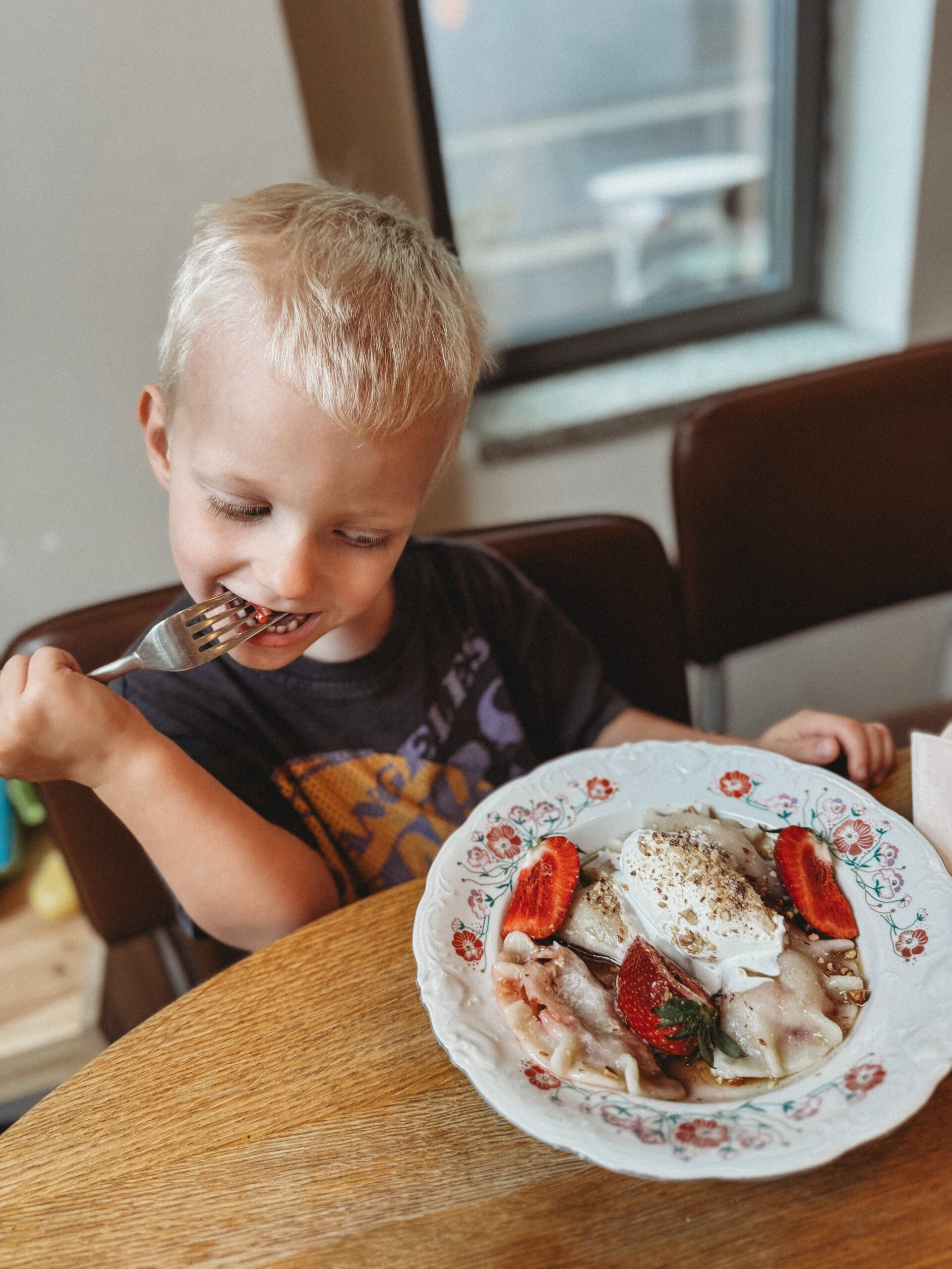dla kogo: Lokal o ciekawej formule, bo śniadania można tu zjeść do godziny… 15:00! Po 17:00 otwiera się natomiast karta kolacyjna. Myślę, że to świetne miejsce na spotkanie z przyjaciółmi i na randkę:) Nie znajdziesz tam wielu atrakcji dla dziecka, ale nasz syn był przeszczęśliwy, kiedy kelner podarował mu naklejkę z logo restauracji. To co polecam Wam szczególnie to… chleb z masłem. Myślicie, że to banał? Gwarantuje, że zmienicie zdanie, kiedy skosztujecie tego wypieku.