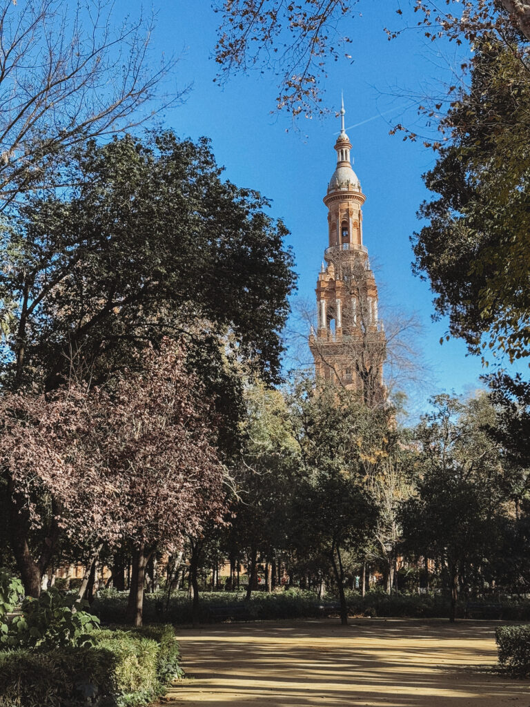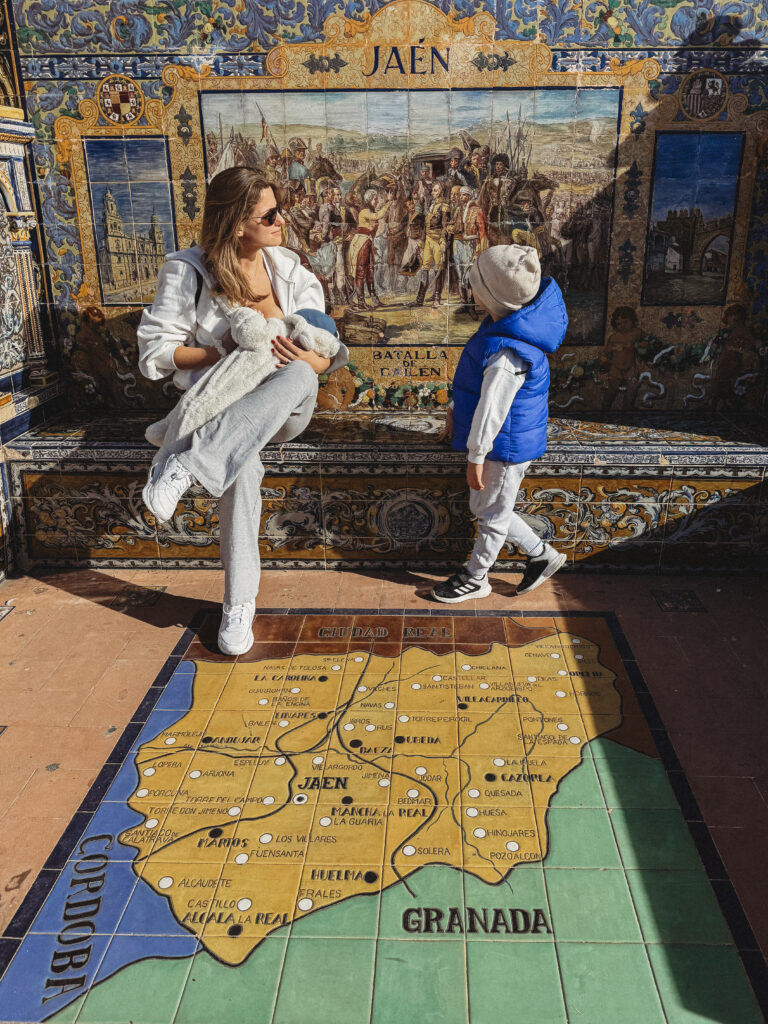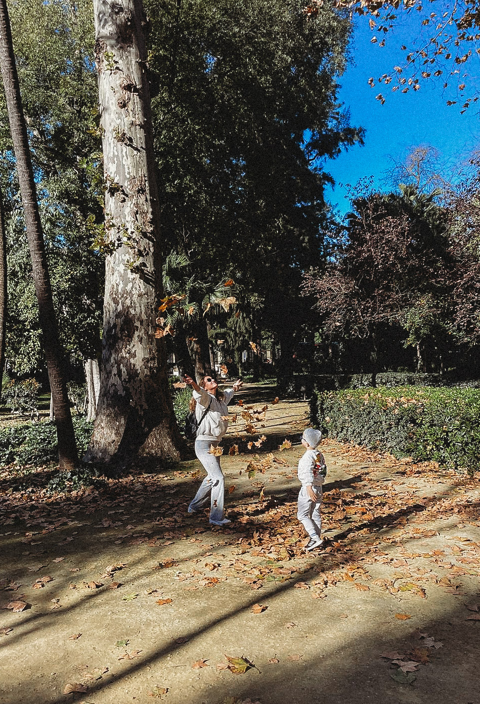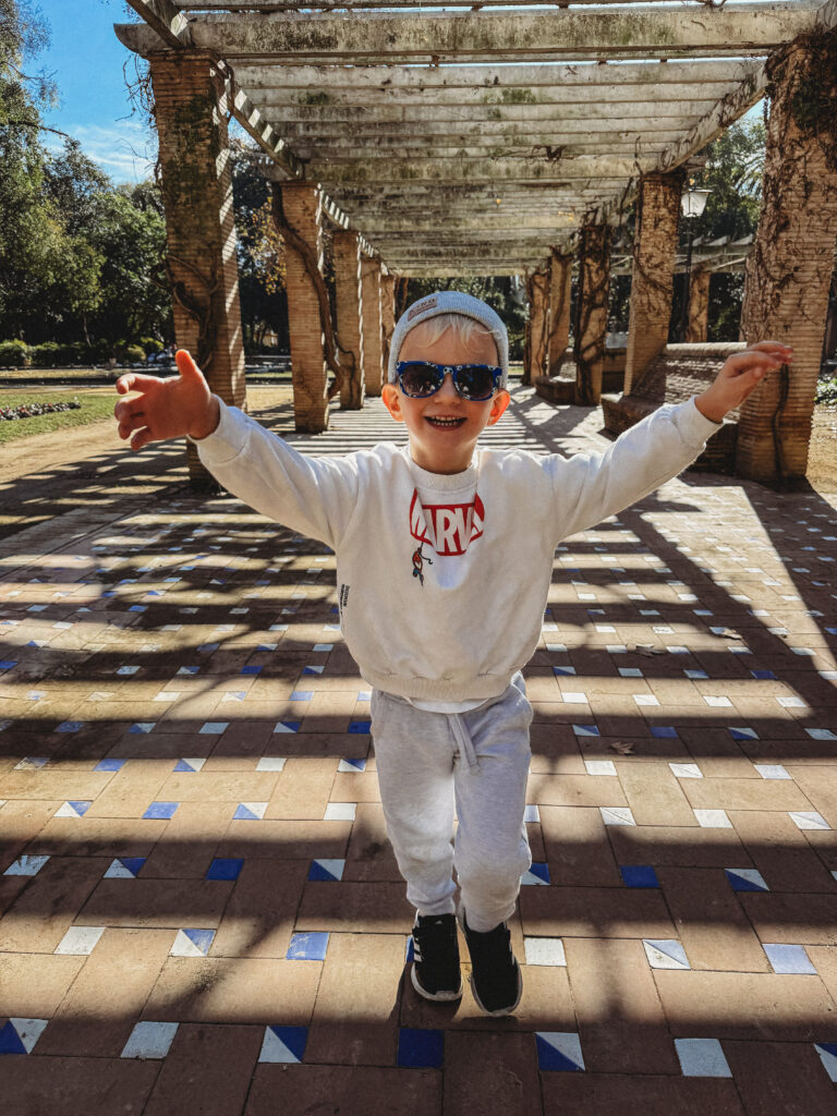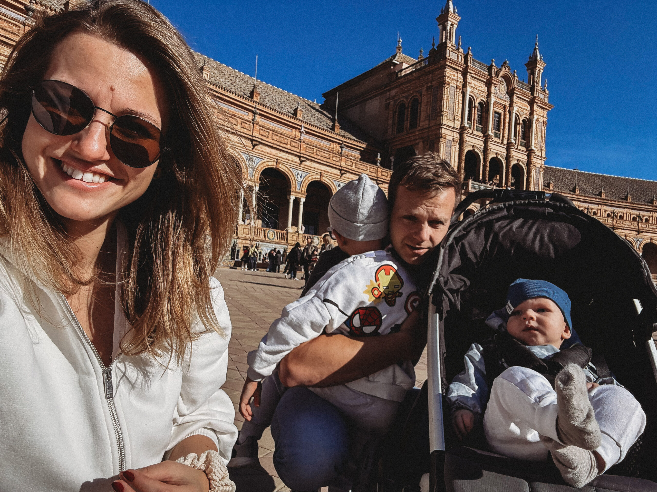 Kierowaliśmy się w stronę atrakcji Sevilli. Bez przewodnika w ręku szliśmy przed siebie próbując wyciągnąć z wyjazdu jak najwięcej się da. Dla nas najwięcej jak się da to skromne wypicie ciepłej kawy w słońcu, a dla Janka to wizyty na każdym napotkanym placu zabaw. Nauczyliśmy się już godzić te dwa światy różnorodnych potrzeb, a kiedy do tego wszystkiego dochodziła drzemka Stefka, było idealnie jak na podróżniczo, mocno obniżone standardy 4-osobowej rodziny.