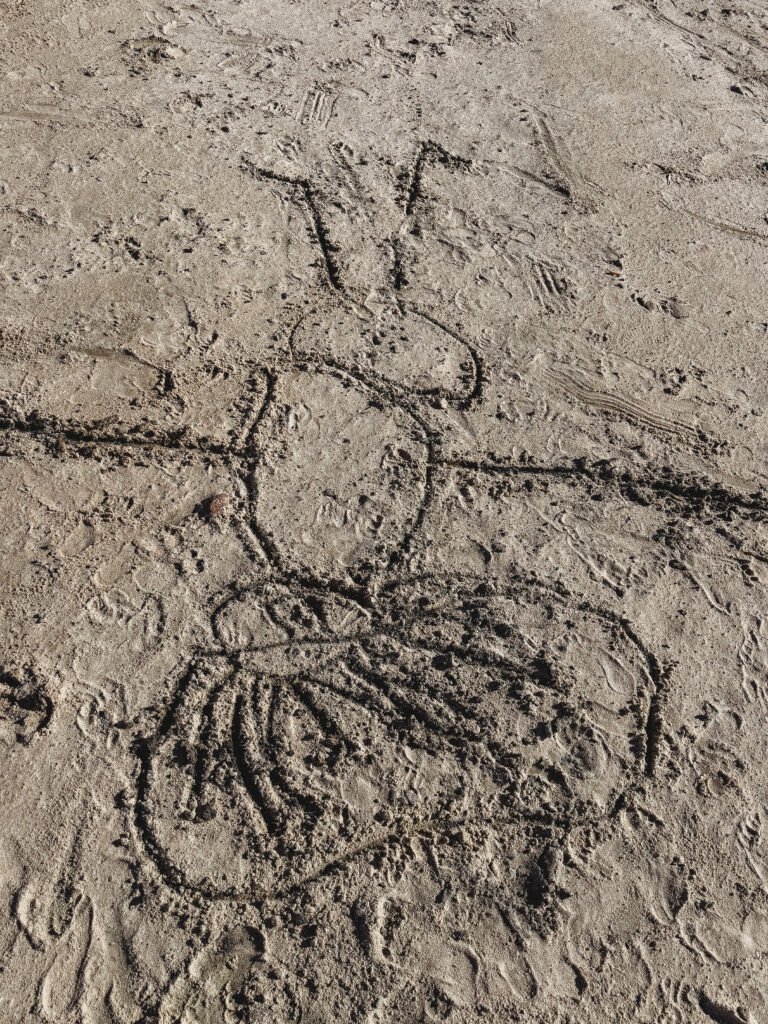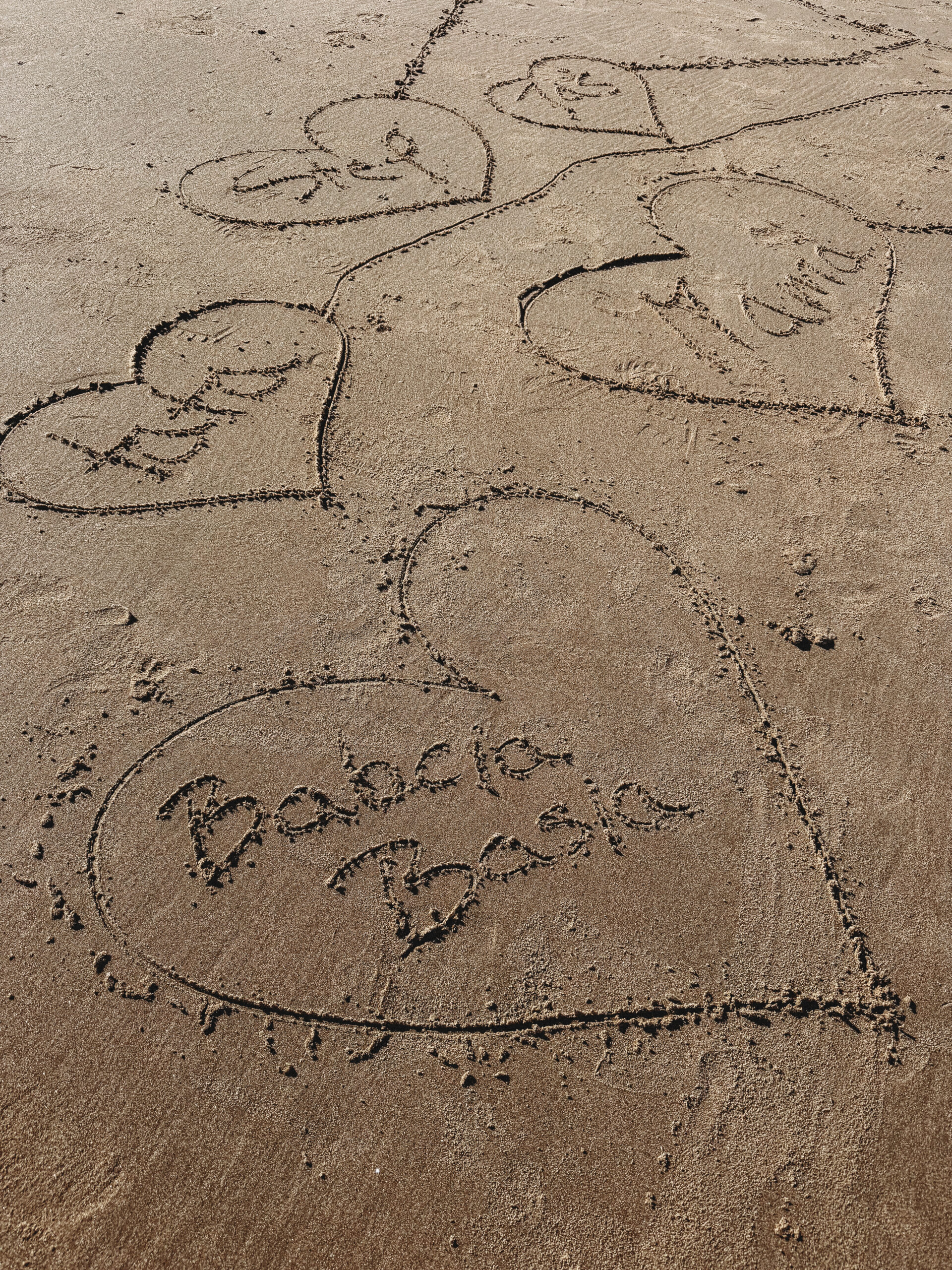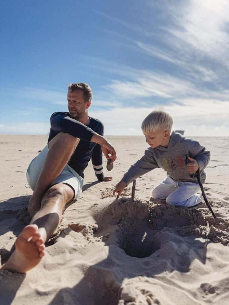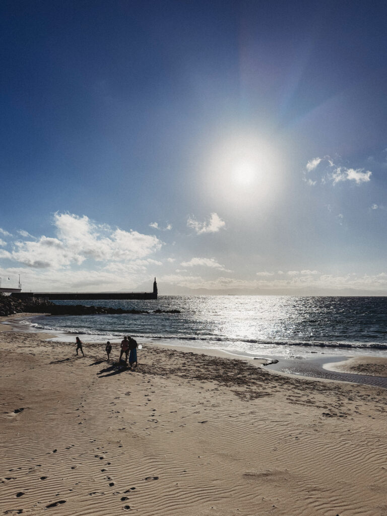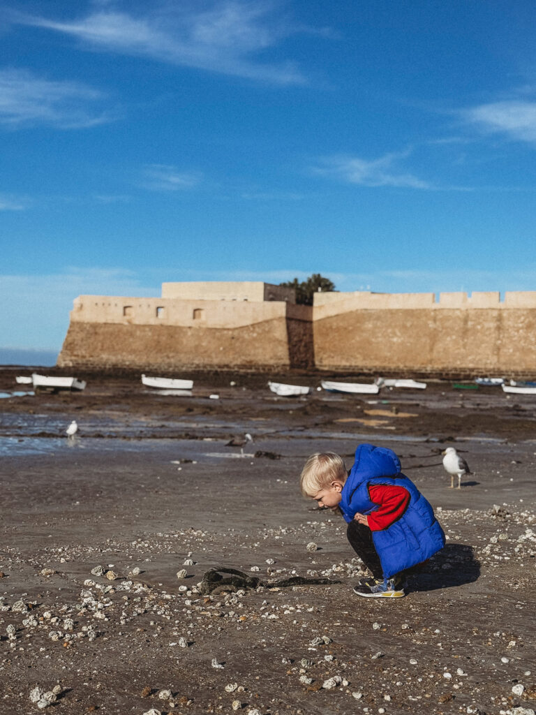 Wracając zatrzymaliśmy się na plaży Cortadura, w Moana Beach Bar. Korzystając z drzemki Stefana mogliśmy całą swoją uwagę poświęcić starszakowi, a to nie zdarza się zbyt często. Jasiek tworzył z tatą wybitne budowle z kamieni, a ze mną zbierał muszle i rysował bałwany na piasku. Biegaliśmy po wydmach udając, że jesteśmy w kosmosie i musimy walczyć z podstępnym łotrem, któremu Janek nadał, oryginalne imię Mendiklifer – idealne dla złoczyńcy, sami przyznajcie.