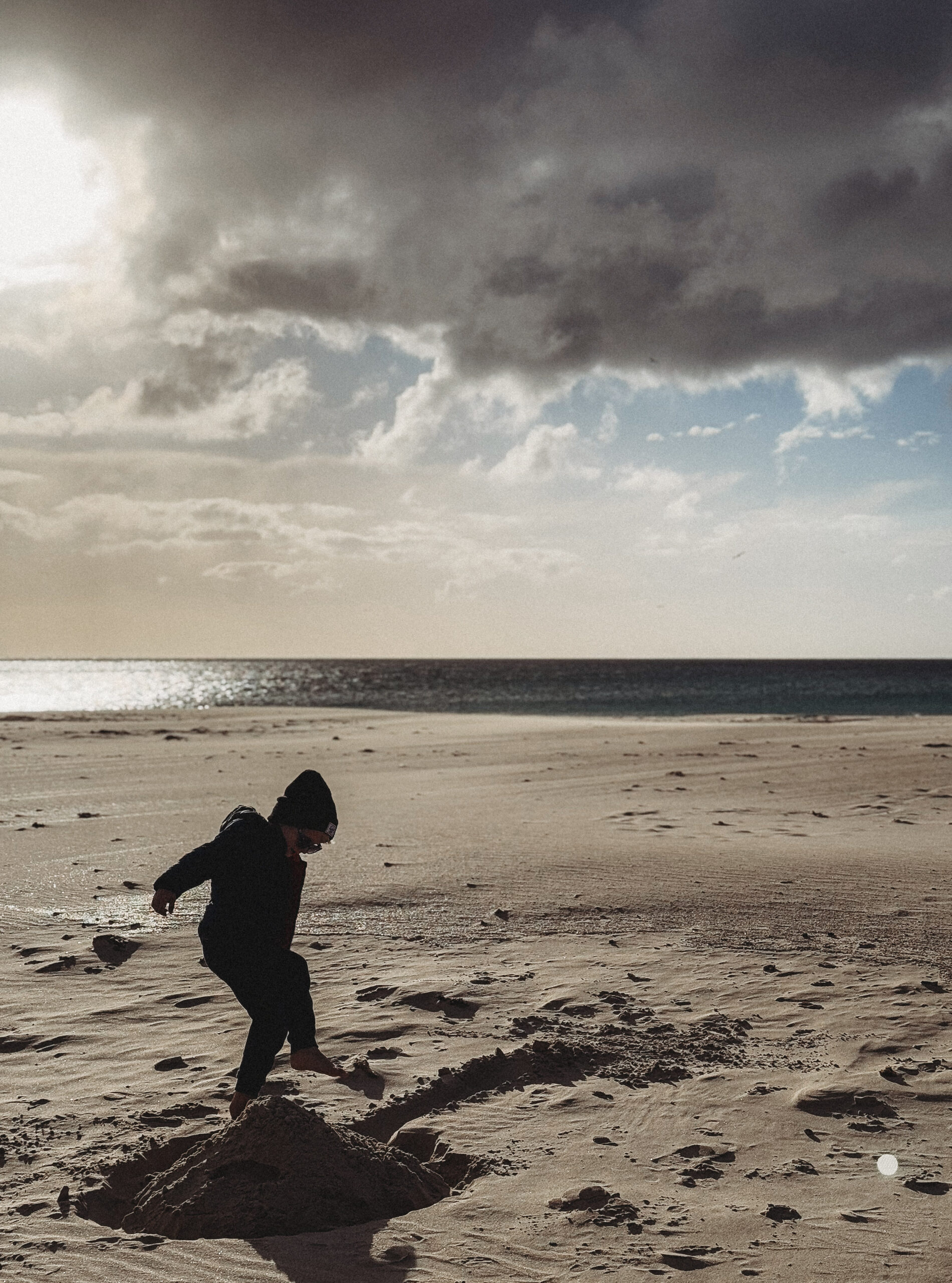 Po wizycie w Kadyksie nastała era Tarify, do której jechaliśmy pewni, że będą to raczej kiepskie cztery dni. Kiepskie ze względu na prognozy pogody, które uparcie informowały nas o porywistym wietrze. Próbowałam nawet odwołać naszą rezerwację i poszukać czegoś innego, ale na szczęście się nie udało! Na szczęście, bo Tarifa to obłędne miejsce. Obłędne ze względu na swoje plaże, klimat i ludzi… Okazało się, że grudniowy wiatr, nie stanowił dla Jaśka przeszkody do morskich kąpieli. Luz i spontan- obyś nosił to w sobie jak najdłużej synku <3