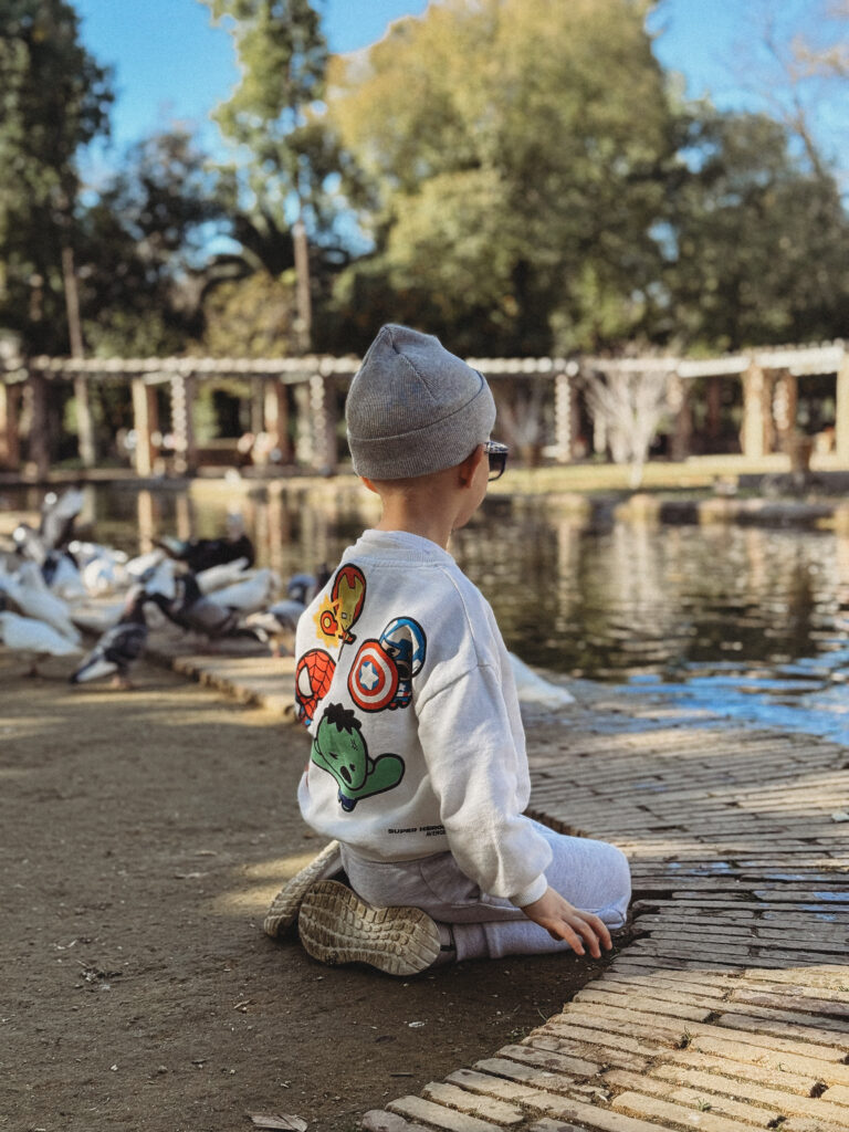 Spacerowaliśmy z bombelkami po dzielnicy Alfalfa i Santa Cruz. Odwiedziliśmy wiele placów zabaw i Park Marii Luizy, gdzie szczęśliwy Jan próbował dokarmiać kaczki żelkami. Uspokajam wszystkich obrońców zwierząt, udaremniliśmy to przedsięwzięcie:).